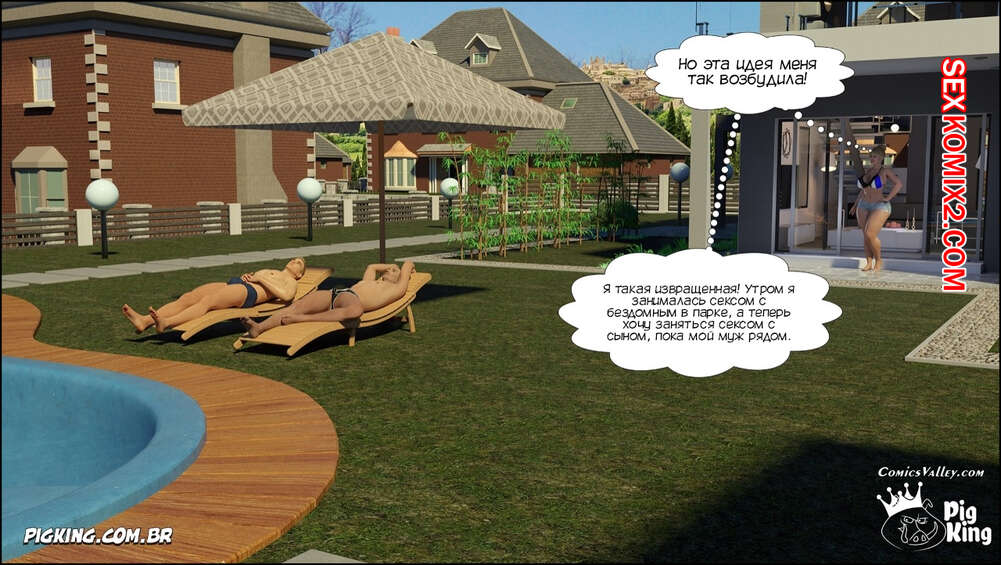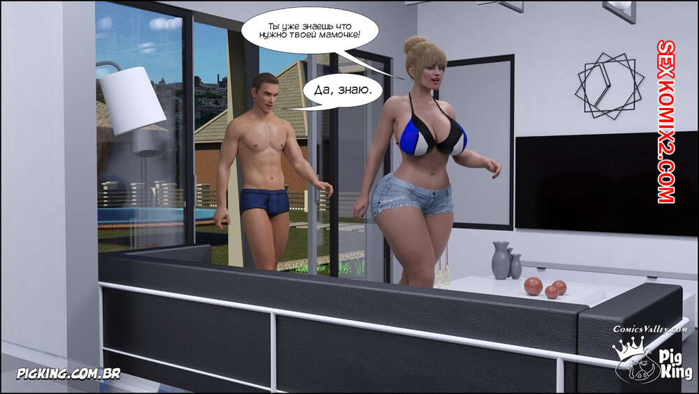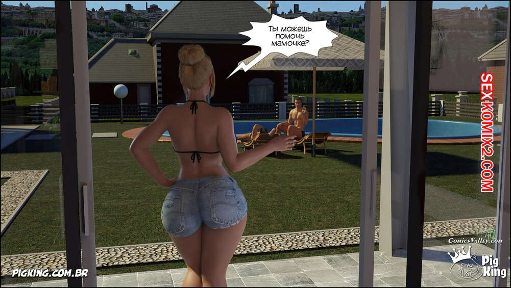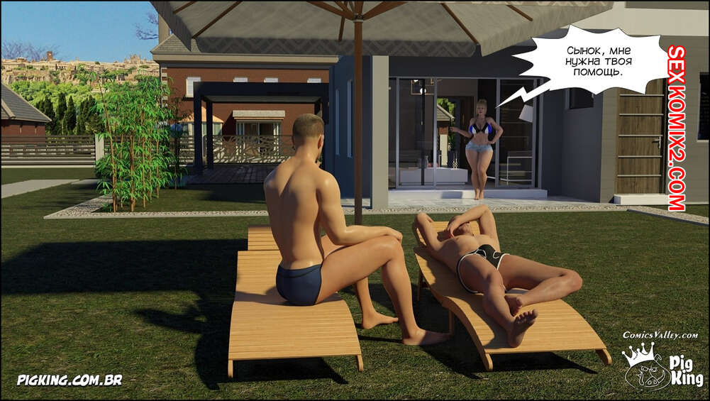 Порно комикс Семейка грехов. Часть 59. Family Sins. CrazyDad3D После секса с бездомным в парке Жанин вернулась домой. Она решила повеселиться со своим сыном, поэтому пригласила парня к себе на кухню потрахаться, пока ее муж отдыхал у бассейна.