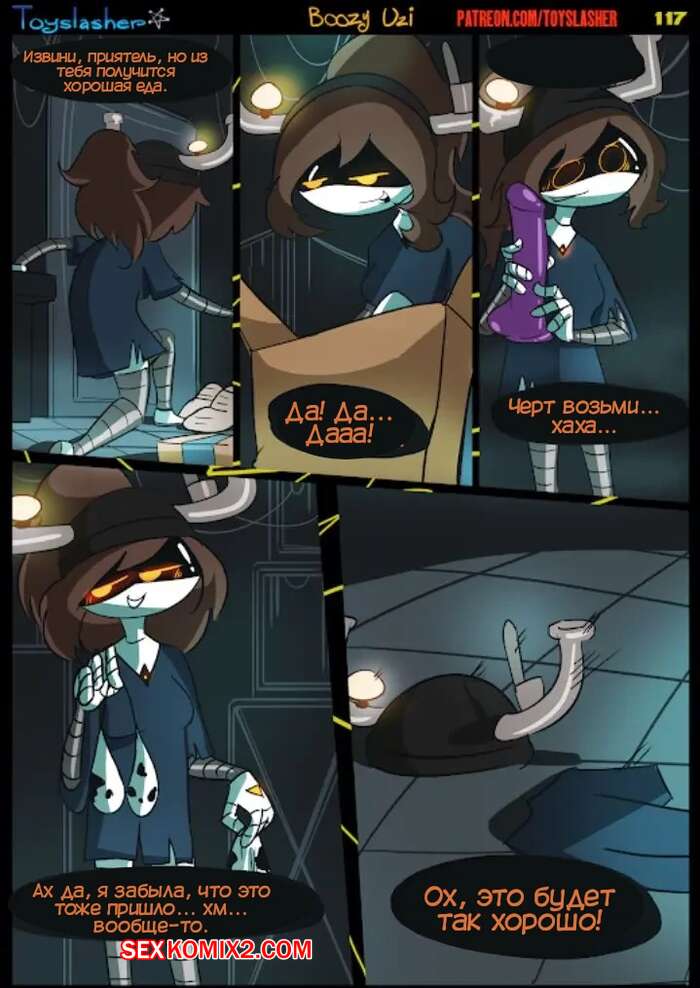 Порно комикс Бузи Узи. Boozy Uzi. Toyslasher Молодая брюнетка осталась наедине со своим другом роботом, пока его девушка отправилась на поиски следов. Они стали дурачиться и парня встал хуй, что очень возбудило девушку. Она разделась и отсосала хуй друга, после чего дала ему себя выебать.
