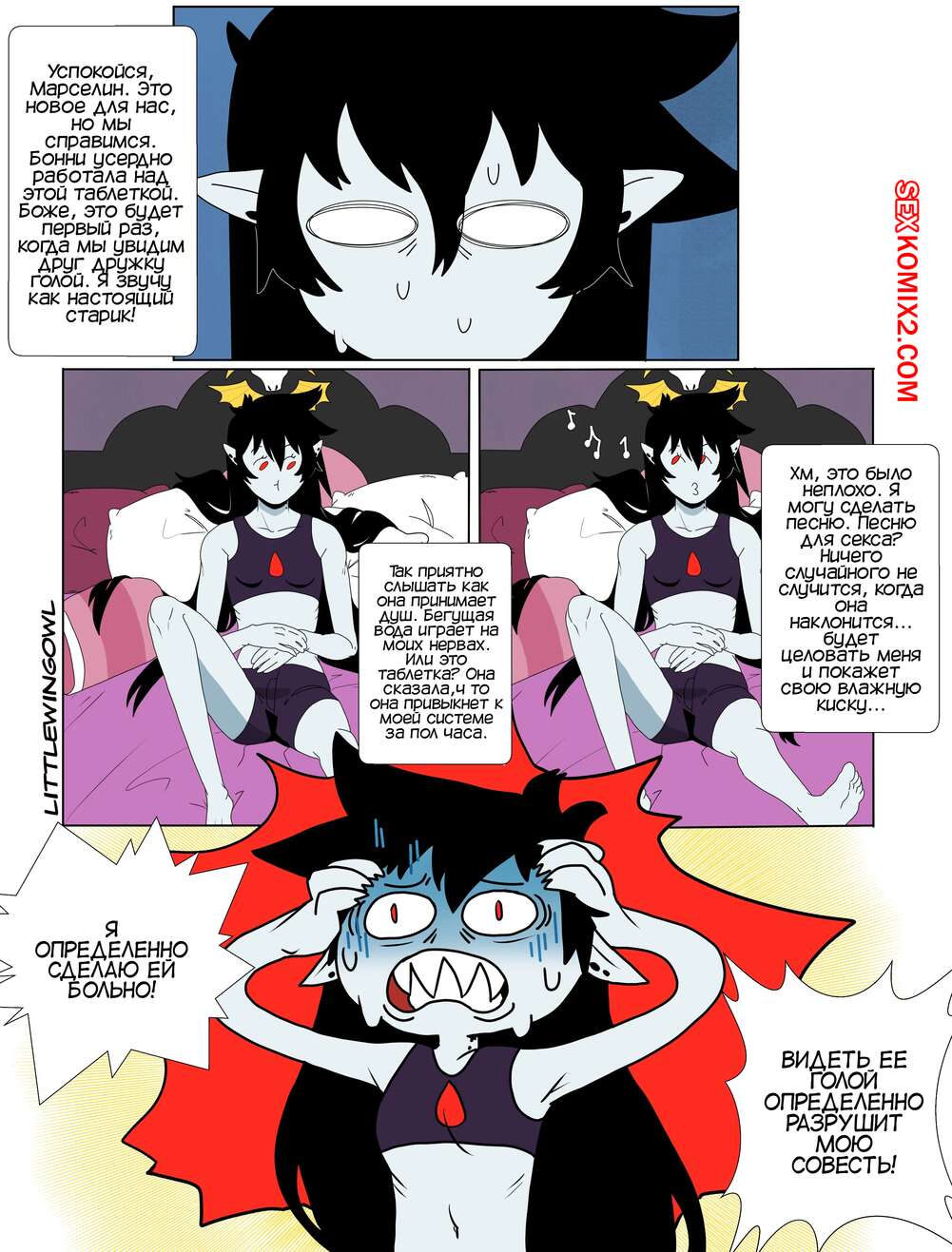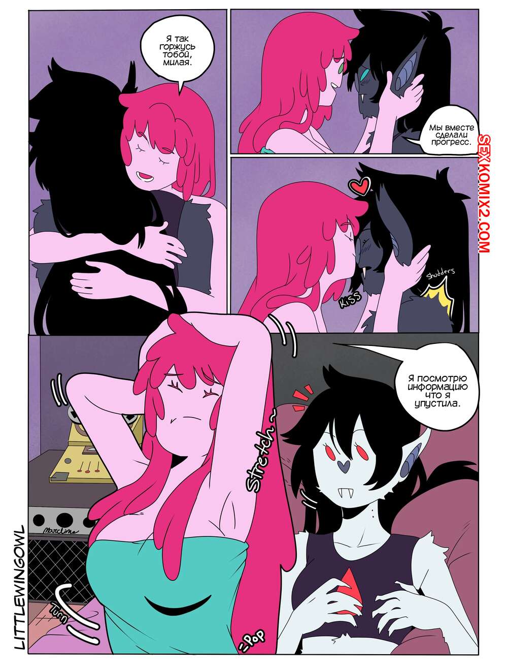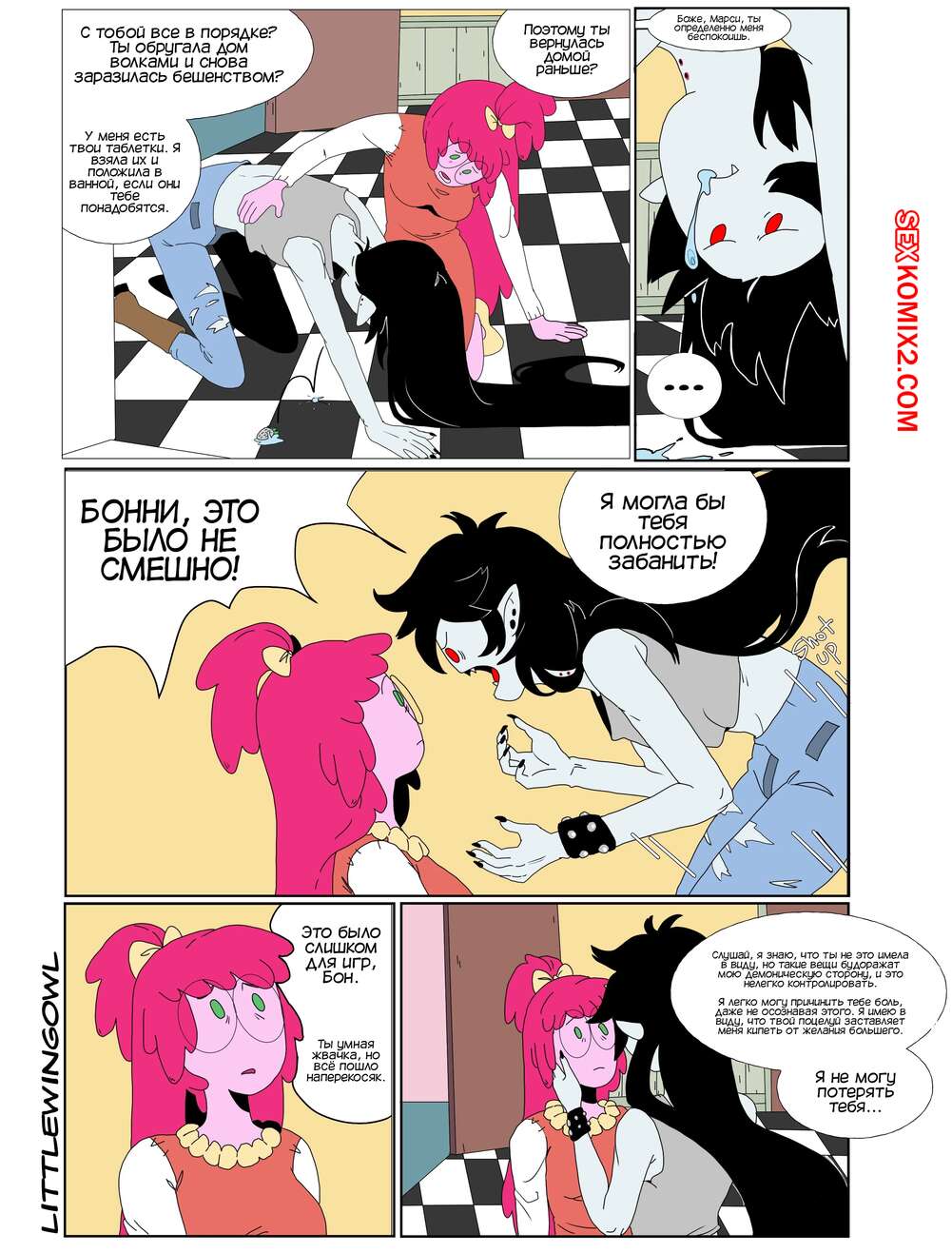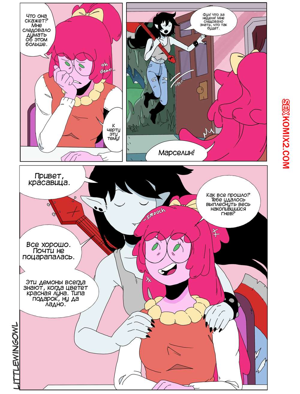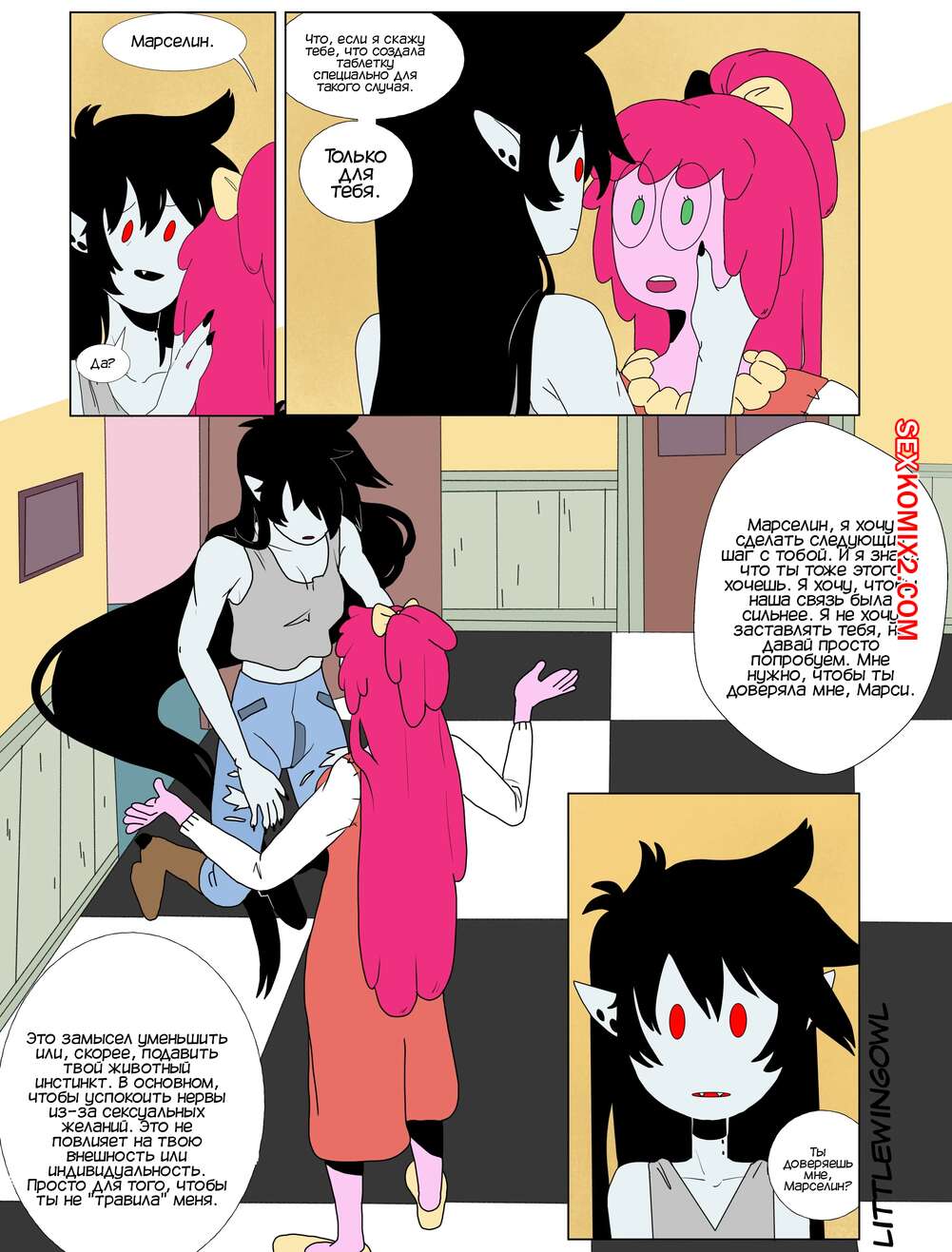 ΠΠΎΡΠ½ΠΎ ΠΊΠΎΠΌΠΈΠΊΡ Adventure Time. ΠΡΠ·ΡΡΡ. Π§Π°ΡΡΡ 1. Bubbline comic. LittleWingOwl. ΠΠ°ΡΡΠ΅Π»ΠΈΠ½ Π²Π΅ΡΠ½ΡΠ»Π°ΡΡ Π΄ΠΎΠΌΠΎΠΉ ΠΏΠΎΡΠ»Π΅ ΠΏΠΎΡΠ»Π΅ ΡΡΠΆΠ΅Π»ΠΎΠΉ Π½Π΅Π΄Π΅Π»ΠΈ ΠΈ ΠΠΎΠ½Π½ΠΈ ΡΠΎΠΎΠ±ΡΠΈΠ»Π° ΠΏΠΎΠ΄ΡΡΠ³Π΅, ΡΡΠΎ Ρ ΠΎΡΠ΅Ρ Π·Π°Π½ΡΡΡΡΡ Ρ Π½Π΅ΠΉ ΡΠ΅ΠΊΡΠΎΠΌ. ΠΠ°ΡΡΠΈ Π΄ΠΎΠ»Π³ΠΎ ΠΎΡΠΊΠ°Π·ΡΠ²Π°Π»Π°ΡΡ, Π±ΠΎΡΡΡ ΠΏΡΠΈΡΠΈΠ½ΠΈΡΡ ΠΏΠΎΠ΄ΡΡΠ³Π΅ Π±ΠΎΠ»Ρ, Π½ΠΎ Π²ΡΠ΅ ΡΠ°ΠΊΠΈ ΠΎΠ½ΠΈ ΡΠ°Π·Π΄Π΅Π»ΠΈΡΡ ΠΈ ΠΏΡΠΈΡΡΡΠΏΠΈΠ»ΠΈ ΠΊ Π»Π΅ΡΠ±ΠΈΠΉΡΠΊΠΈΠΌ ΠΈΠ³ΡΠ°ΠΌ.