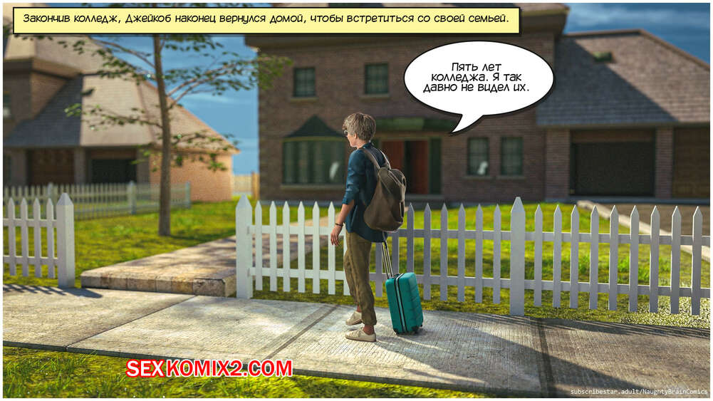 Порно комикс Возвращение домой. Часть 1. The Homecumming. NaughtyBrainComics. Джейкоб вернулся домой спустя пять лет учебы в колледже. Его мама и сестренка были очень рады видеть парня. Джейкоб оказался без ума от своей мамы, которая выглядит как самая настоящая милфа, и теперь он постоянно чувствует возбуждение рядом с ней.