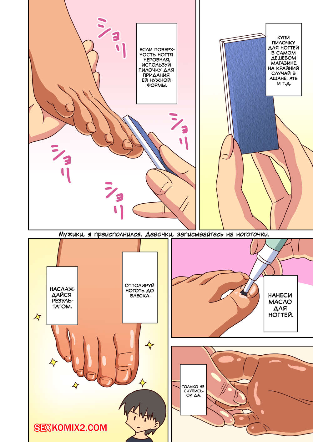 ΠΠΎΡΠ½ΠΎ ΠΊΠΎΠΌΠΈΠΊΡ ΠΡΡΠΎΡΠΈΡ ΡΡΡΡΠ΅ΡΠΈΡΠΈΡΡΠ°. Π§Π°ΡΡΡ 27. Nush ΠΠΎΡΡΡΠ°Ρ Π±ΡΡΠ½Π΅ΡΠΊΠ° ΠΏΡΠΈΠ³Π»Π°ΡΠΈΠ»Π° ΠΏΠ°ΡΠ½Ρ ΠΊ ΡΠ΅Π±Π΅ Π² ΠΊΠΎΠΌΠ½Π°ΡΡ, ΡΡΠΎΠ±Ρ ΠΏΠΎΠ²Π΅ΡΠ΅Π»ΠΈΡΡΡΡ. ΠΠ½Π° Π΄Π°Π»Π° Π΅ΠΌΡ ΡΠ²ΠΎΠΈ Π½ΠΎΠΆΠΊΠΈ, ΡΡΠΎΠ±Ρ ΠΎΠ½ ΡΠ΄Π΅Π»Π°Π» Π΅ΠΉ ΠΏΠ΅Π΄ΠΈΠΊΡΡ, ΠΏΠΎΡΠ»Π΅ ΡΠ΅Π³ΠΎ ΠΊ Π½ΠΈΠΌ ΠΏΡΠΈΡΠΎΠ΅Π΄ΠΈΠ½ΠΈΠ»ΡΡ ΠΈΡ ΠΏΠΎΠ΄ΡΡΠ³ΠΈ.