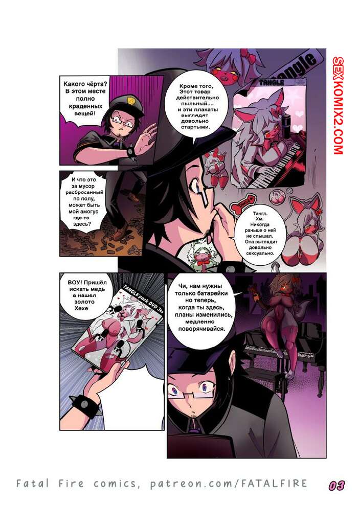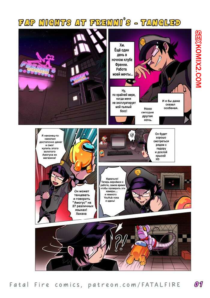 Порно комикс Five Nights at Freddys. Fap Nights at Frennis. Fatal Fire Studios Парень охранник встретил ночью в клубе сексуальную блондинку фурри. Она достала хуй парня и стала у него отсасывать, после чего дала ему себя хорошенько выебать.