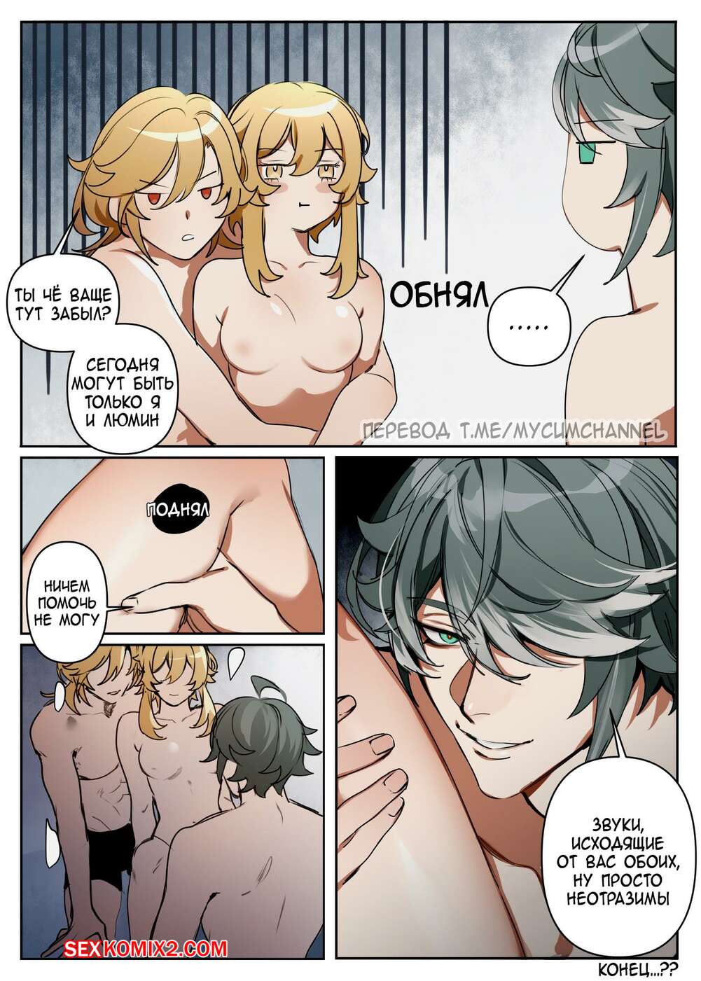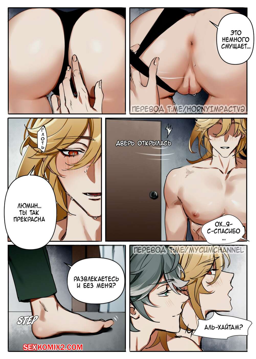 ΠΠΎΡΠ½ΠΎ ΠΊΠΎΠΌΠΈΠΊΡ Genshin Impact. ΠΡΡΡΠ΅ΡΠ° ΠΠ°Π²Π΅Ρ Π°, ΠΡΠΌΠΈΠ½ ΠΈ ΠΠ»Ρ Π₯Π°ΠΉΡΠ°ΠΌΠ°. Eriimyon ΠΠΎΡΡΡΠ°Ρ Π±Π»ΠΎΠ½Π΄ΠΈΠ½ΠΊΠ° Π±ΡΠ»Π° ΠΎΡΠ΅Π½Ρ Π²ΠΎΠ·Π±ΡΠΆΠ΄Π΅Π½Π° ΠΈ Ρ ΠΎΡΠ΅Π»Π° ΡΡΠ°Ρ Π°ΡΡΡΡ. ΠΠ½Π° ΡΠ°Π·Π΄Π΅Π»Π°ΡΡ ΠΈ ΡΡΠ°Π»Π° ΡΡΡΠ°ΡΡΠ½ΠΎ ΡΠ΅Π»ΠΎΠ²Π°ΡΡΡΡ ΡΠΎ ΡΠ²ΠΎΠΈΠΌ Π΄ΡΡΠΆΠΊΠΎΠΌ, ΠΏΠΎΡΠ»Π΅ ΡΠ΅Π³ΠΎ Π΄Π°Π»Π° Π΅ΠΌΡ Π²ΡΠ΅Π±Π°ΡΡ ΡΠ²ΠΎΡ ΠΏΠΈΠ·Π΄Π΅Π½ΠΊΡ.