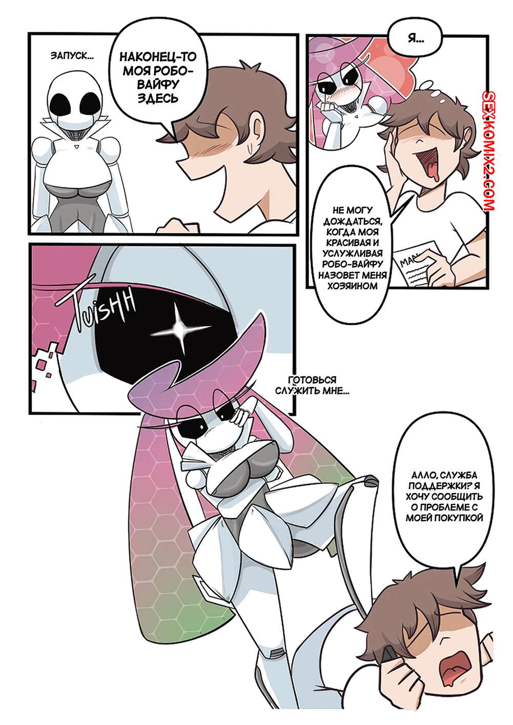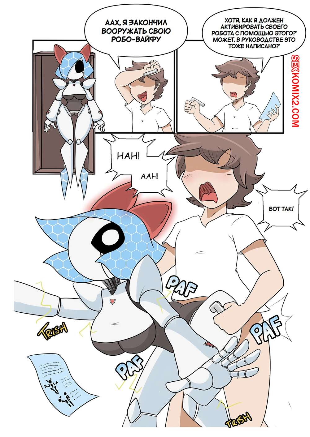 Порно комикс Pokemon. Робо Вайфу. Часть 1. ROBO WAIFU. Clockworkstudio. Сексуальная красотка робот была очень возбуждена и решила повеселиться с молодым парнем. Она возбудила его своим шикарным телом, после чего дала ему выебать свою пизденку.