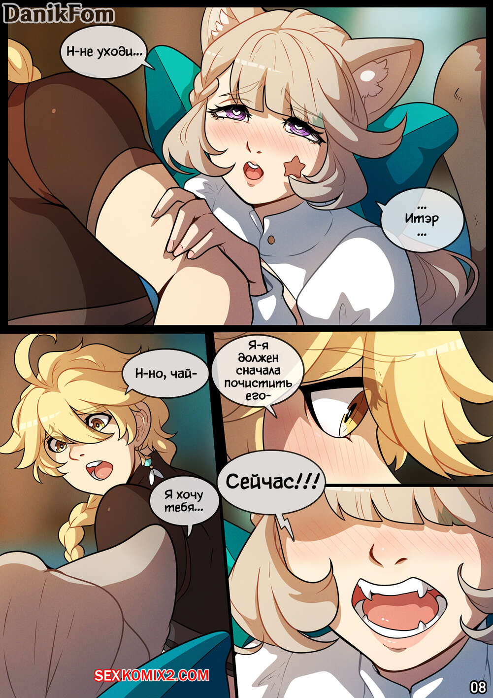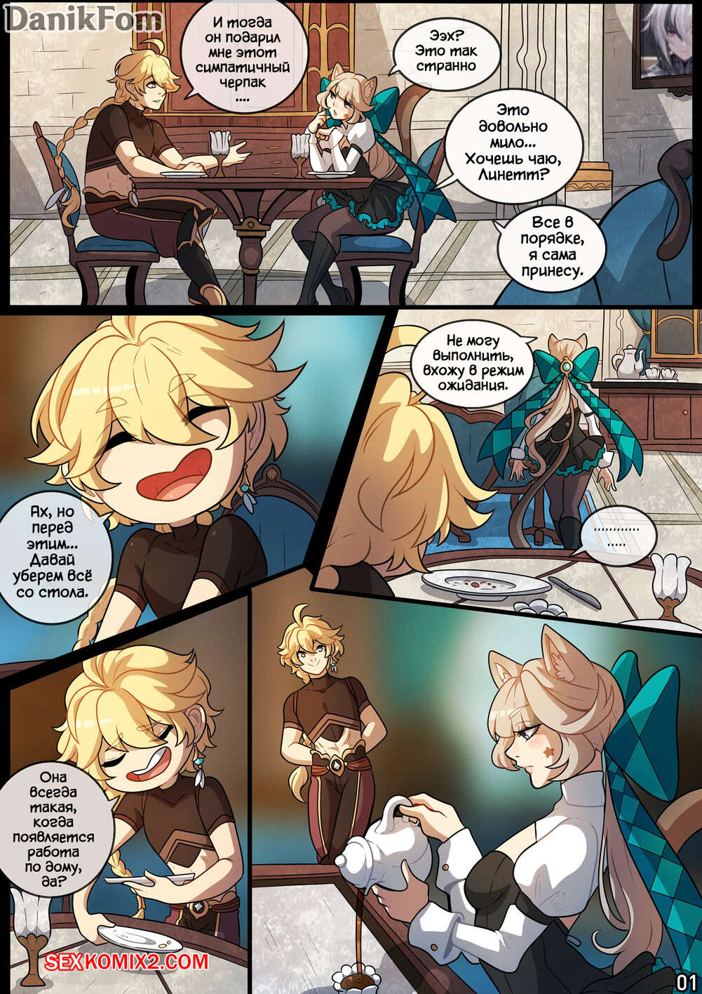 Порно комикс Genshin Impact. Переход в Режим Объятий. Entering Cuddle Mode. Kinkymation Парень с девушкой были очень возбуждены и решили повеселиться. Красотка разделась и отсосала большой хуй своего дружка, после чего дала ему выебать свою пизденку и кончить в нее.