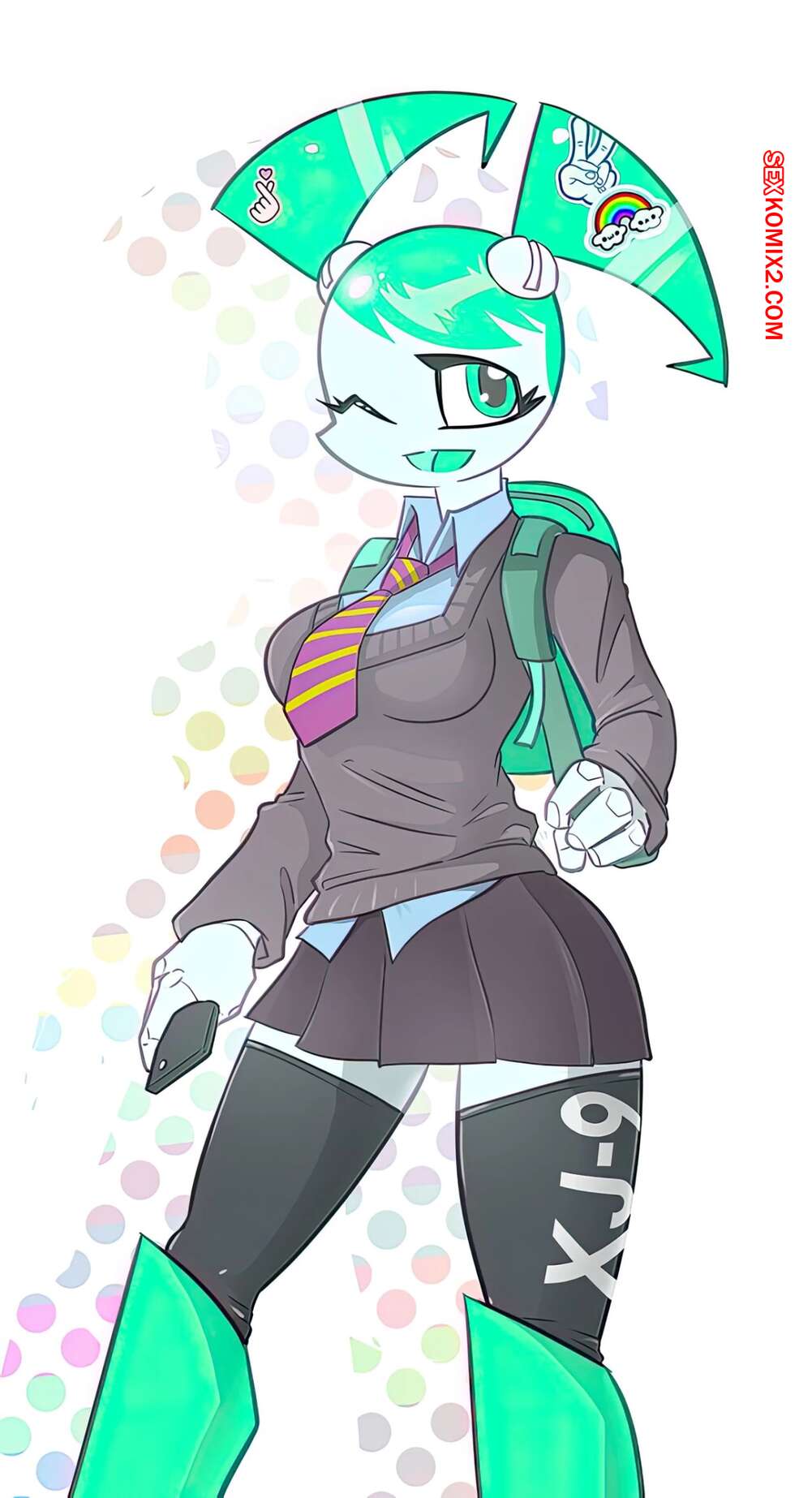 ΠΠΎΡΠ½ΠΎ ΠΊΠΎΠΌΠΈΠΊΡ My life as a teenage robot. LonLon Π‘Π±ΠΎΡΠ½ΠΈΠΊ ΠΊΠ°ΡΡΠΈΠ½ΠΎΠΊ Ρ Π³ΠΎΡΡΡΠ΅ΠΉ ΠΊΡΠ°ΡΠΎΡΠΊΠΎΠΉ ΡΠΎΠ±ΠΎΡΠΎΠΌ. ΠΠ΅Π²ΡΡΠΊΠ° ΡΠ°Π·Π΄Π΅Π²Π°Π΅ΡΡΡ ΠΈ Π΄Π΅ΠΌΠΎΠ½ΡΡΡΠΈΡΡΠ΅Ρ ΡΠ²ΠΎΠ΅ ΡΠΈΠΊΠ°ΡΠ½ΠΎΠ΅ ΡΠ΅Π»ΠΎ, ΠΏΠΎΡΠ»Π΅ ΡΠ΅Π³ΠΎ Π·Π°Π½ΠΈΠΌΠ°Π΅ΡΡΡ ΡΡΡΠ°ΡΡΠ½ΠΎΠΉ Π΅Π±Π»Π΅ΠΉ ΡΠΎ ΡΠ²ΠΎΠΈΠΌΠΈ Π΄ΡΡΠΆΠΊΠ°ΠΌΠΈ Ρ Π±ΠΎΠ»ΡΡΠΈΠΌΠΈ Ρ ΡΡΠΌΠΈ.