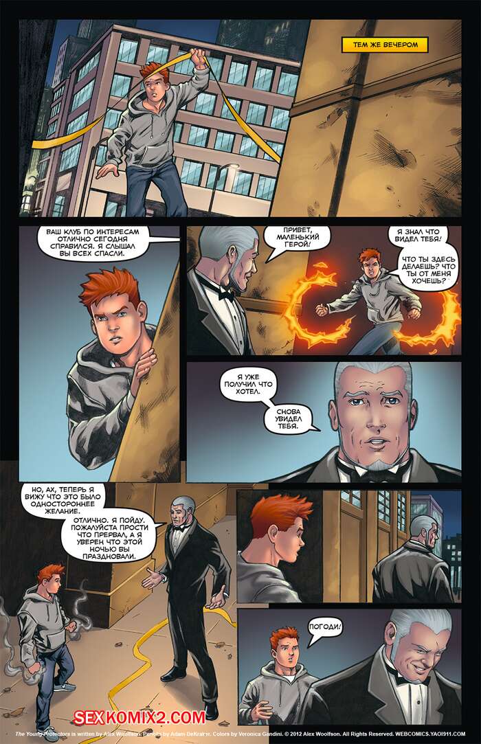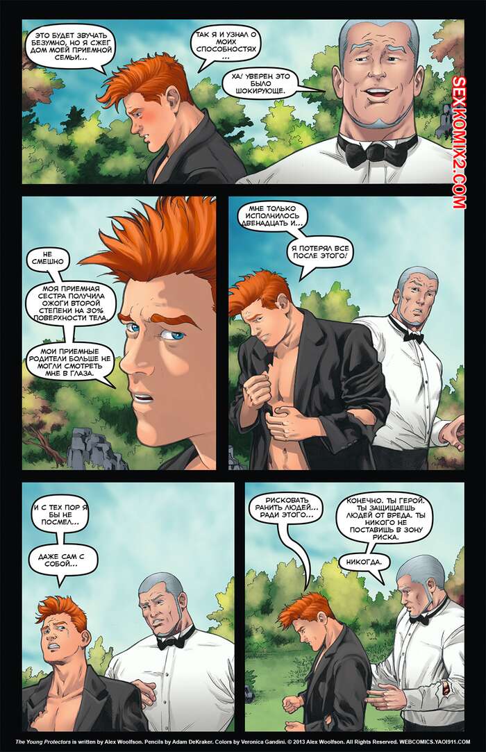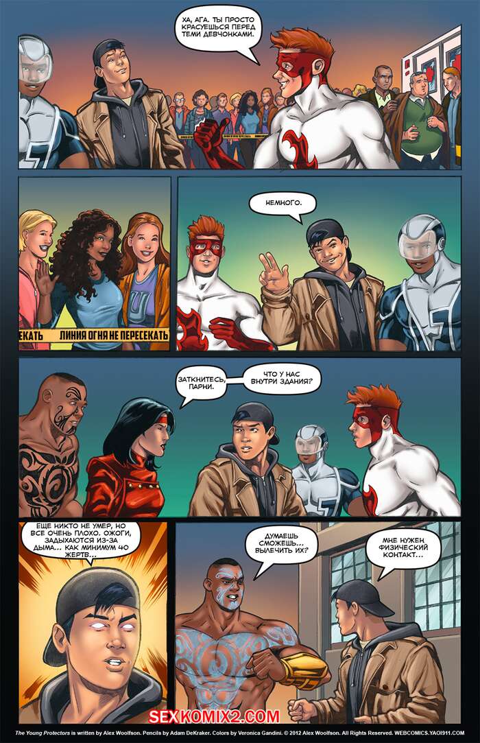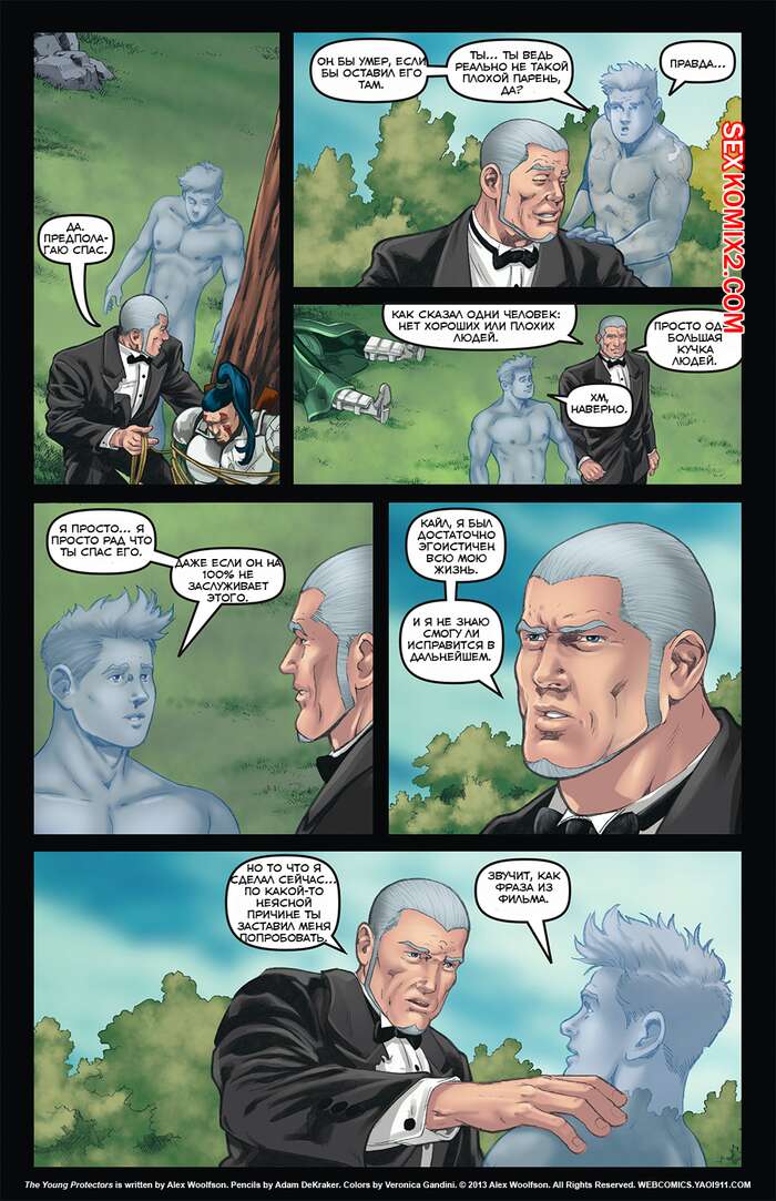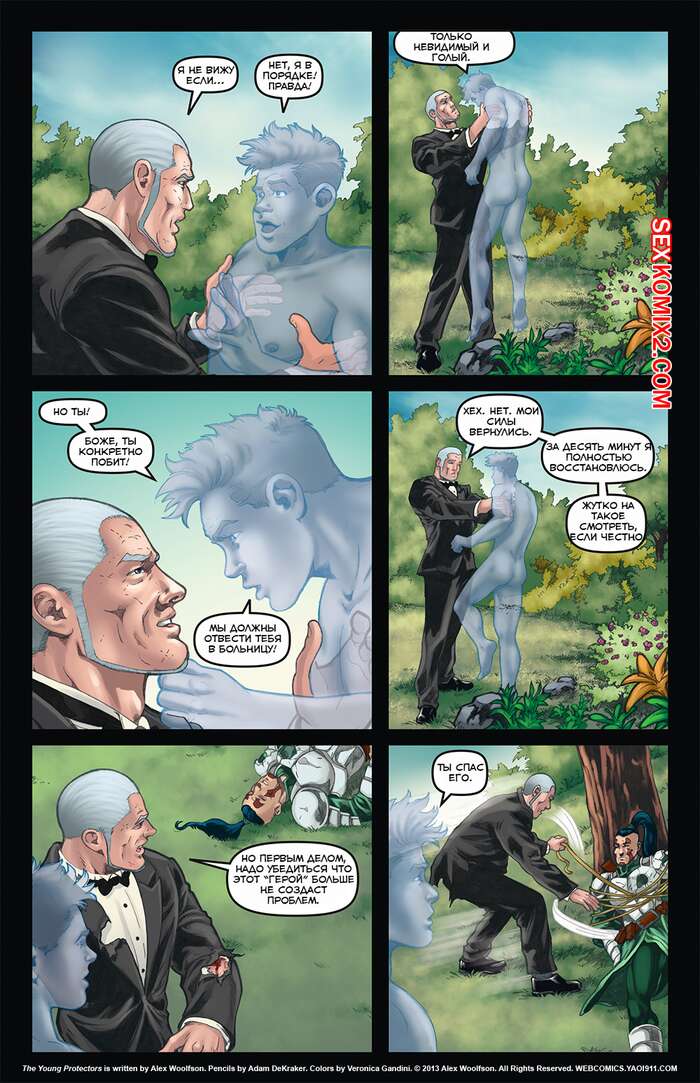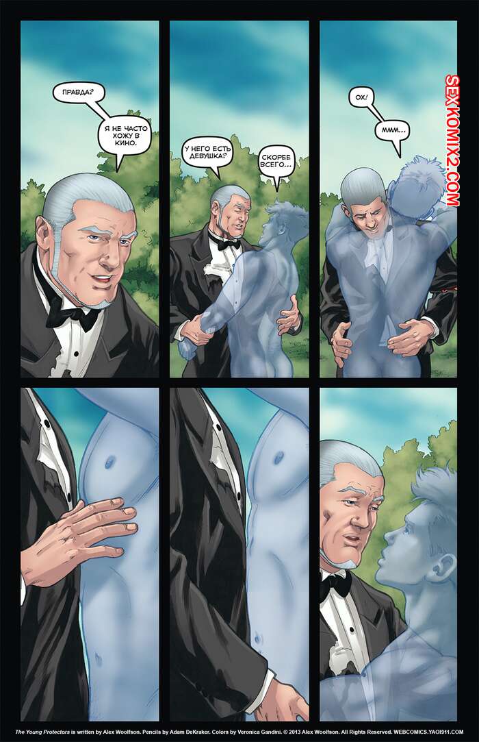 Порно комикс Юные Защитники. Часть 1. Привлечение Врага. Парень на своем первом задании отлично себя показал, и его приняли в команду супер героев. Но все не так просто, на него положил глаз их лидер и хочет ближе с ним познакомится.