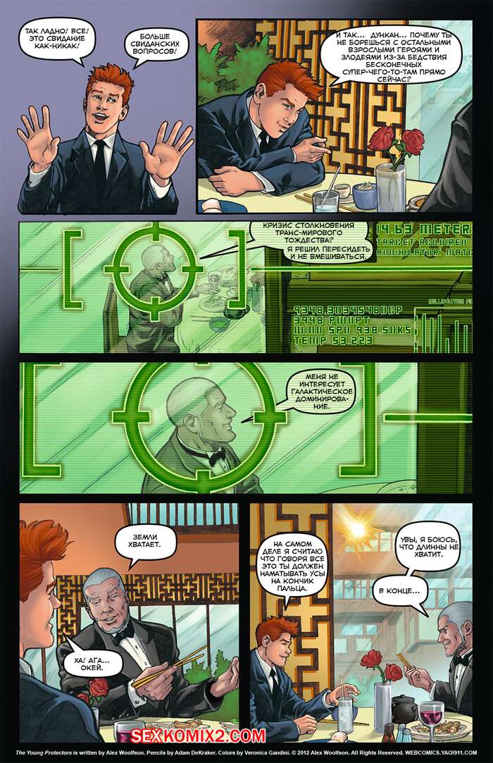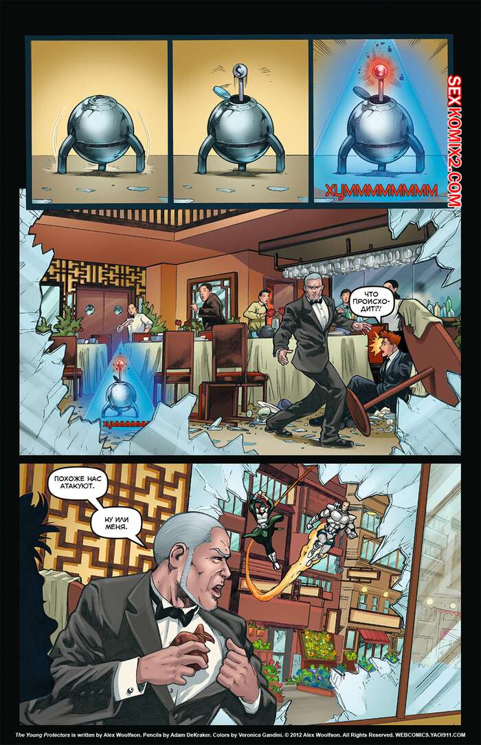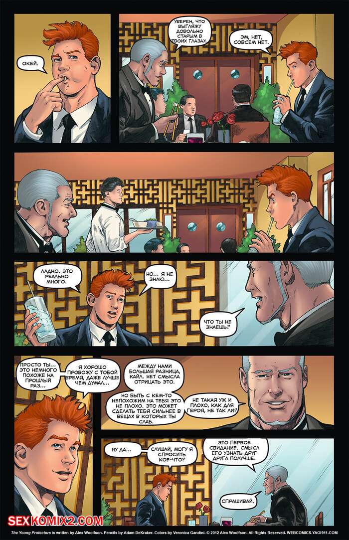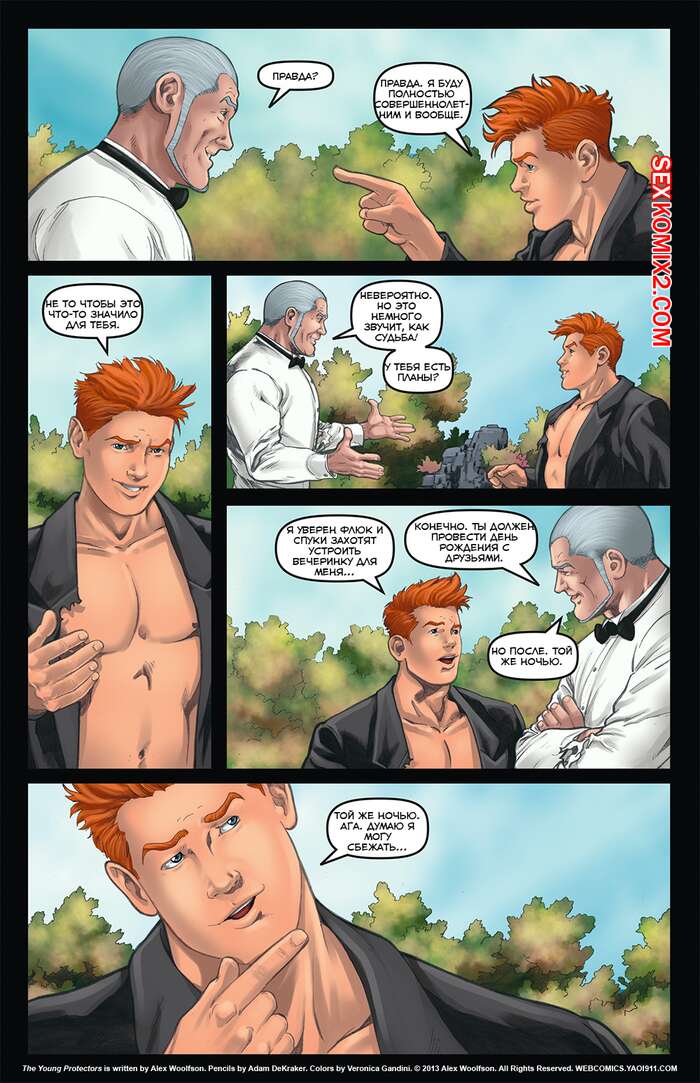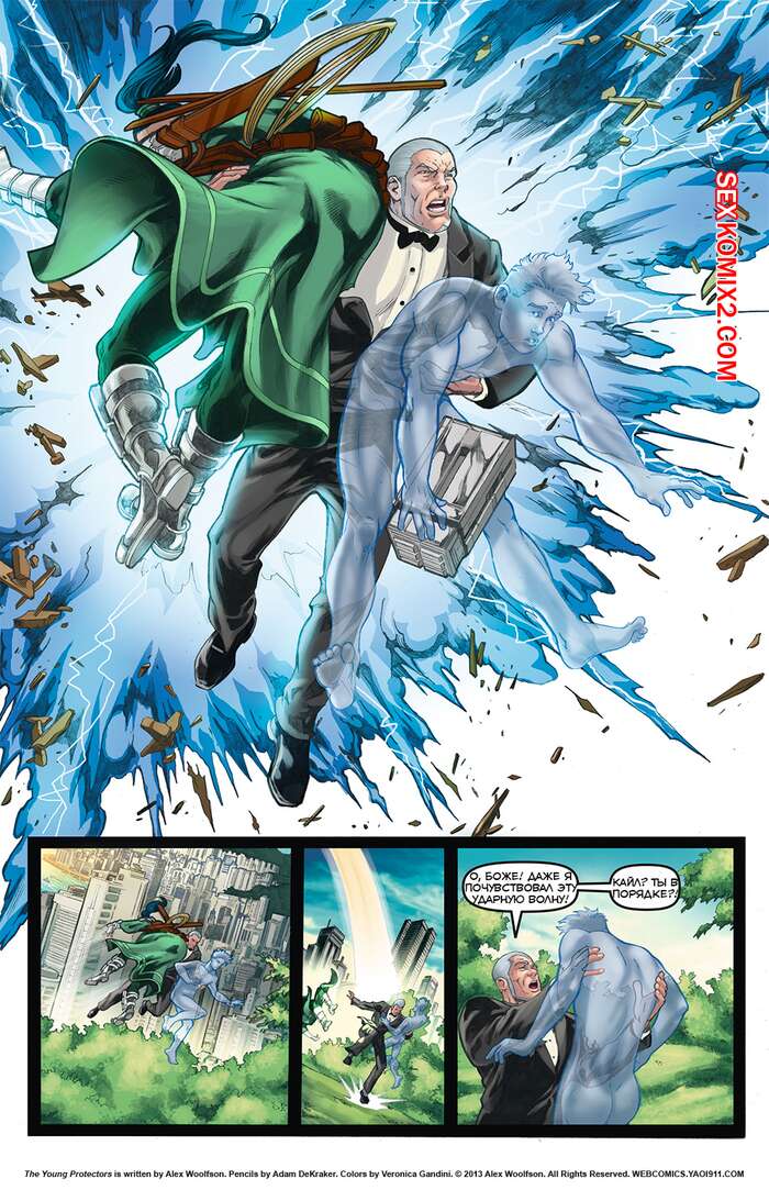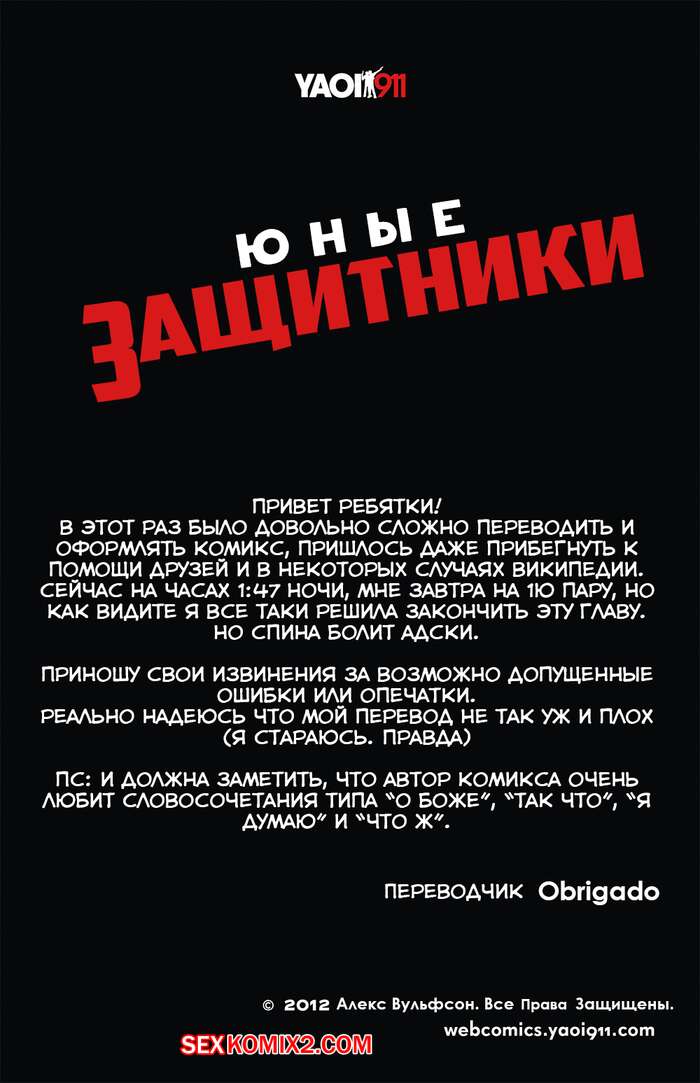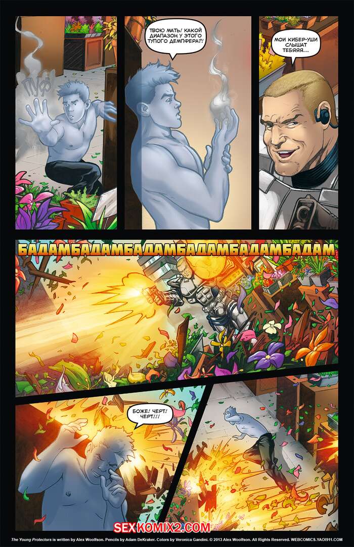 Порно комикс Юные Защитники. Часть 1. Привлечение Врага. Парень на своем первом задании отлично себя показал, и его приняли в команду супер героев. Но все не так просто, на него положил глаз их лидер и хочет ближе с ним познакомится.