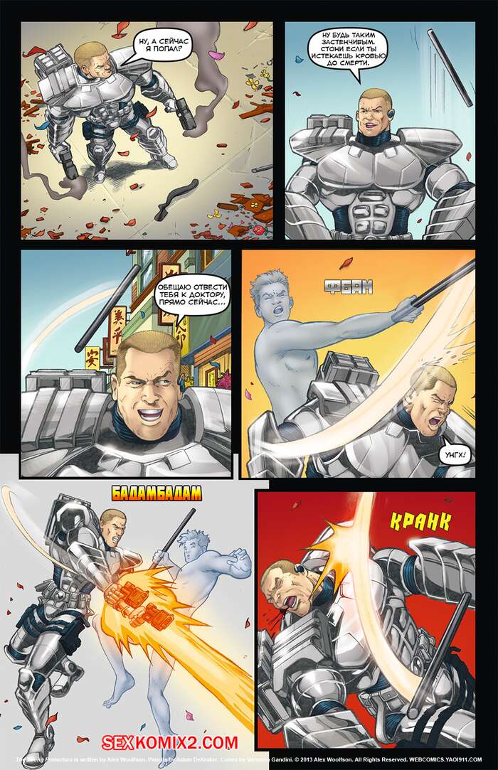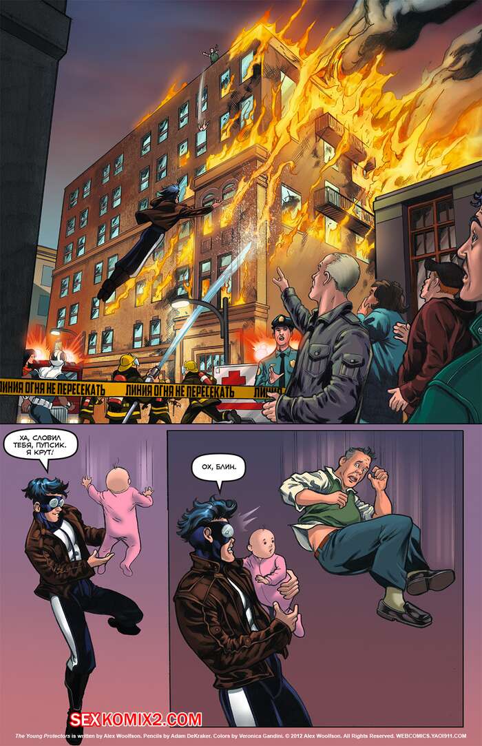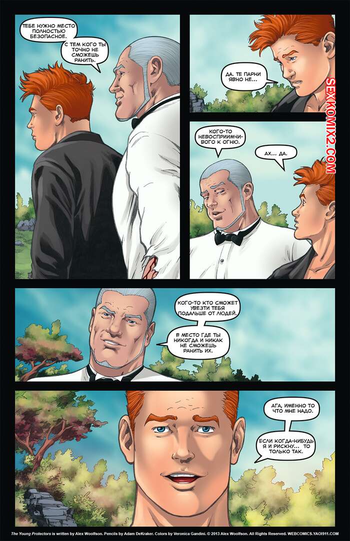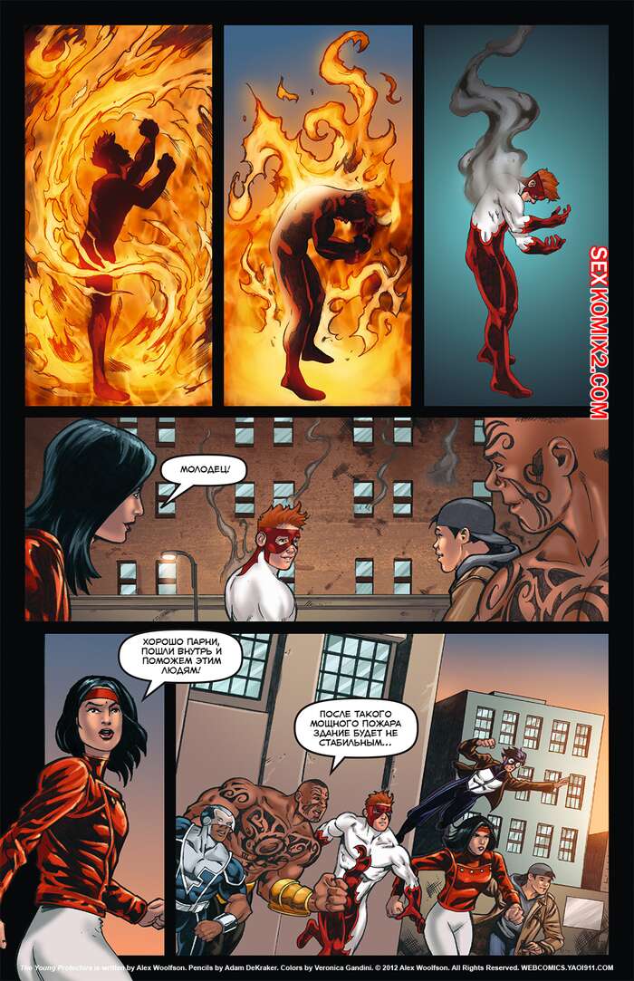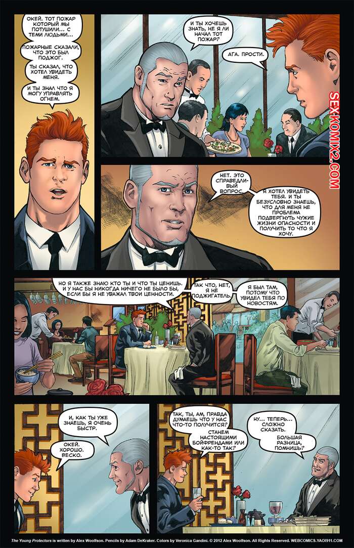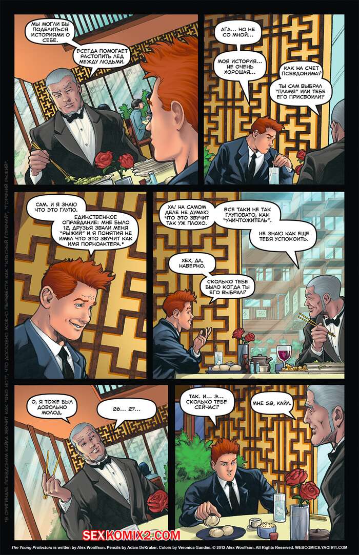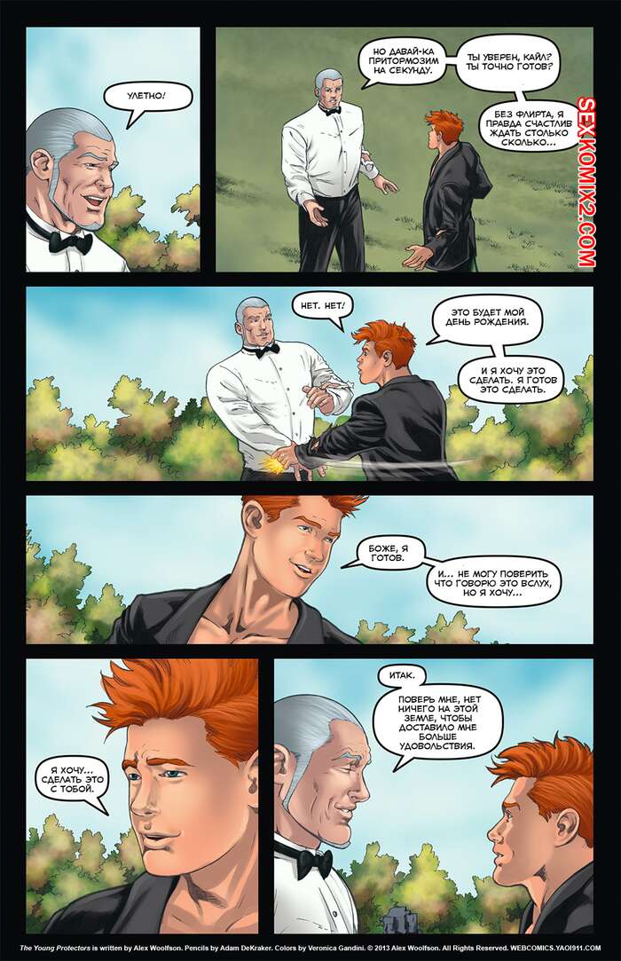 Порно комикс Юные Защитники. Часть 1. Привлечение Врага. Парень на своем первом задании отлично себя показал, и его приняли в команду супер героев. Но все не так просто, на него положил глаз их лидер и хочет ближе с ним познакомится.