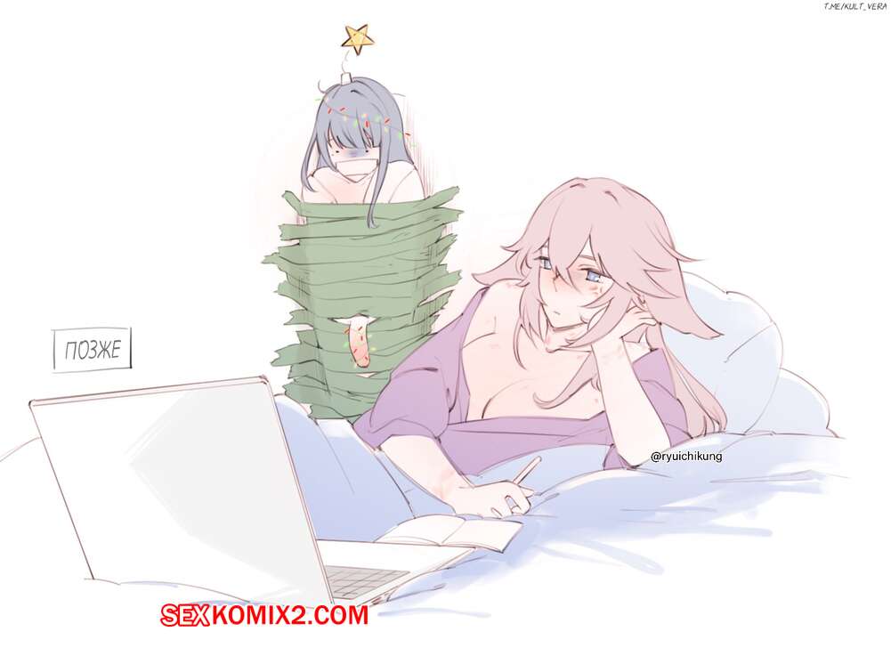 Порно комикс Genshin Impact. Счастливого Рождества. Merry Christmas. Ryuichikung Две подруги праздновали вместе рождество и решили повеселиться. Рыжая девушка разделась и возбудила подругу, после чего дала ей выебать свою пизденку.