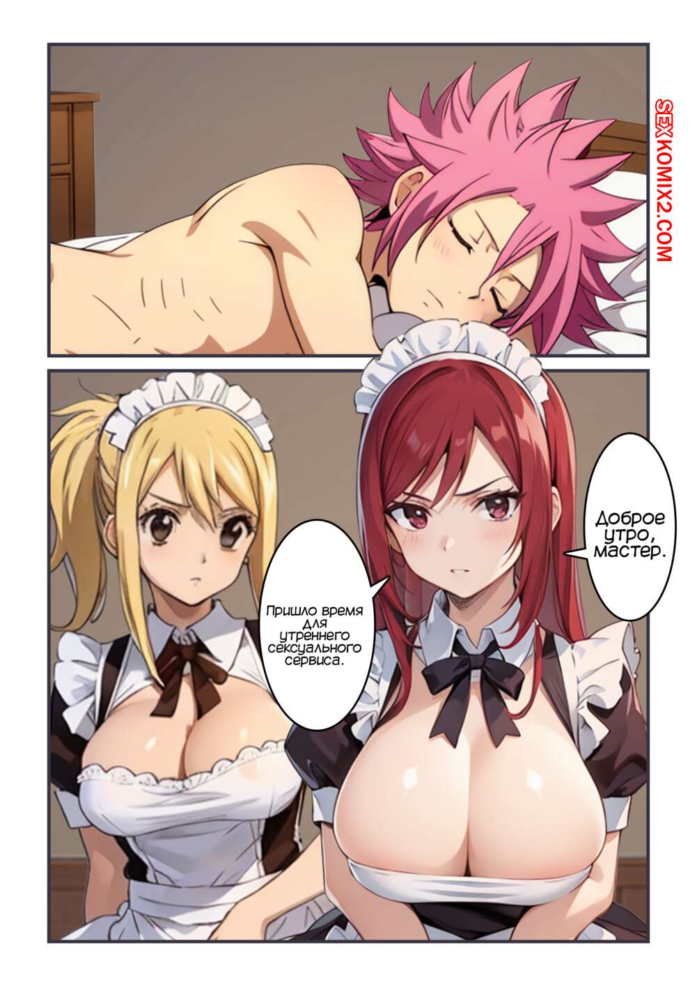 ΠΠΎΡΠ½ΠΎ ΠΊΠΎΠΌΠΈΠΊΡ Fairy Tail. ΠΠ΅Π»ΠΈΠΊΠΎΠ»Π΅ΠΏΠ½ΡΠΉ ΡΠ΅ΡΠ²ΠΈΡ. Sparkling Service. Kahoo ΠΠ²Π΅ Π³ΠΎΡΡΡΠΈΠ΅ ΠΊΡΠ°ΡΠΎΡΠΊΠΈ ΡΠ°Π·Π±ΡΠ΄ΠΈΠ»ΠΈ Ρ ΡΡΡΠ° ΡΠ²ΠΎΠ΅Π³ΠΎ ΠΌΠ°ΡΡΠ΅ΡΠ°, ΡΡΠΎΠ±Ρ ΠΎΠΊΠ°Π·Π°ΡΡ Π΅ΠΌΡ ΡΠ΅ΠΊΡΡΠ°Π»ΡΠ½ΡΠΉ ΡΠ΅ΡΠ²ΠΈΡ. ΠΠ΅Π²ΡΡΠΊΠΈ ΡΠ°Π·Π΄Π΅Π»ΠΈΡΡ ΠΈ ΠΎΡΡΠΎΡΠ°Π»ΠΈ Π±ΠΎΠ»ΡΡΠΎΠΉ Ρ ΡΠΉ ΠΏΠ°ΡΠ½Ρ, ΠΏΠΎΡΠ»Π΅ ΡΠ΅Π³ΠΎ Π΄Π°Π»ΠΈ Π΅ΠΌΡ ΡΠ΅Π±Ρ Π²ΡΠ΅Π±Π°ΡΡ ΠΈ ΠΊΠΎΠ½ΡΠΈΡΡ Π² Π½ΠΈΡ .