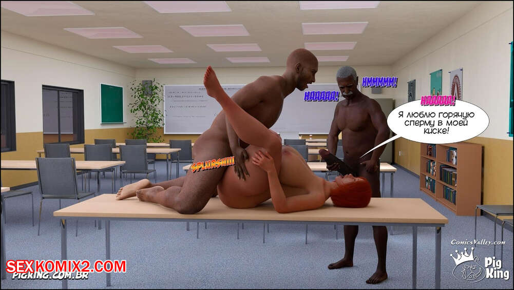 Порно комикс Большой черный член. Часть 10. Big Black Cocks. CrazyDad3D Горячая милфа Эвелина продолжает наслаждаться двумя черными членами. Мужчины трахают рыжую красотку по очереди, после чего решили устроить ей двойное проникновение.