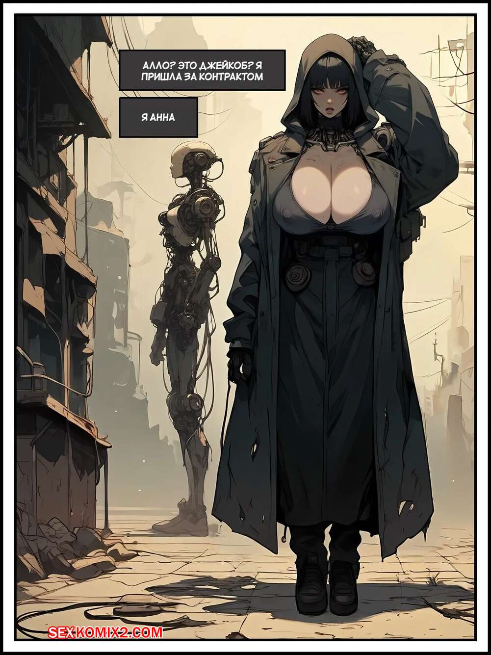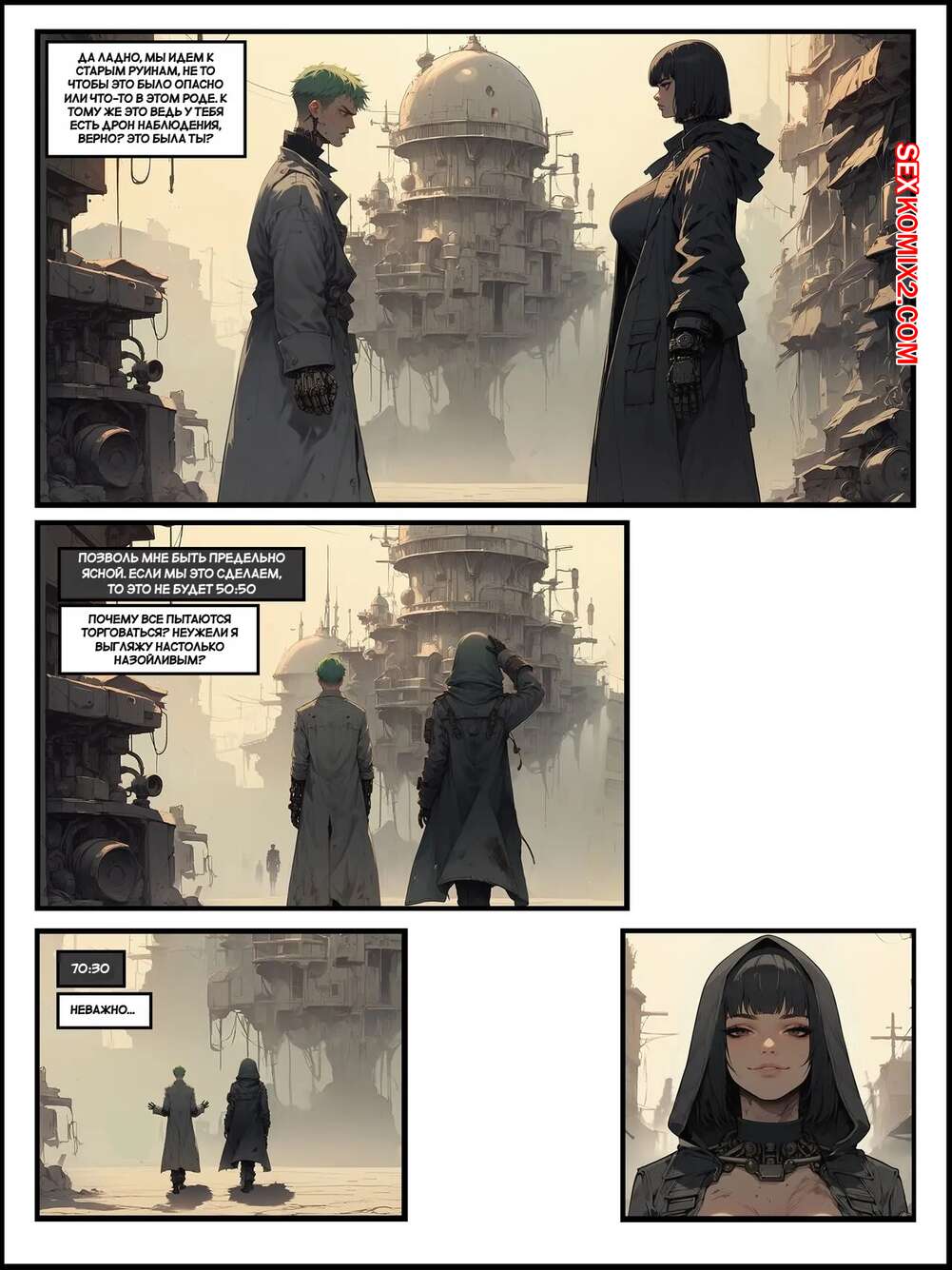 Порно комикс Колеблющиеся горизонты. Wavering horizons. Sgrodolo. Горячая брюнетка с шикарным телом накинула на себя плащь и отправилась на встречу с парнем, чтобы получить контракт. Он был поражен телом девушки и позвал ее в более уединенное место.