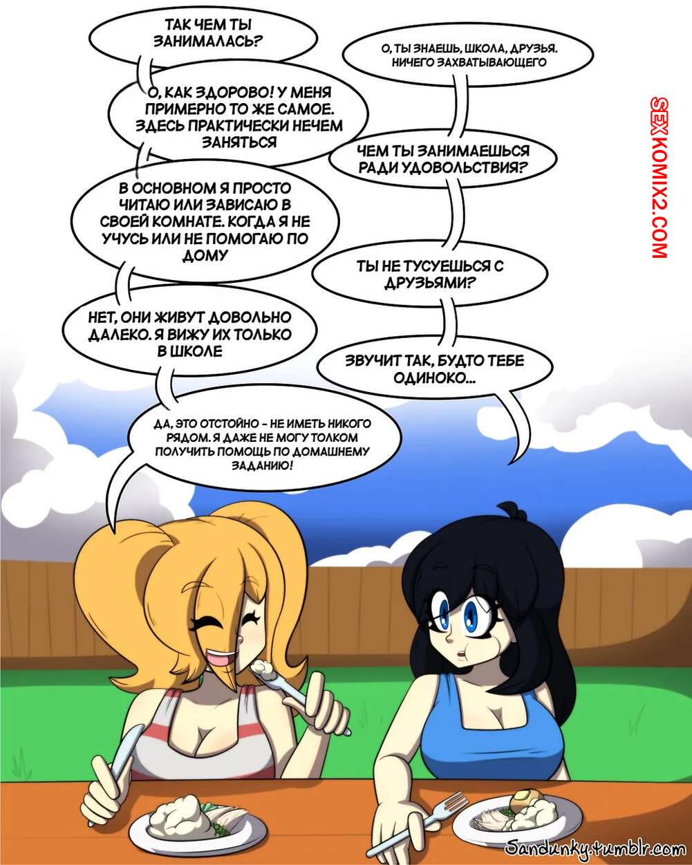 ΠΠΎΡΠ½ΠΎ ΠΊΠΎΠΌΠΈΠΊΡ ΠΡΡΠ΅, ΡΠ΅ΠΌ Π²ΠΎΠ΄Π°. Π§Π°ΡΡΡ 1. Thicker Than Water. Sandunky. ΠΠΎΡΡΡΠΈΠ΅ ΠΏΠΎΠ΄ΡΡΠ³ΠΈ Π±ΡΠ»ΠΈ ΠΎΡΠ΅Π½Ρ Π²ΠΎΠ·Π±ΡΠΆΠ΄Π΅Π½Ρ ΠΈ ΡΠ΅ΡΠΈΠ»ΠΈ ΠΏΠΎΠ²Π΅ΡΠ΅Π»ΠΈΡΡΡΡ. ΠΠ΅Π²ΡΡΠΊΠΈ ΡΡΠ°Π»ΠΈ ΡΡΡΠ°ΡΡΠ½ΠΎ ΡΠ΅Π»ΠΎΠ²Π°ΡΡΡΡ ΠΈ Π»Π°ΡΠΊΠ°ΡΡ Π΄ΡΡΠ³ Π΄ΡΡΠΆΠΊΡ, ΠΏΠΎΡΠ»Π΅ ΡΠ΅Π³ΠΎ ΡΠ°Π·Π΄Π΅Π»ΠΈΡΡ ΠΈ Π·Π°Π½ΡΠ»ΠΈΡΡ ΡΡΡΠ°ΡΡΠ½ΠΎΠΉ Π»Π΅ΡΠ±ΠΈΠΉΡΠΊΠΎΠΉ Π΅Π±Π»Π΅ΠΉ.
