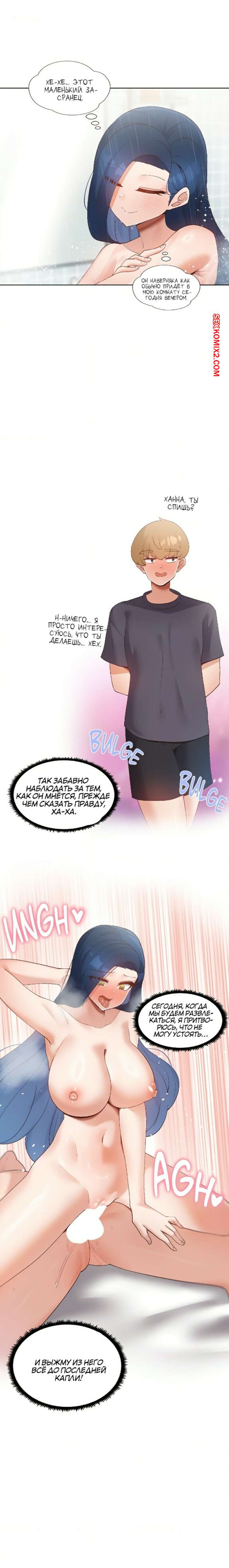 ΠΠΎΡΠ½ΠΎ ΠΊΠΎΠΌΠΈΠΊΡ Π‘Π΅ΠΌΡΡ Ρ ΠΏΡΠΈΠ²ΠΈΠ»Π΅Π³ΠΈΡΠΌΠΈ. Π§Π°ΡΡΡ 13 ΠΈ 14 ΠΈ 15 ΠΠΎΡΡΡΠ°Ρ Π±ΡΡΠ½Π΅ΡΠΊΠ° Π±ΡΠ»Π° Π·Π°Π½ΡΡΠ° ΡΠ°Π±ΠΎΡΠΎΠΉ, Π° Π΅Π΅ Π±ΡΠ°ΡΠΈΠΊ Π±ΡΠ» ΠΎΡΠ΅Π½Ρ Π²ΠΎΠ·Π±ΡΠΆΠ΄Π΅Π½. ΠΠ½ ΠΎΡΠ»ΠΈΠ·Π°Π» ΠΏΠΈΠ·Π΄Π΅Π½ΠΊΡ Π΄Π΅Π²ΡΡΠΊΠΈ, ΠΏΠΎΡΠ»Π΅ ΡΠ΅Π³ΠΎ Π½Π°ΡΠ°Π΄ΠΈΠ» Π΅Π΅ Π½Π° ΡΠ²ΠΎΠΉ ΡΠ»Π΅Π½ ΠΈ Ρ ΠΎΡΠΎΡΠ΅Π½ΡΠΊΠΎ Π²ΡΠ΅Π±Π°Π» ΡΠ΅ΡΡΡΠ΅Π½ΠΊΡ.