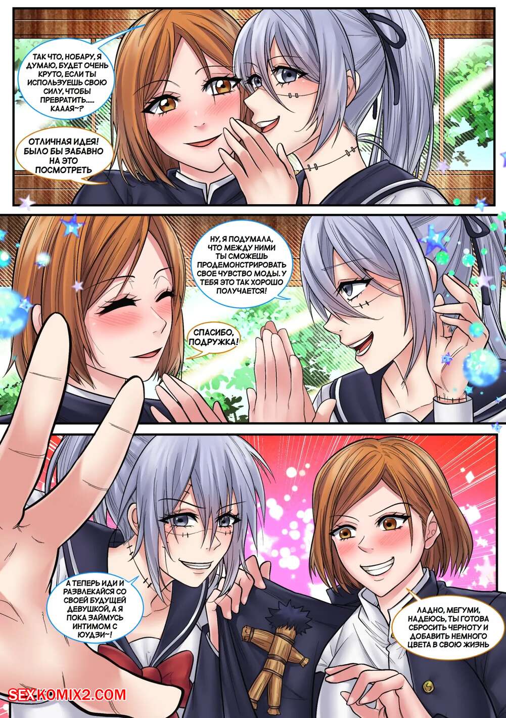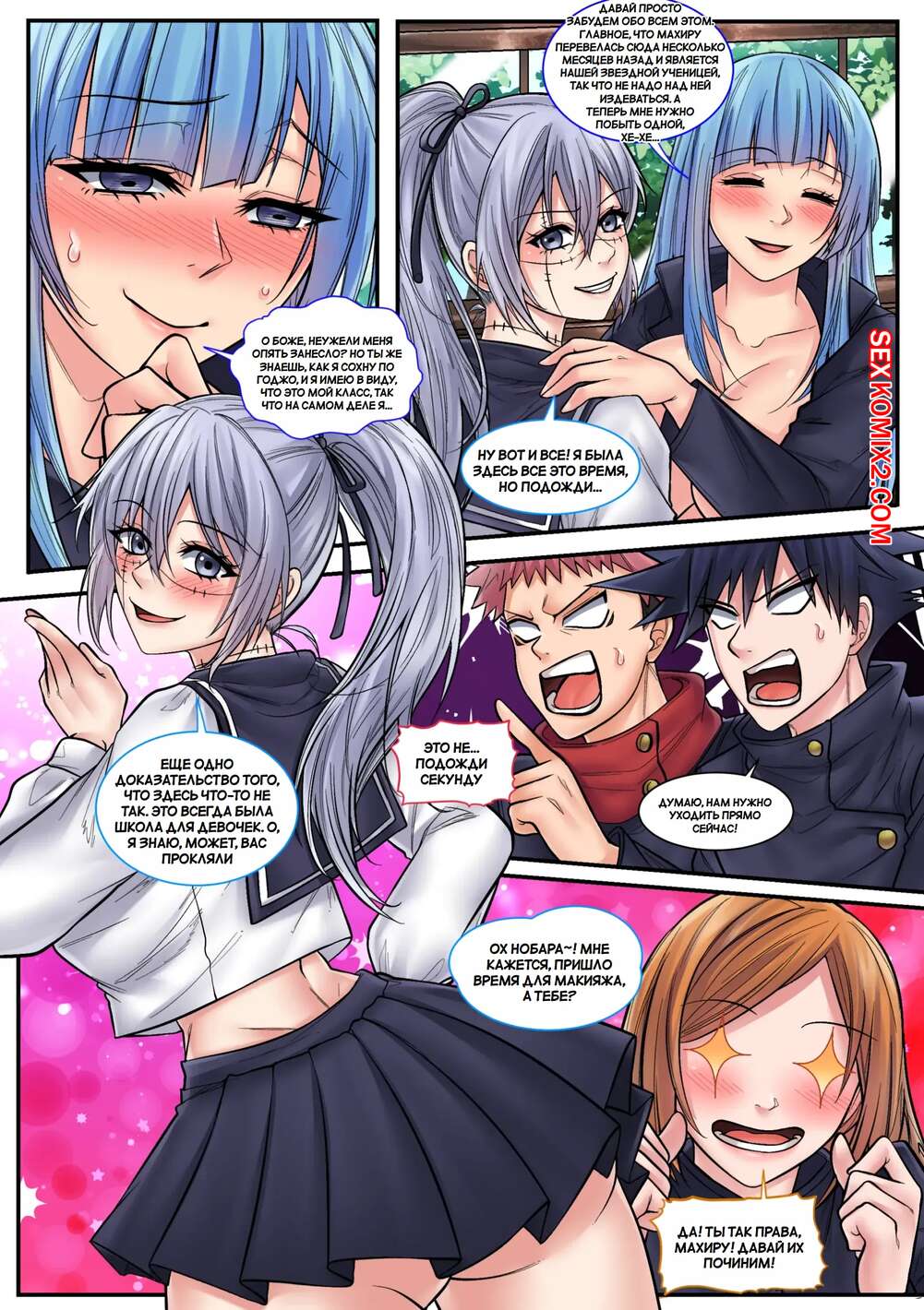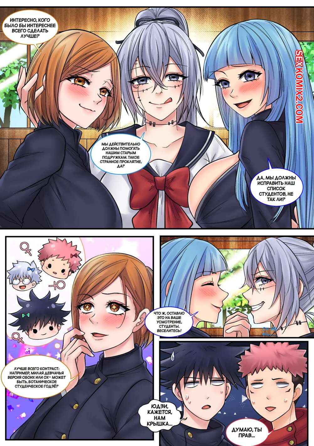 Порно комикс Джуджутсу Кайсен. Jujutsu Kaisen Mahito Mayhem. Mayitgu. Парни пользуются особым заклинанием и превращаются в сексуальных возбужденных красоток. Девушки раздеваются и ласкают друг дружку, получая при этом огромное удовольствие.