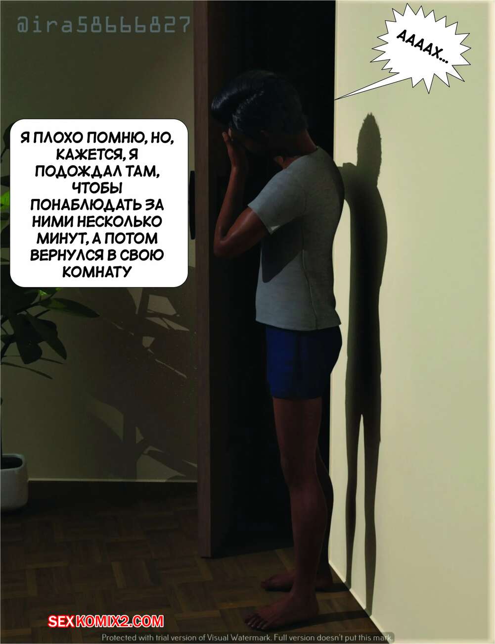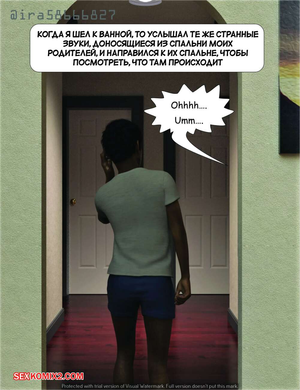 Порно комикс Мама и я. Часть 1. Mom and Me. Silk Route, Ira Raman Юному парню не спалось ночью и он услышал странные звуки из комнаты своих родителей. Он пошел посмотреть что происходит и обнаружил, как родители занимаются сексом.