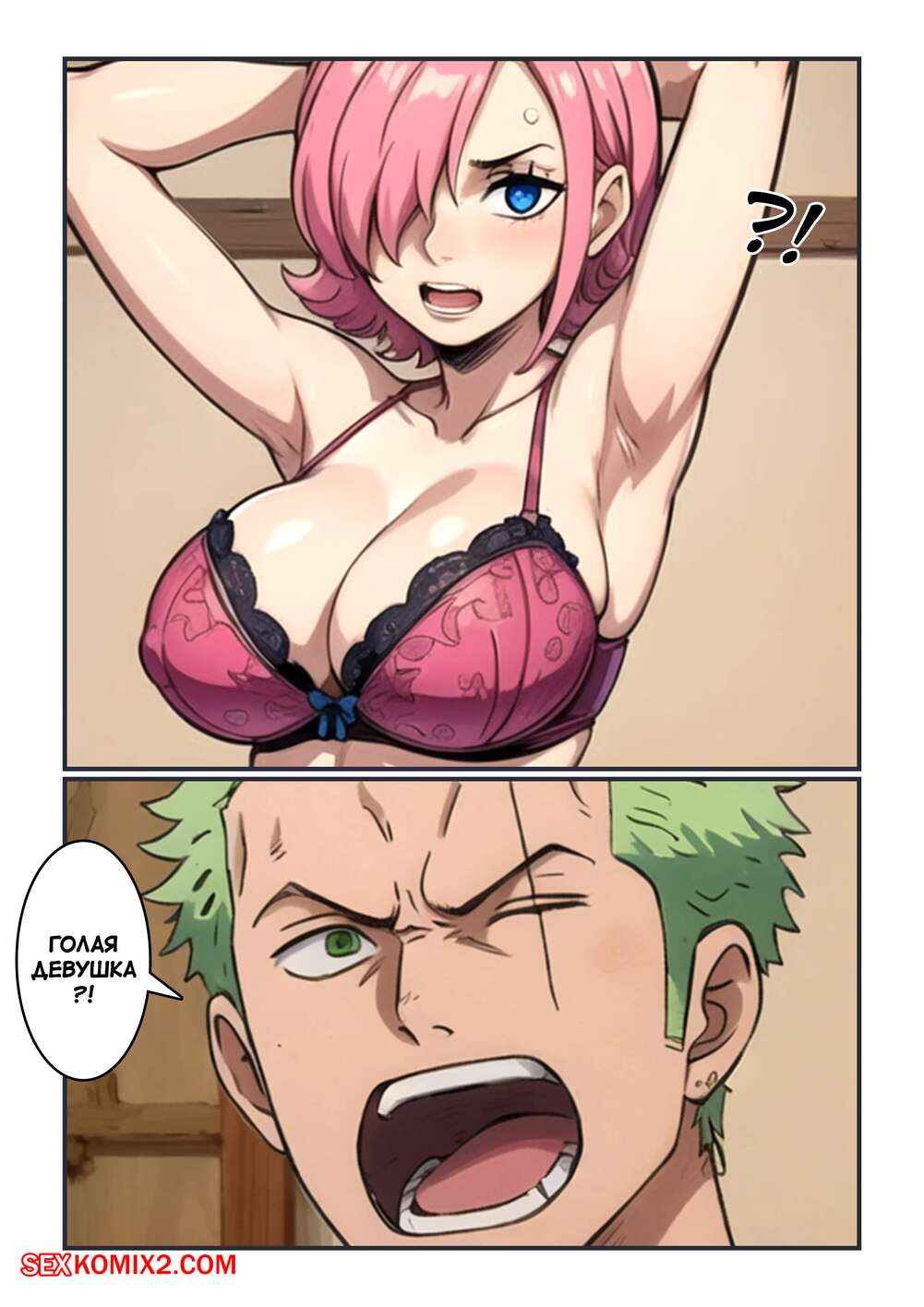 ΠΠΎΡΠ½ΠΎ ΠΊΠΎΠΌΠΈΠΊΡ One Piece. ΠΠΎΡΠΎ Π²ΠΎΡΠ΅Π» Π½Π΅ Π² ΡΡ ΠΊΠΎΠΌΠ½Π°ΡΡ. Zoro entered the wrong room. Kahoo ΠΠΎΡΠΎ ΠΎΡΠΈΠ±ΡΡ Π΄Π²Π΅ΡΡΡ ΠΈ Π²ΠΎΡΠ΅Π» Π² ΠΊΠΎΠΌΠ½Π°ΡΡ ΠΊ Π³ΠΎΠ»ΠΎΠΉ Π΄Π΅Π²ΡΡΠΊΠ΅. ΠΠ½Π° Π½Π΅ ΡΡΠ°Π»Π° ΡΡΡΡΠ°ΠΈΠ²Π°ΡΡ ΡΠΊΠ°Π½Π΄Π°Π»ΠΎΠ², Π° Π΄Π°Π»Π° ΠΏΠ°ΡΠ½Ρ ΠΏΠΎΡΡΠΎΠ³Π°ΡΡ ΡΠ²ΠΎΠΈ Π±ΠΎΠ»ΡΡΠΈΠ΅ ΡΠΈΡΡΠΊΠΈ ΠΈ Π΄Π°Π»Π° Π²ΡΠ΅Π±Π°ΡΡ ΡΠ²ΠΎΡ ΠΏΠΈΠ·Π΄Π΅Π½ΠΊΡ.