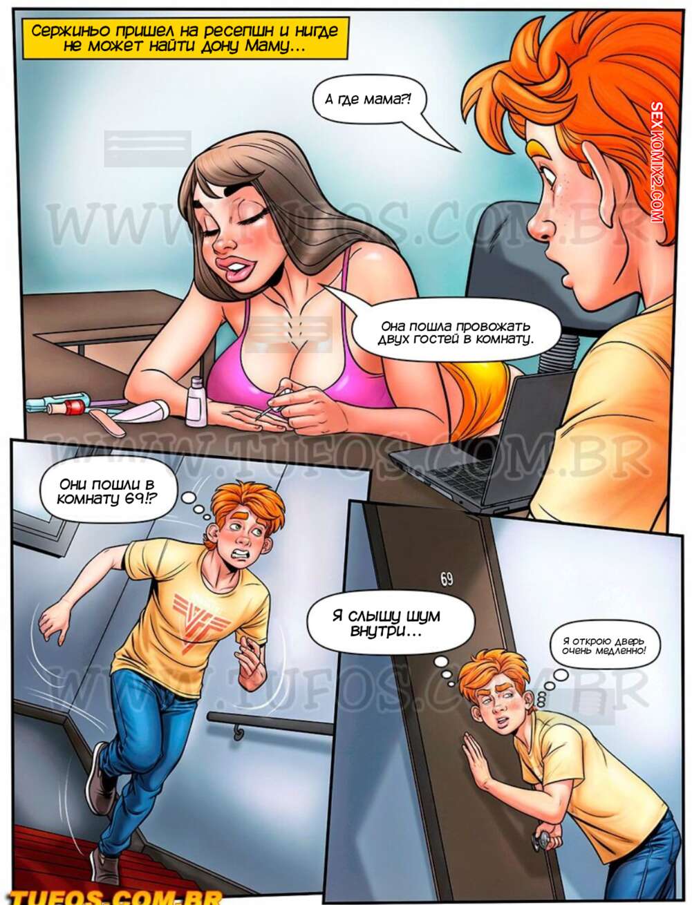 ΠΠΎΡΠ½ΠΎ ΠΊΠΎΠΌΠΈΠΊΡ ΠΠΎΠ½ΡΡ ΠΠ°ΠΌΠ°. Π§Π°ΡΡΡ 7. Dona Mama a maezona da galera. Tufos ΠΠ²Π° ΡΠ΅ΠΌΠ½ΠΎΠΊΠΎΠΆΠΈΡ ΠΏΠ°ΡΠ½Ρ ΠΏΡΠΈΡΠ»ΠΈ Π² ΠΏΠ°Π½ΡΠΈΠΎΠ½Π°Ρ Π΄ΠΎΠ½Ρ ΠΠ°ΠΌΡ, ΡΡΠΎΠ±Ρ ΡΠ·Π½Π°ΡΡ, Π²Π΅ΡΠ½Ρ Π»ΠΈ ΡΠ»ΡΡ ΠΈ. ΠΡΠ°ΡΠΎΡΠΊΠ° ΠΏΡΠΎΠ²ΠΎΠ΄ΠΈΠ»Π° ΠΏΠ°ΡΠ½Π΅ΠΉ Π² ΠΊΠΎΠΌΠ½Π°ΡΡ 69, Π³Π΄Π΅ Π΄Π°Π»Π° ΠΈΠΌ ΡΠ΅Π±Ρ Π²ΡΠ΅Π±Π°ΡΡ Π²ΠΎ Π²ΡΠ΅ Π΄ΡΡΠΎΡΠΊΠΈ.