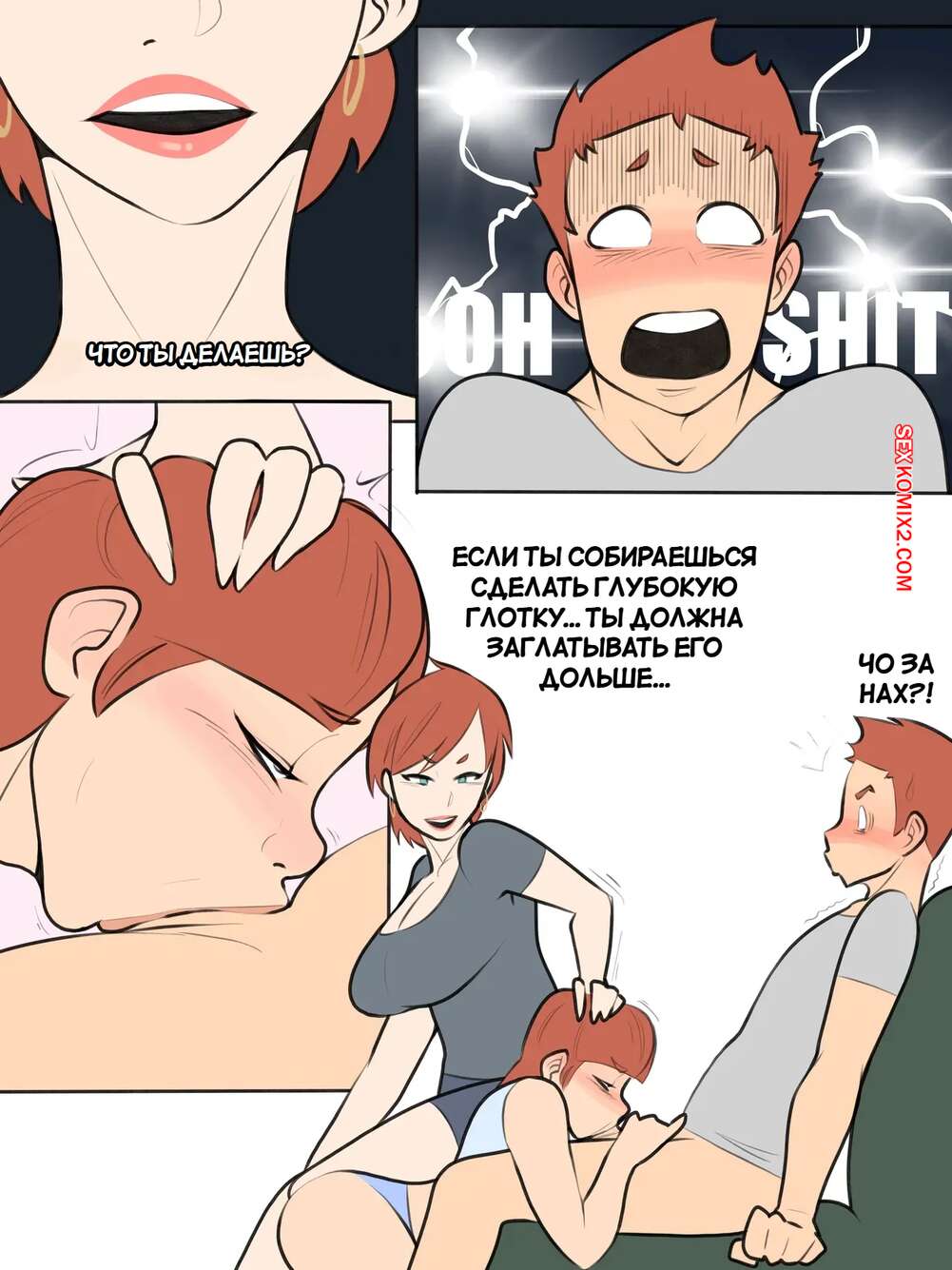 Порно комикс Участие в веселье. Joining In On The Fun. Jopuari. Горячая брюнетка была очень возбуждена и решила повеселиться со своим братиком. Она стала сосать хуй парня, но их за этим делом застала мамка и присоединилась к детям.