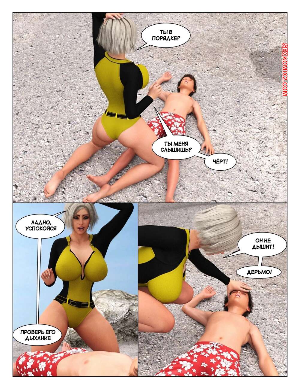 Порно комикс История инцеста. Часть 5. Каникулы. Спасатель. Incest Story. Icstor Горячая блондинка спасла парня и заметила у него стояк, который ее очень возбудил. Красотка разделась и отсосала член парня, после чего дала ему себя хорошенько выебать.