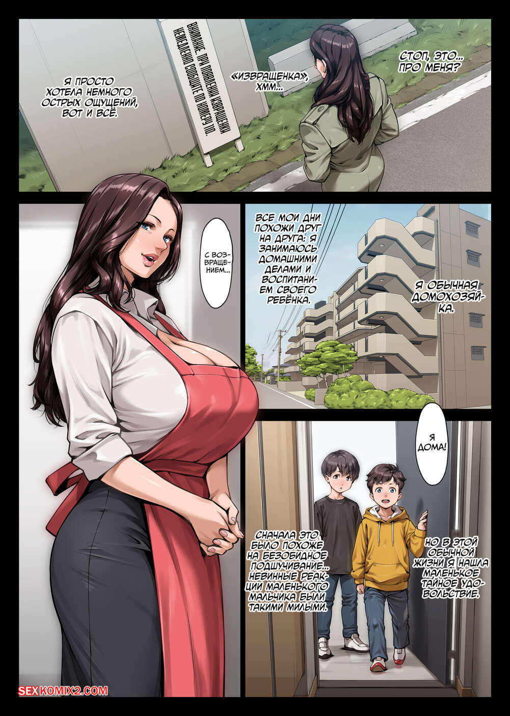 Порно комикс История об извращенке. Извращенка выходит на охоту. Enma У горячей милфы очень извращенные наклонности. Она выходит на улице в сексуальном наряде и соблазняет молодого паренька. Красотка затащила его в уединенное место, где отсосала член паренька и дала трахнуть свою пизденку.