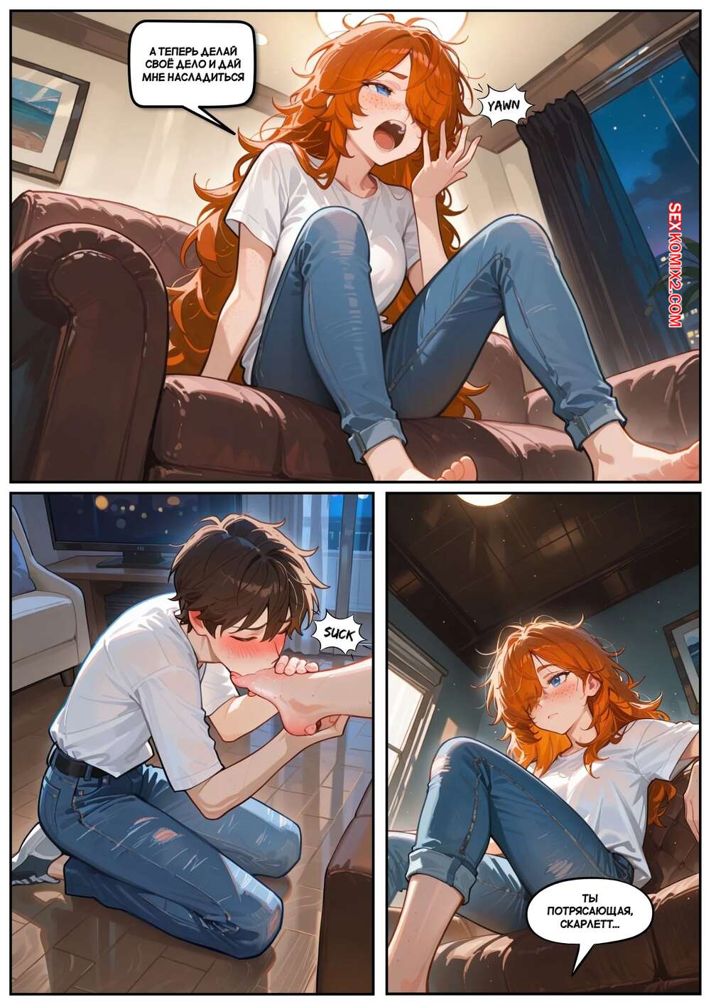 ΠΠΎΡΠ½ΠΎ ΠΊΠΎΠΌΠΈΠΊΡ Π‘ΠΊΠ°ΡΠ»Π΅Ρ ΠΠ»Π΅ΠΉΠ·. Π§Π°ΡΡΡ 3. ΠΠ΅ Π·Π°ΠΌΠ΅ΡΠ°Ρ Π΅Π΅ ΠΠ°ΡΠ΅Π½Ρ Ρ Π΄Π΅Π²ΡΡΠΊΠΎΠΉ Π²ΡΠΏΠΈΠ²Π°Π»ΠΈ Π²ΠΈΠ½ΠΎ, ΠΏΠΎΡΠ»Π΅ ΡΠ΅Π³ΠΎ ΡΡΠΆΡΠ»Ρ ΡΠ΅ΡΠΈΠ»Π° ΠΏΠΎΡΠ°Π»ΠΈΡΡ. ΠΠ½Π° ΡΡΠ°Π»Π° ΠΌΠ°ΡΡΠΈΡΠΎΠ²Π°ΡΡ Π½ΠΎΠΆΠΊΠ°ΠΌΠΈ ΡΠ»Π΅Π½ ΠΏΠ°ΡΠ½Ρ, ΠΏΠΎΡΠ»Π΅ ΡΠ΅Π³ΠΎ ΡΠ½ΡΠ»Π° ΡΡΡΡΠΈΠΊΠΈ ΠΈ Π΄Π°Π»Π° Π΅ΠΌΡ ΠΏΠΎΠΏΡΠΎΠ±ΠΎΠ²Π°ΡΡ Π½Π° Π²ΠΊΡΡ ΡΠ²ΠΎΠΈ Π΄ΡΡΠΎΡΠΊΠΈ.