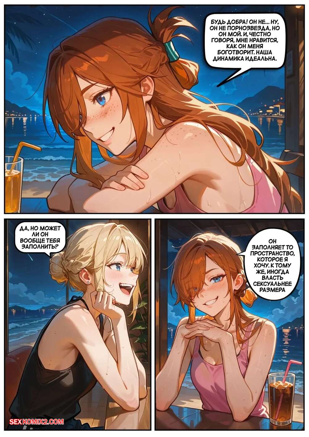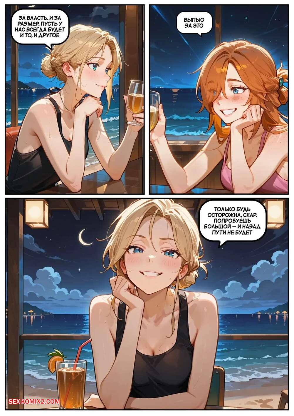 ΠΠΎΡΠ½ΠΎ ΠΊΠΎΠΌΠΈΠΊΡ Π‘ΠΊΠ°ΡΠ»Π΅Ρ ΠΠ»Π΅ΠΉΠ·. Π§Π°ΡΡΡ 5. ΠΠΎΠ·Π½Π°Π³ΡΠ°ΠΆΠ΄Π΅Π½ΠΈΠ΅ Π·Π° ΡΠ΄Π΅ΡΠΆΠ°Π½Π½ΠΎΡΡΡ ΠΠ²Π΅ ΠΏΠΎΠ΄ΡΡΠ³ΠΈ ΠΎΡΠ΄ΡΡ Π°Π»ΠΈ Π²Π΅ΡΠ΅ΡΠΎΠΌ Π² ΠΊΠ°ΡΠ΅ ΠΈ Π²ΡΠΏΠΈΠ²Π°Π»ΠΈ Π²ΠΈΠ½ΠΎ. ΠΠ»ΠΎΠ½Π΄ΠΈΠ½ΠΎΡΠΊΠ° ΠΏΡΠΎΠ΄ΠΎΠ»ΠΆΠΈΠ»Π° Π²Π΅ΡΠ΅Ρ ΡΠΎ ΡΠ²ΠΎΠΈΠΌ ΡΠ΅ΠΌΠ½ΠΎΠΊΠΎΠΆΠΈΠΌ Π΄ΡΡΠΆΠΊΠΎΠΌ, ΠΊΠΎΡΠΎΡΡΠΉ Π΅Π΅ ΠΊΠ°ΠΊ ΡΠ»Π΅Π΄ΡΠ΅Ρ Π²ΡΠ΅Π±Π°Π», Π° ΡΡΠΆΡΠ»Ρ ΠΏΠ΅ΡΠ΅ΠΏΠΈΡΡΠ²Π°Π»Π°ΡΡ Ρ Π΄ΡΡΠΆΠΊΠΎΠΌ, Π»Π°ΡΠΊΠ°Ρ ΡΠ²ΠΎΡ ΠΏΠΈΠ·Π΄Π΅Π½ΠΊΡ ΠΏΠ°Π»ΡΡΠΈΠΊΠ°ΠΌΠΈ.