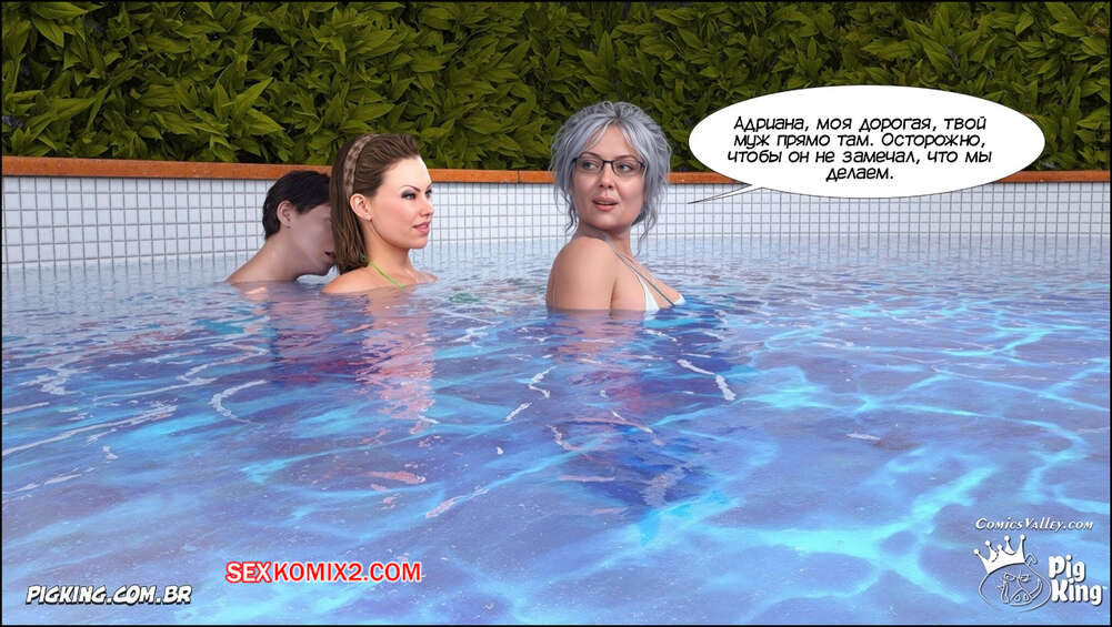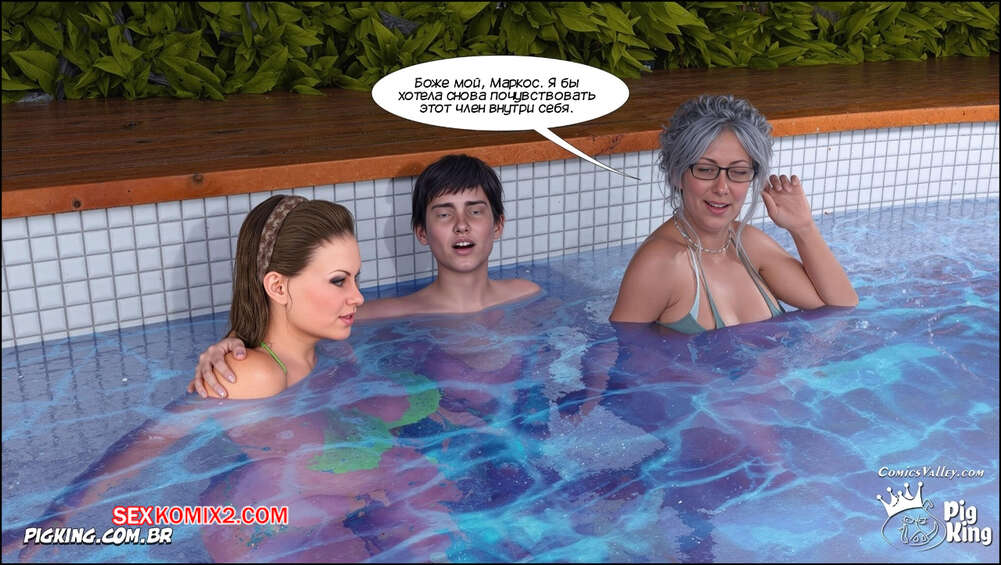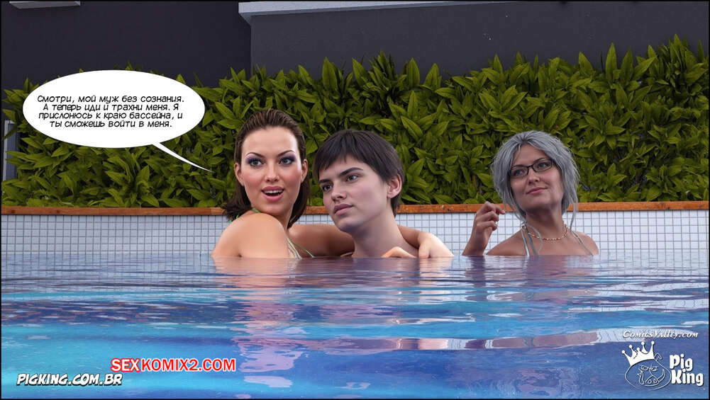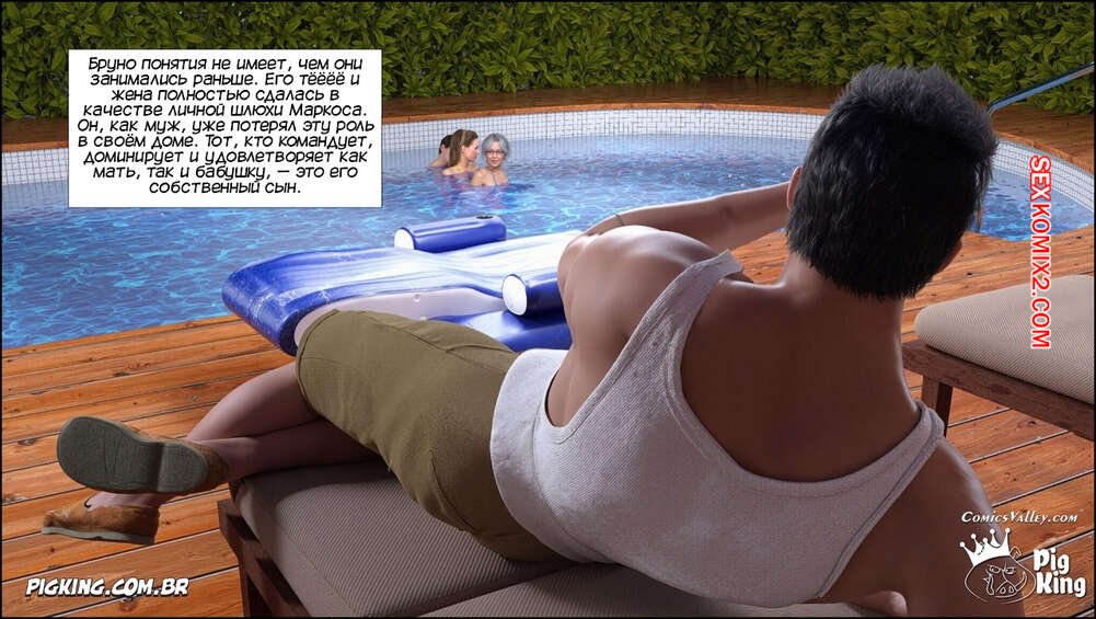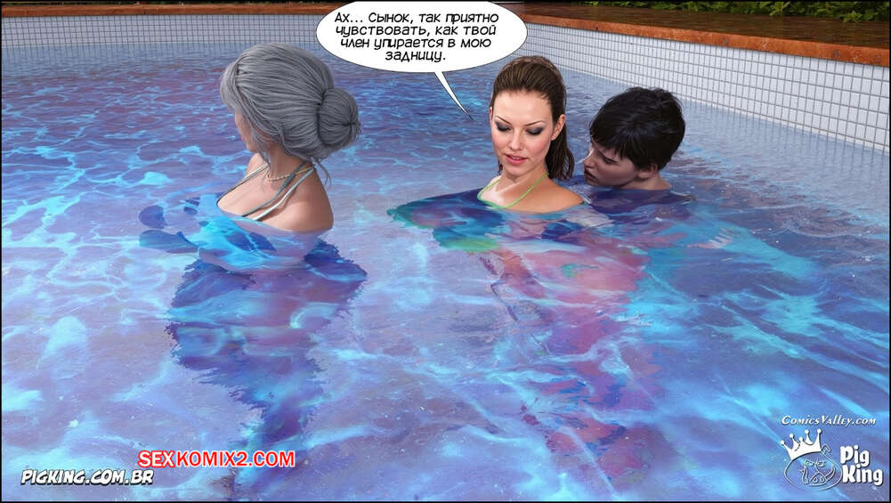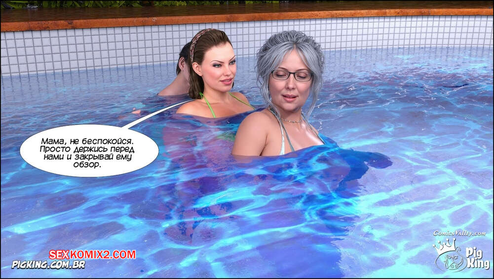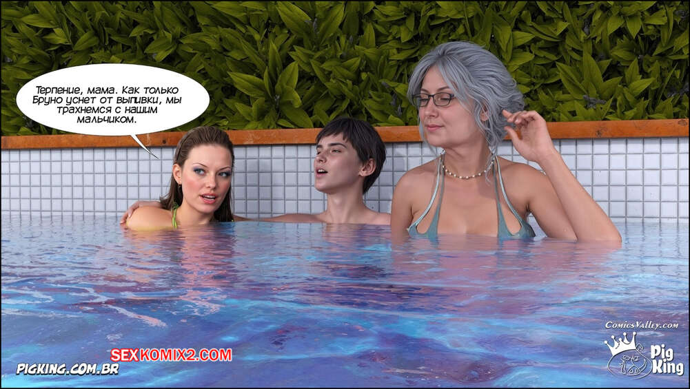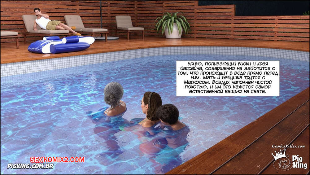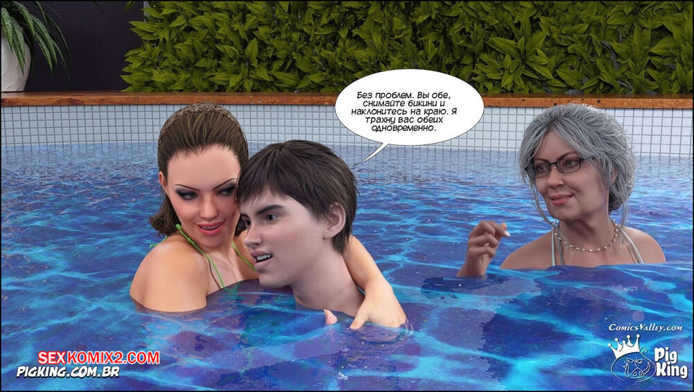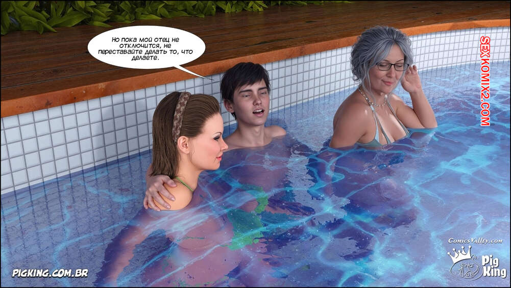 Порно комикс Люби меня нежно. Часть 21. Love Me Tender. CrazyDad3D Молодой парнишка продолжает ублажать свою мамку и бабушку в бассейне, пока его отец рядом выпивает. Мужик перебрал с алкоголем и отключился, поэтому они вышли из воды и устроили еблю.