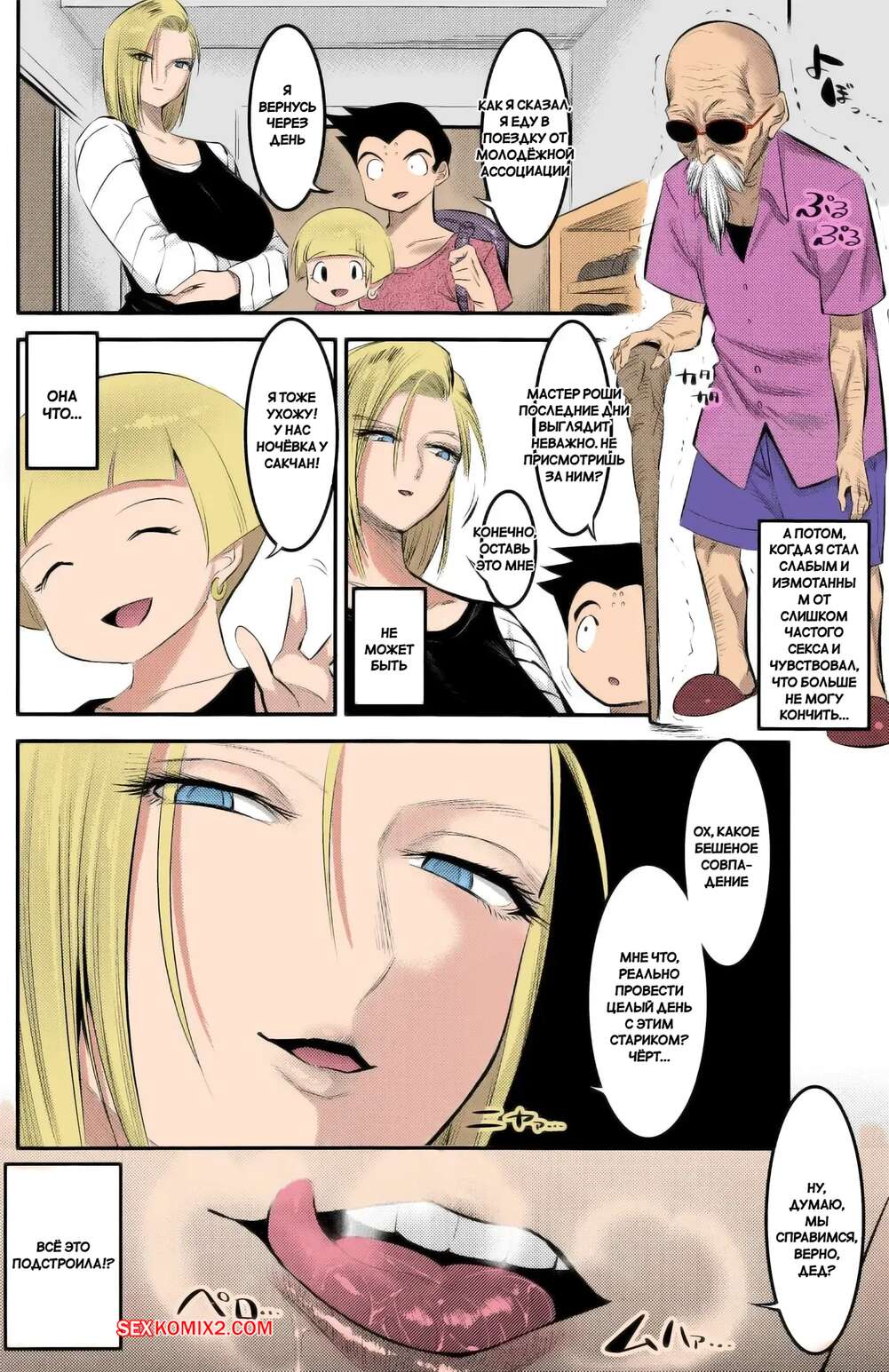 ΠΠΎΡΠ½ΠΎ ΠΊΠΎΠΌΠΈΠΊΡ Dragon Ball. 18 Π½Π°ΡΠΈΠ»ΡΠ½ΠΎ Π²ΡΠΆΠΈΠΌΠ°Π΅Ρ ΠΈΠ· ΡΠ΅Π±Ρ ΡΠΏΠ΅ΡΠΌΡ. Kaientai ΠΠ½Π΄ΡΠΎΠΈΠ΄ 18 Π½Π°Π±ΡΠ°ΡΡΠ²Π°Π΅ΡΡΡ Π½Π° ΡΡΠ°ΡΠΈΠΊΠ° Π ΠΎΡΠΈ, ΠΆΠ΅Π»Π°Ρ ΠΏΠΎΠ»ΡΡΠΈΡΡ Π΅Π³ΠΎ Π³ΠΎΡΡΡΡΡ ΡΠΏΠ΅ΡΠΌΡ. ΠΡΠ°ΡΠΎΡΠΊΠ° ΡΡΡΠ²Π°Π΅Ρ Ρ ΡΠ΅Π±Ρ ΠΎΠ΄Π΅ΠΆΠ΄Ρ ΠΈ ΡΠ΅Π΄Π»Π°Π΅Ρ Ρ ΡΠΉ ΡΠ΅Π΄ΠΎΠ³ΠΎ ΠΌΡΠΆΠΈΠΊΠ°, ΠΏΠΎΡΠ»Π΅ ΡΠ΅Π³ΠΎ ΡΠΊΠ°ΡΠ΅Ρ Π½Π° Π½Π΅ΠΌ ΠΈΠ·ΠΎ Π²ΡΠ΅Ρ ΡΠΈΠ», Π·Π°ΡΡΠ°Π²Π»ΡΡ Π΅Π³ΠΎ ΠΊΠΎΠ½ΡΠΈΡΡ ΠΏΠΎΡΠΊΠΎΡΠ΅Π΅.