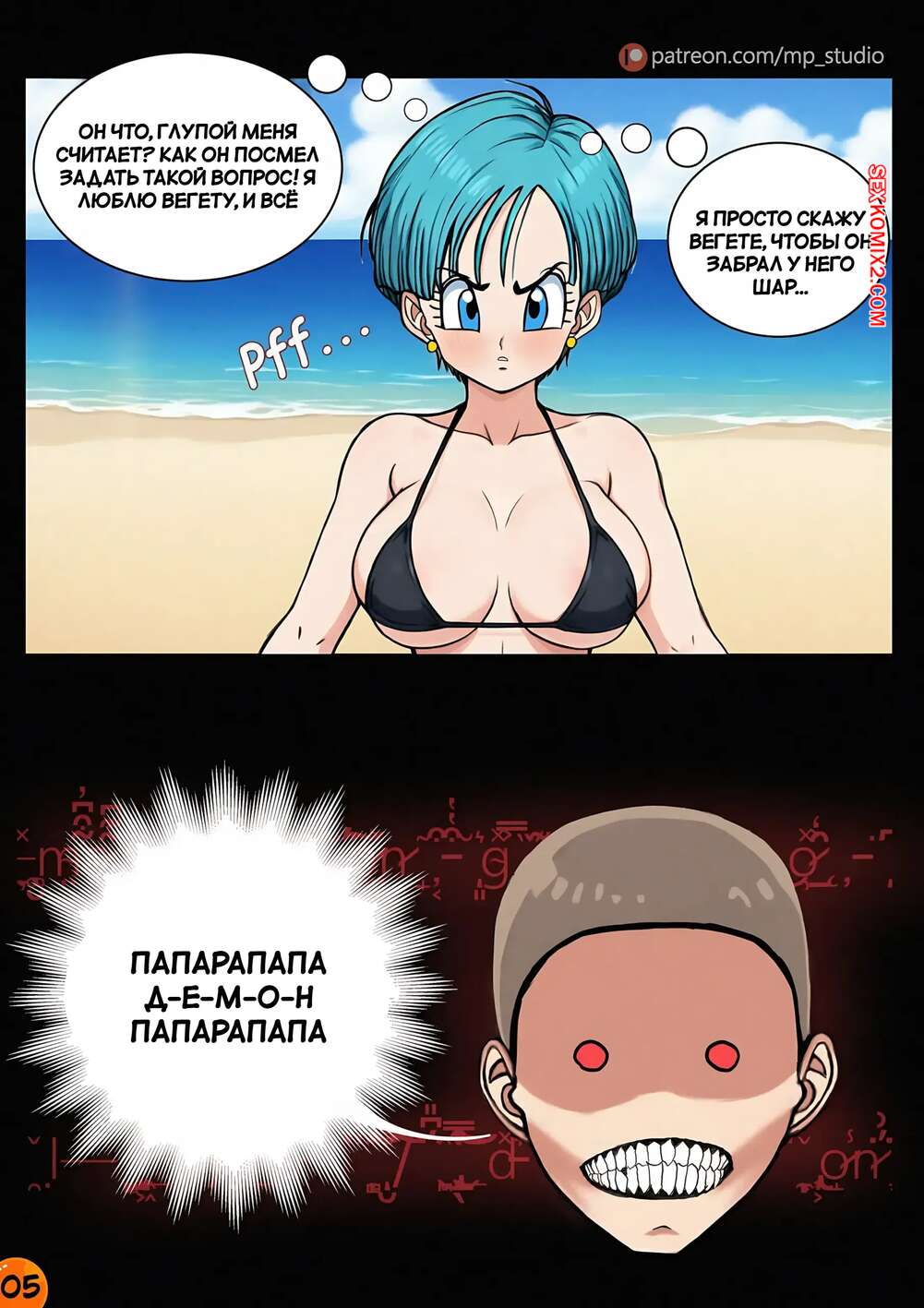 ΠΠΎΡΠ½ΠΎ ΠΊΠΎΠΌΠΈΠΊΡ Dragon Ball. ΠΠ°Π΄ΠΆΠΈΠ½ ΠΡΠ»ΡΠΌΠ°. Majin Bulma. MP studio. ΠΡΠ°ΡΠΎΡΠΊΠ° ΠΡΠ»ΡΠΌΠ° ΠΏΡΠΈΡΠ»Π° Π½Π° ΠΏΠ»ΡΠΆ, Π³Π΄Π΅ ΠΏΠ°ΡΠ΅Π½Ρ Π±ΡΡΡΡΠΎ ΠΏΡΠΈΠ²Π»Π΅ΠΊ Π΅Π΅ Π²Π½ΠΈΠΌΠ°Π½ΠΈΠ΅ ΡΠ²ΠΎΠΈΠΌ Π±ΠΎΠ»ΡΡΠΈΠΌ Ρ ΡΠ΅ΠΌ. ΠΠΎΠ·Π±ΡΠΆΠ΄Π΅Π½Π½Π°Ρ Π΄Π΅Π²ΡΡΠΊΠ° Π²ΡΡΠ°Π»Π° Π½Π° ΠΊΠΎΠ»Π΅Π½ΠΈ ΠΈ ΡΡΠ°Π»Π° ΡΠΎΡΠ°ΡΡ Ρ ΡΠΉ ΠΏΠ°ΡΠ½Ρ, Π΄ΠΎΡΡΠ°Π²ΠΈΠ² Π΅ΠΌΡ Π½Π΅Π²Π΅ΡΠΎΡΡΠ½ΡΠΉ ΠΎΡΠ³Π°Π·ΠΌ.