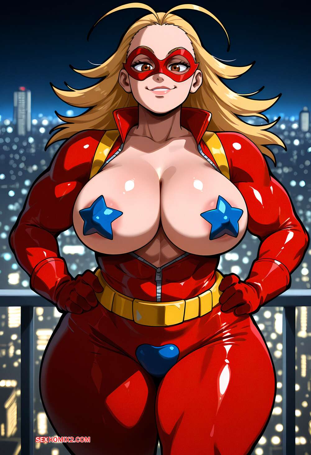 ΠΠΎΡΠ½ΠΎ ΠΊΠΎΠΌΠΈΠΊΡ Star and Stripe. Floxin Π‘Π±ΠΎΡΠ½ΠΈΠΊ Π°ΡΡΠΎΠ² Ρ Π³ΠΎΡΡΡΠ΅ΠΉ Π±Π»ΠΎΠ½Π΄ΠΈΠ½ΠΊΠΎΠΉ Ρ ΡΠΈΠΊΠ°ΡΠ½ΡΠΌ ΡΠ΅Π»ΠΎΠΌ. ΠΠ½Π° Π²ΠΎΠ·Π±ΡΠΆΠ΄Π΅Π½Π° ΠΈ Ρ ΠΎΡΠ΅Ρ ΡΡΠ°Ρ Π°ΡΡΡΡ, ΠΏΠΎΡΡΠΎΠΌΡ ΡΠ°Π·Π΄Π΅Π²Π°Π΅ΡΡΡ ΠΈ Π΄Π΅ΠΌΠΎΠ½ΡΡΡΠΈΡΡΠ΅Ρ Π²ΠΎ Π²ΡΠ΅ΠΉ ΠΊΡΠ°ΡΠ΅ ΡΠ²ΠΎΠΈ Π°ΠΏΠΏΠ΅ΡΠΈΡΠ½ΡΠ΅ ΡΠΎΡΠΌΡ.
