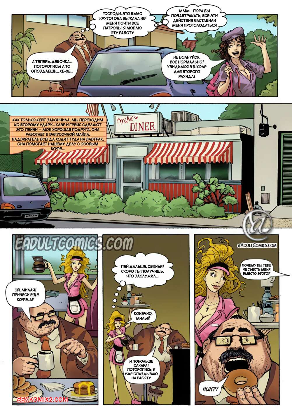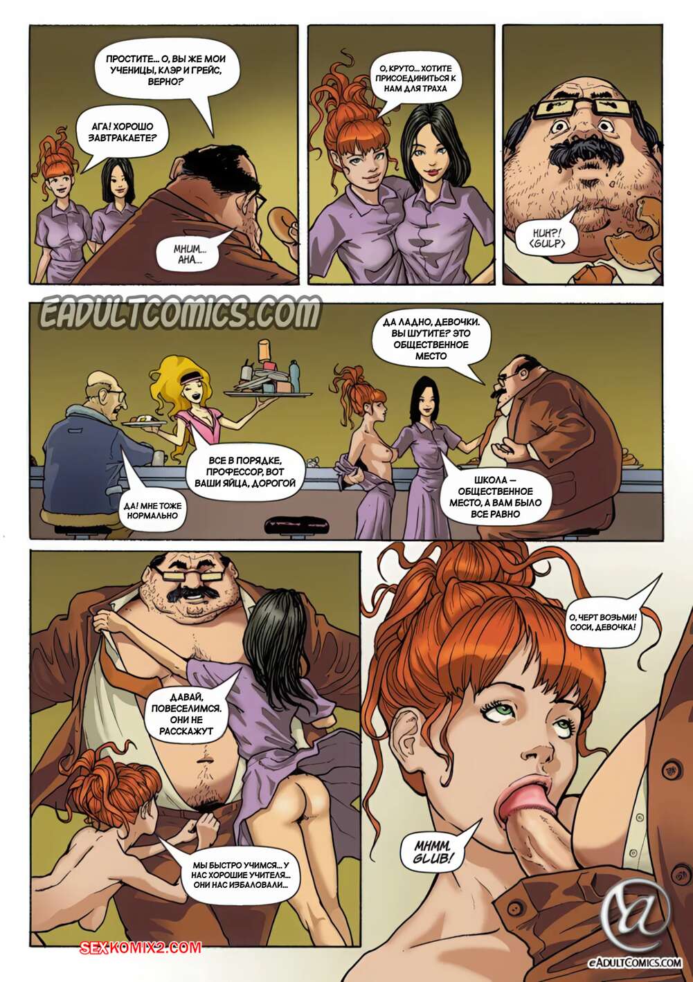 Порно комикс Месть школьниц. Часть 13. Schoolgirls Revenge. Yair Herrera Юные девушки ради своей выгоды соблазняют пухлого мужика. Девушки раздеваются перед ним и вызывают у толстяка стояк, после чего раздвигают ножки и дают себя выебать.