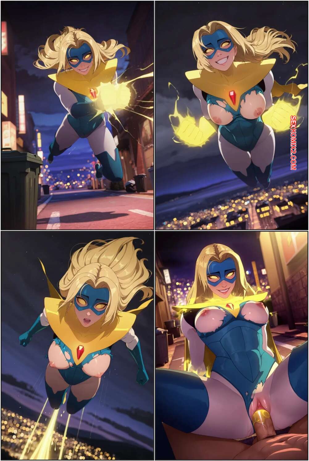 ΠΠΎΡΠ½ΠΎ ΠΊΠΎΠΌΠΈΠΊΡ Dispatch. Blonde Blazer ΠΠΎΡΠ»Π΅ ΠΏΠ°ΡΡΡΠ»ΠΈΡΠΎΠ²Π°Π½ΠΈΡ Π³ΠΎΡΠΎΠ΄Π° Π±Π»ΠΎΠ½Π΄ΠΈΠ½ΠΎΡΠΊΠ° Π·Π°Π»Π΅ΡΠ΅Π»Π° ΠΊ ΡΠ²ΠΎΠ΅ΠΌΡ Π΄ΡΡΠΆΠΊΡ, ΡΡΠΎΠ±Ρ ΠΏΠΎΠ²Π΅ΡΠ΅Π»ΠΈΡΡΡΡ. ΠΠ½Π° ΡΡΠ°Π»Π° ΡΠΎΡΠ°ΡΡ Π΅Π³ΠΎ Π±ΠΎΠ»ΡΡΠΎΠΉ Ρ ΡΠΉ, ΠΏΠΎΡΠ»Π΅ ΡΠ΅Π³ΠΎ ΡΠ°Π·Π΄Π²ΠΈΠ½ΡΠ»Π° Π½ΠΎΠΆΠΊΠΈ ΠΈ Π΄Π°Π»Π° ΡΡΠ°Ρ Π½ΡΡΡ ΡΠ΅Π±Ρ.
