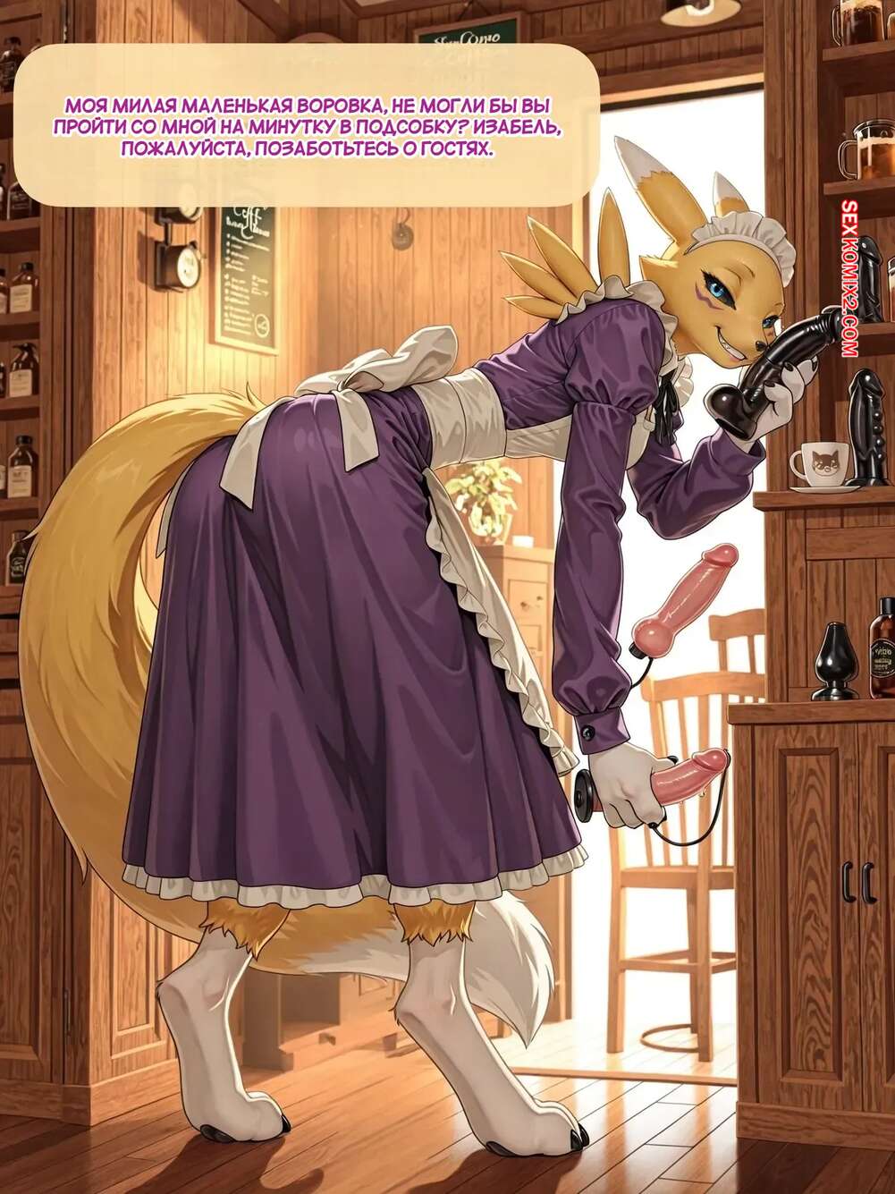 Порно комикс Digimon. Горничная кафе Ренамон. Renamon Maid Cafe Горячие красотки фурри работают в кофейне в образах горничных. Они радуют клиентов своими аппетитными формами, а в перерыве уединяются в отдельной комнате, чтобы трахнуть себя с помощью дилдо.