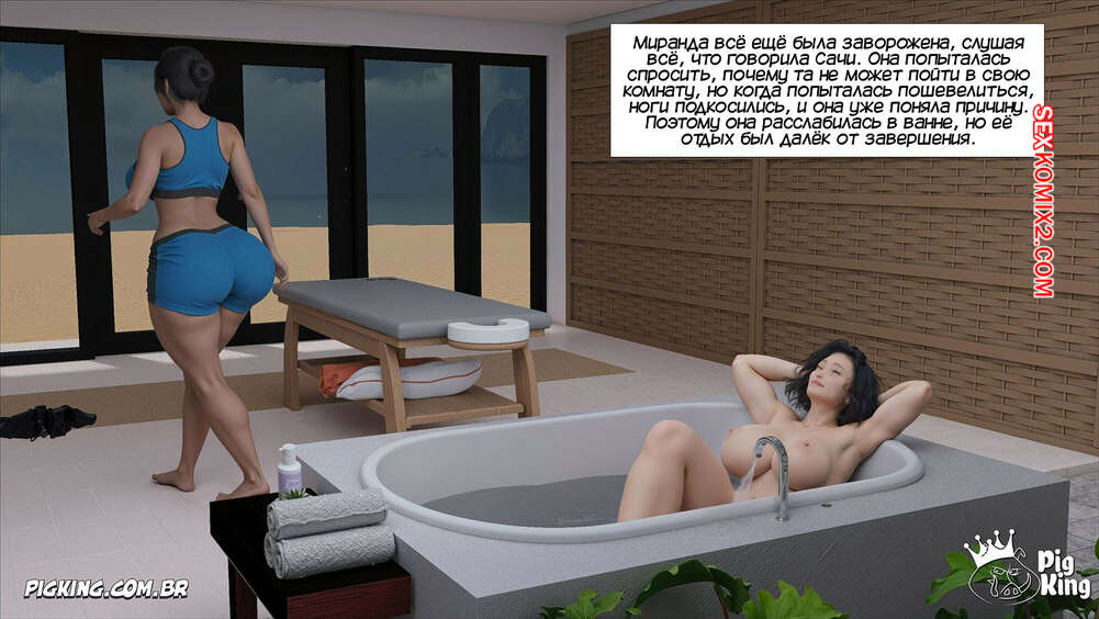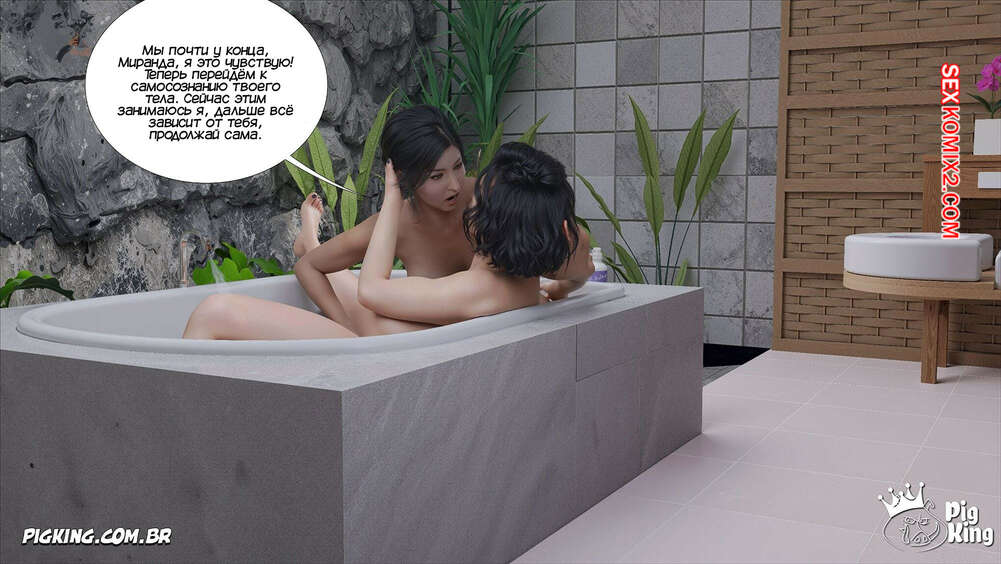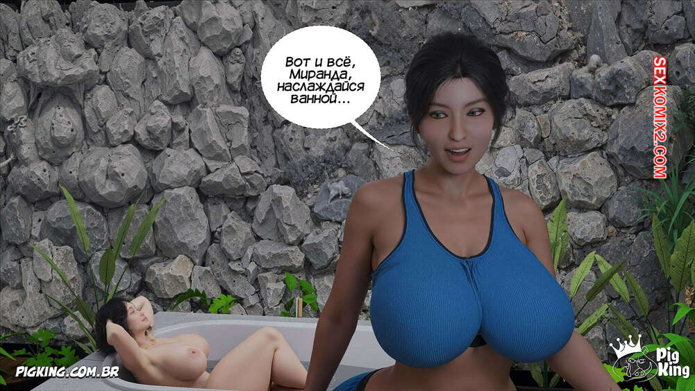 Порно комикс Миранда. Часть 21. Miranda. CrazyDad3D Горячие красотки продолжают наслаждаться телами друг дружки. Они набрали горячую ванну, после чего массажистка дала Миранде отлизать свою пизду и довела ее до сквирта.