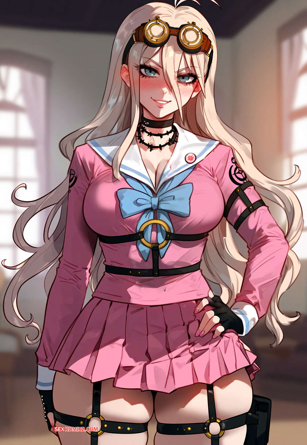 ΠΠΎΡΠ½ΠΎ ΠΊΠΎΠΌΠΈΠΊΡ Miu Iruma x BBC. Floxin ΠΠΎΡΡΡΠ°Ρ Π±Π»ΠΎΠ½Π΄ΠΈΠ½ΠΊΠ° ΠΎΡΡΠ°Π΅ΡΡΡ ΠΏΠ΅ΡΠ΅Π΄ ΡΠ΅ΠΌΠ½ΠΎΠΊΠΎΠΆΠΈΠΌ ΠΏΠ°ΡΠ½Π΅ΠΌ Π² ΡΠ΅ΠΊΡΡΠ°Π»ΡΠ½ΠΎΠΌ Π±Π΅Π»ΡΠ΅, ΡΠΎΠ±Π»Π°Π·Π½ΡΡ Π΅Π³ΠΎ Π°ΠΏΠΏΠ΅ΡΠΈΡΠ½ΡΠΌΠΈ ΡΠΎΡΠΌΠ°ΠΌΠΈ. ΠΡΠ°ΡΠΎΡΠΊΠ° Π²ΡΡΠ°Π»Π° Π½Π° ΠΊΠΎΠ»Π΅Π½ΠΈ ΠΈ ΠΎΡΡΠΎΡΠ°Π»Π° Ρ ΡΠΉ ΠΏΠ°ΡΠ½Ρ, ΠΏΠΎΡΠ»Π΅ ΡΠ΅Π³ΠΎ Π΄Π°Π»Π° Π΅ΠΌΡ Π²ΡΠ΅Π±Π°ΡΡ ΡΠ²ΠΎΡ ΠΏΠΈΠ·Π΄Ρ.