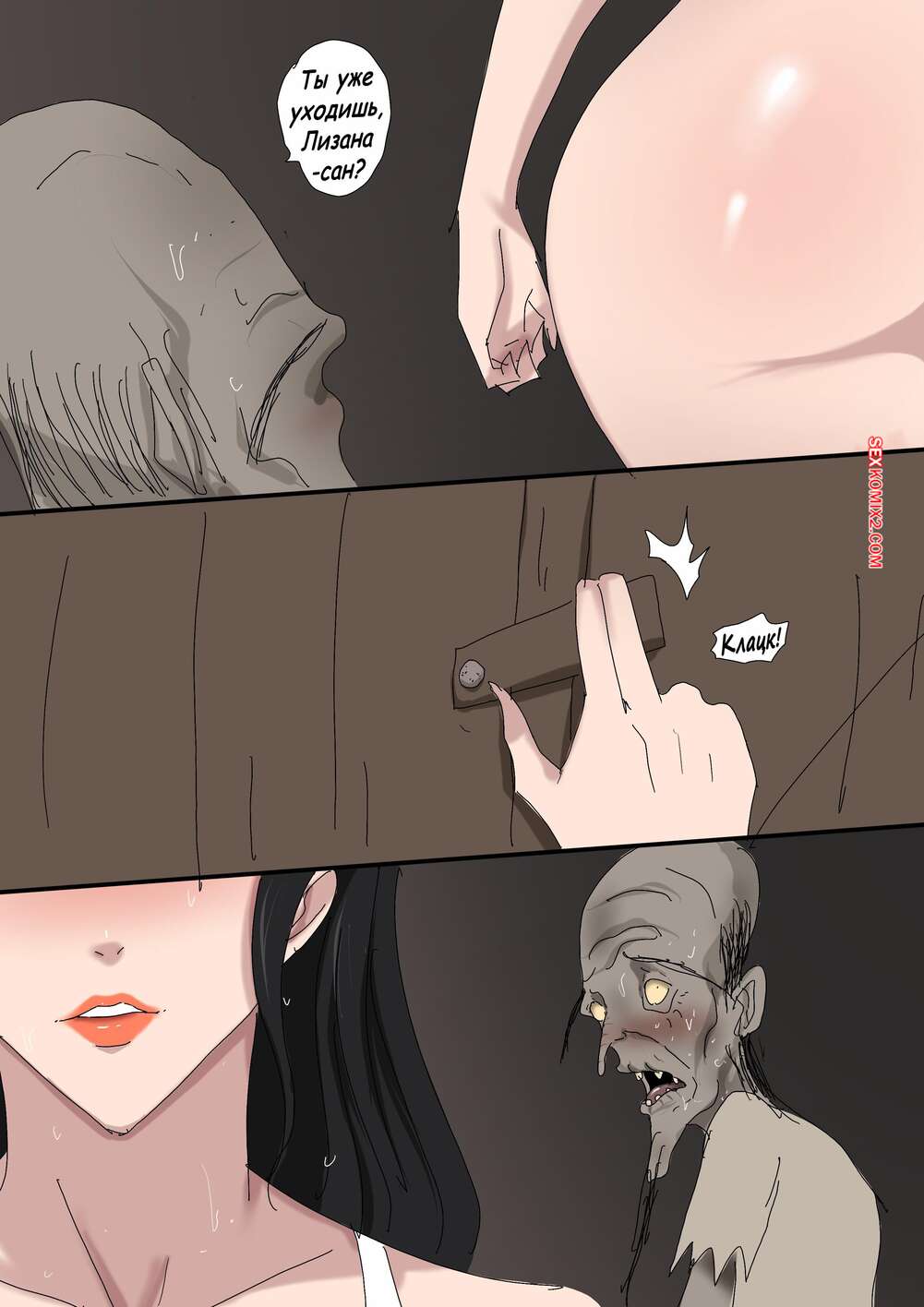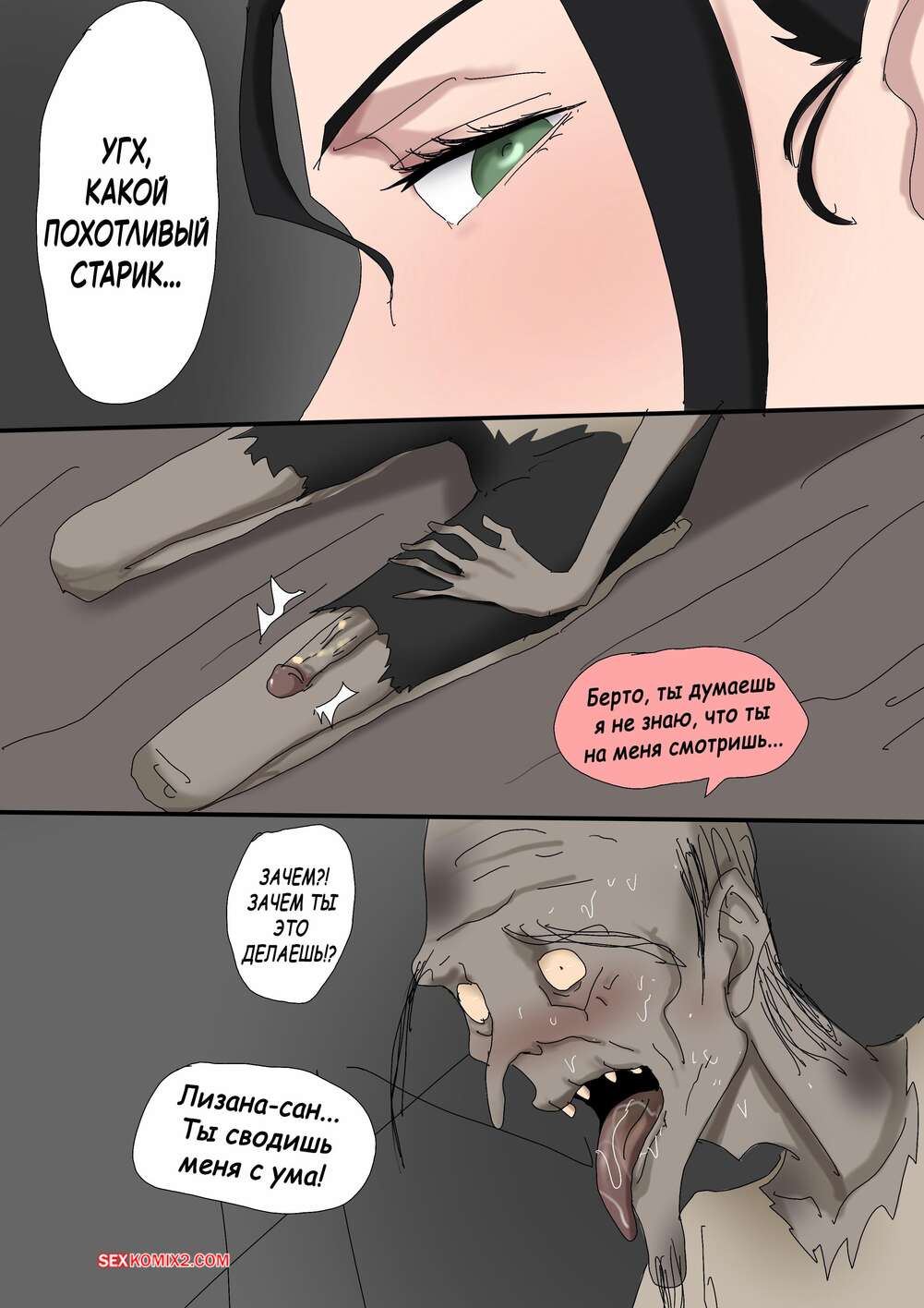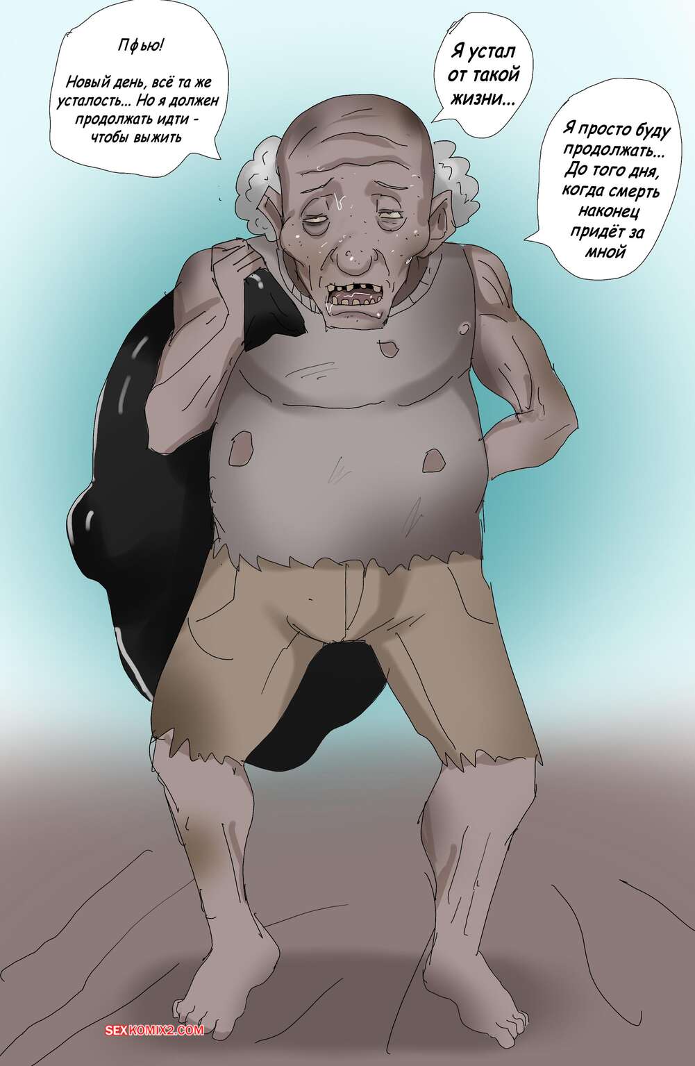 Порно комикс Лизана и Бездомные. Часть 3. Tsumibukai yokubo. Zetto Бездомный старик достал член перед горячей брюнеткой и быстро ее возбудил. Сучка встала перед ним на колени и отсосала хуй мужика, после чего дала ему выебать свою пизду.