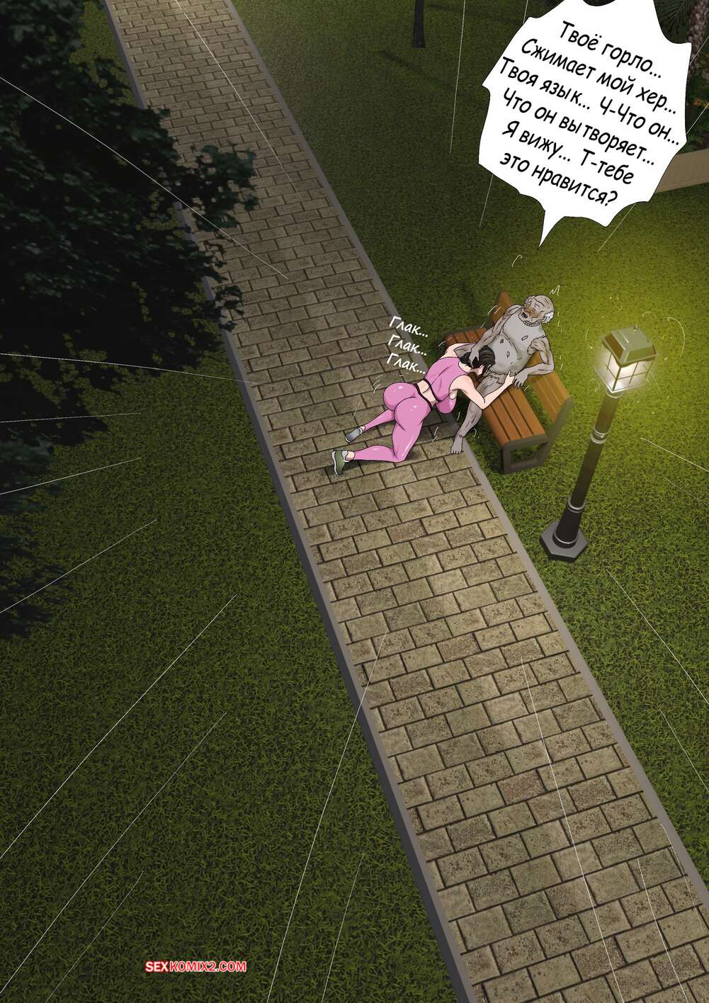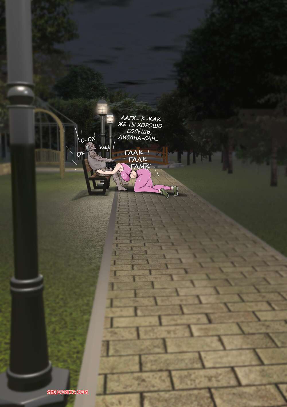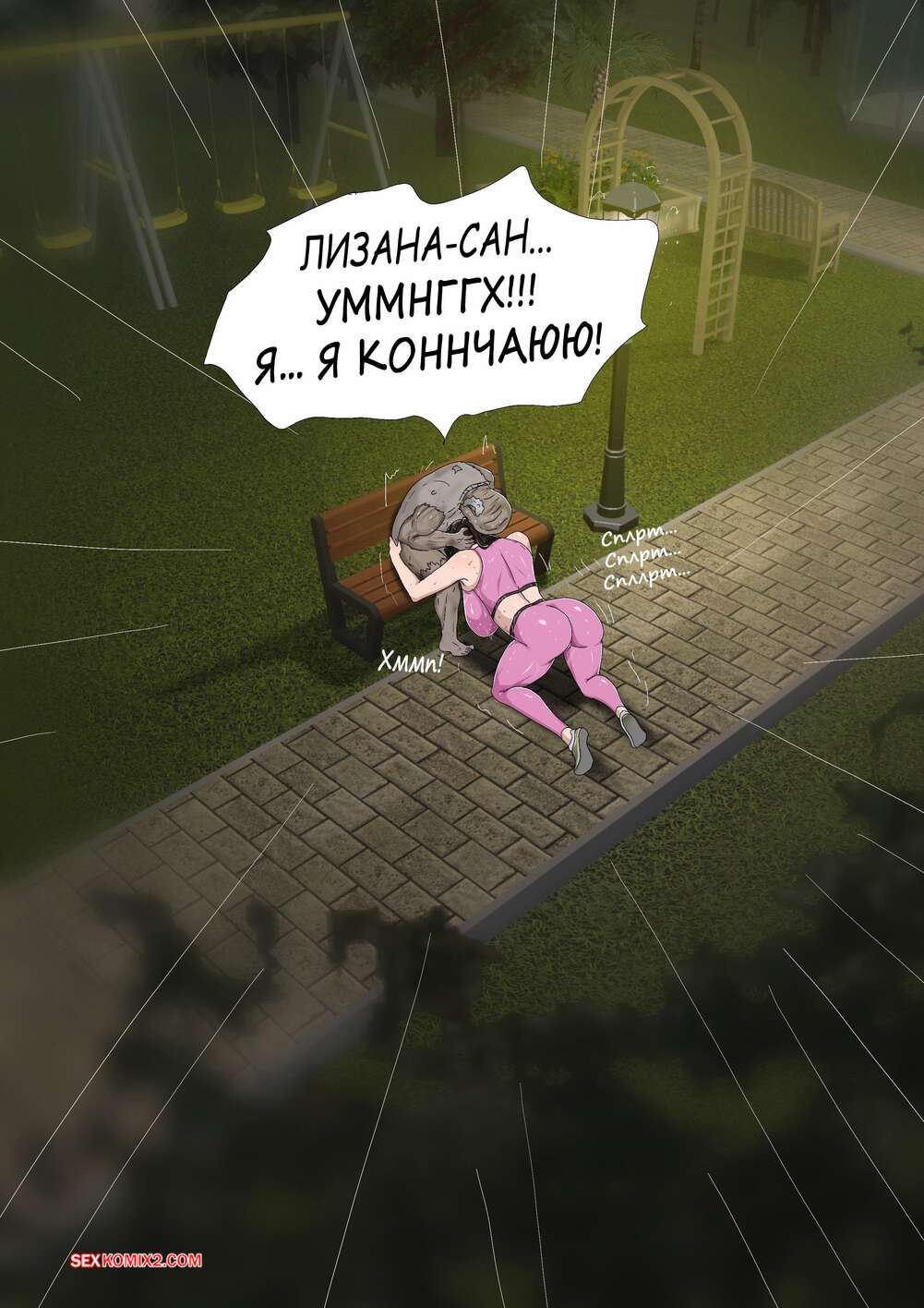 Порно комикс Лизана и Бездомные. Часть 4. Tsumibukai yokubo. Zetto Горячая милфа больше не представляет своей жизни без члена бездомного. Она с удовольствием раздвигает перед ним ножки пошире и дает себя оттрахать как следует.