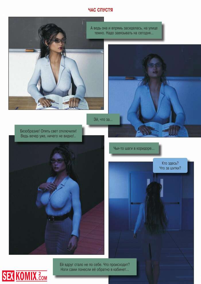 ΠΠΎΡΠ½ΠΎ ΠΊΠΎΠΌΠΈΠΊΡ ΠΠ°ΡΠΌΠ΅Π½ΠΈΠ΅. ΠΡΡΠ°Π²ΡΠΈΡΡ ΠΎΠ΄Π½Π°, ΡΡΠΈΡΠ΅Π»ΡΠ½ΠΈΡΠ° ΠΏΡΠΎΠ²Π΅ΡΡΠ»Π° ΡΠ°Π±ΠΎΡΡ ΡΡΡΠ΄Π΅Π½ΡΠΎΠ². ΠΠΎ Π²ΡΠΊΠ»ΡΡΠΈΠ»ΡΡ ΡΠ²Π΅Ρ, ΠΈ ΠΊΡΠΎ-ΡΠΎ ΠΏΡΠΈΠ±Π»ΠΈΠΆΠ°Π»ΡΡ ΠΊ Π΅Ρ ΠΊΠ°Π±ΠΈΠ½Π΅ΡΡ. ΠΠ½Π° ΠΈΡΠΏΡΠ³Π°Π»Π°ΡΡ ΠΈ ΡΠΏΡΡΡΠ°Π»Π°ΡΡ ΠΏΠΎΠ΄ ΡΡΠΎΠ».