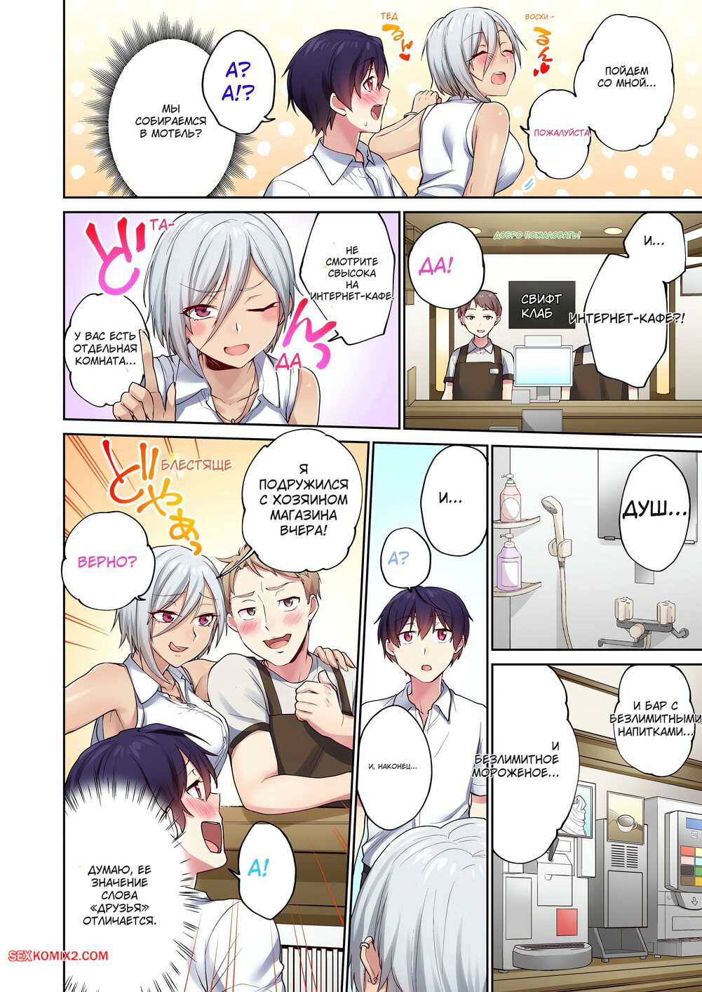 Порно комикс Я вижу число оргазмов. Без цензуры. Часть 64 и 65 и 66 Горячая блондинка бросилась на парня, не в силах сдерживать свою похоть. Девушка достала его твердый член и стала ему отсасывать, после чего раздвинула ножки и пригласила парня трахнуть ее.