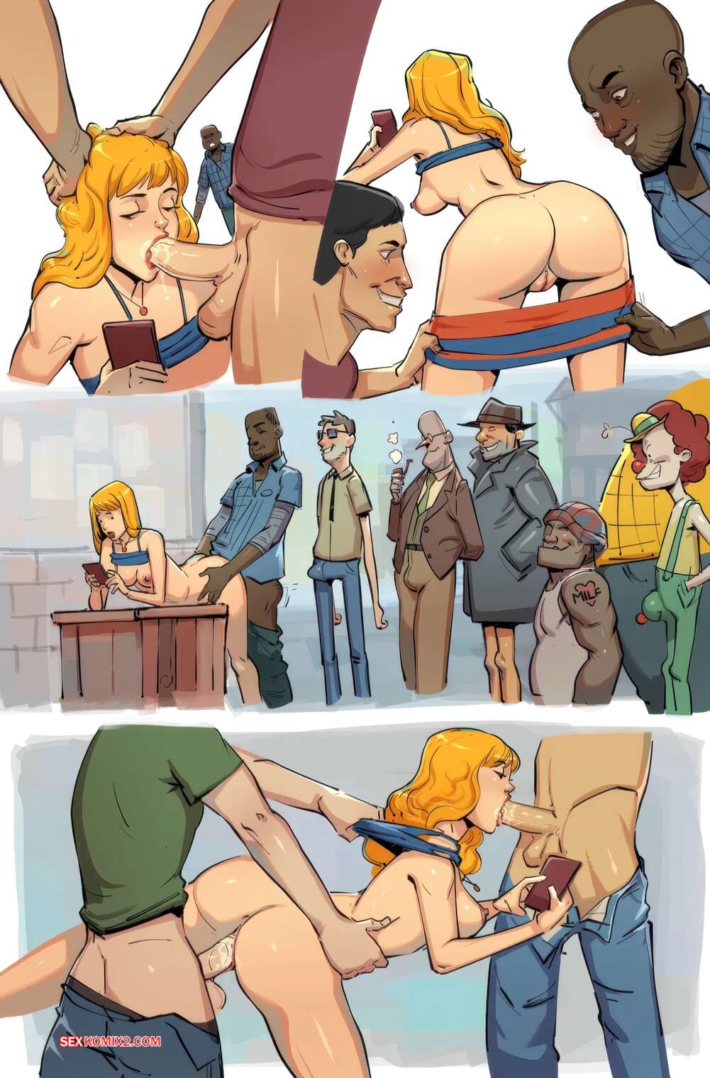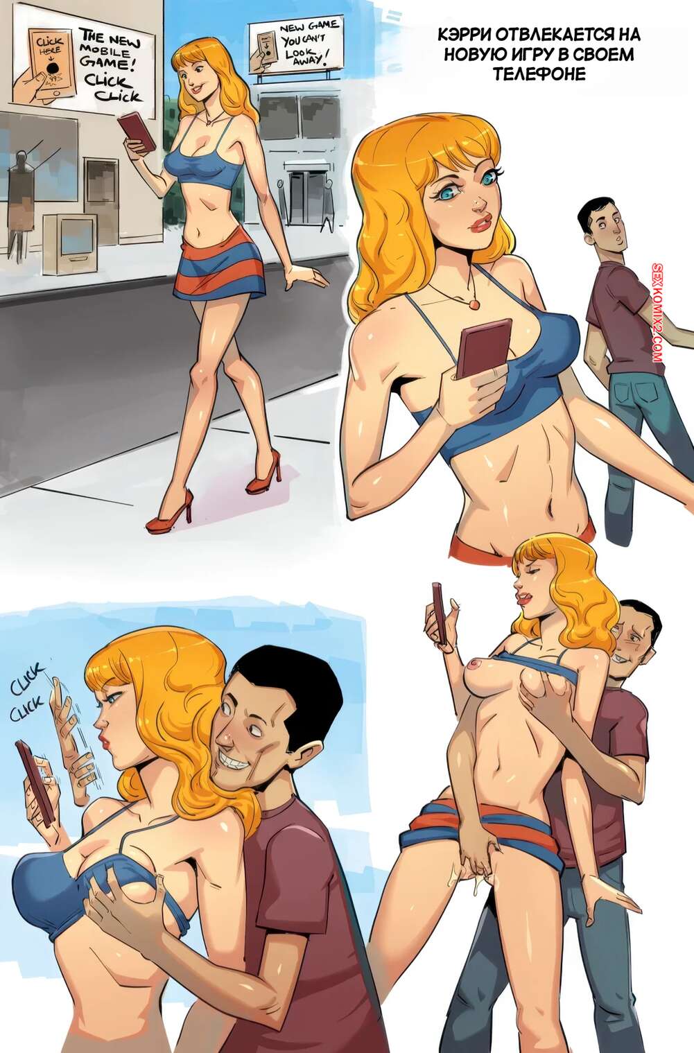 ΠΠΎΡΠ½ΠΎ ΠΊΠΎΠΌΠΈΠΊΡ ΠΡΡΡΠΈ. Carrie. Disclaimer. ΠΠΎΡΡΡΠ°Ρ Π±Π»ΠΎΠ½Π΄ΠΈΠ½ΠΊΠ° ΡΠ°Π·Π³ΡΠ»ΠΈΠ²Π°Π΅Ρ ΠΏΠΎ Π³ΠΎΡΠΎΠ΄Ρ Π² ΠΎΡΠΊΡΠΎΠ²Π΅Π½Π½ΠΎΠΌ Π½Π°ΡΡΠ΄Π΅, ΠΏΡΠΈΠ²Π»Π΅ΠΊΠ°Ρ Π²Π½ΠΈΠΌΠ°Π½ΠΈΠ΅ ΠΏΠ°ΡΠ½Π΅ΠΉ. ΠΠ½ΠΈ Π·Π°ΠΈΠ³ΡΡΠ²Π°ΡΡ Ρ Π΄Π΅Π²ΡΡΠΊΠΎΠΉ ΠΈ Π»Π°ΡΠΊΠ°ΡΡ Π΅Π΅, ΠΏΠΎΡΠ»Π΅ ΡΠ΅Π³ΠΎ Ρ ΠΎΡΠΎΡΠ΅Π½ΡΠΊΠΎ ΡΡΠ°Ρ Π°ΡΡ Π΅Π΅ ΠΏΠΈΠ·Π΄Ρ ΠΈ ΡΠΎΡΠΈΠΊ.
