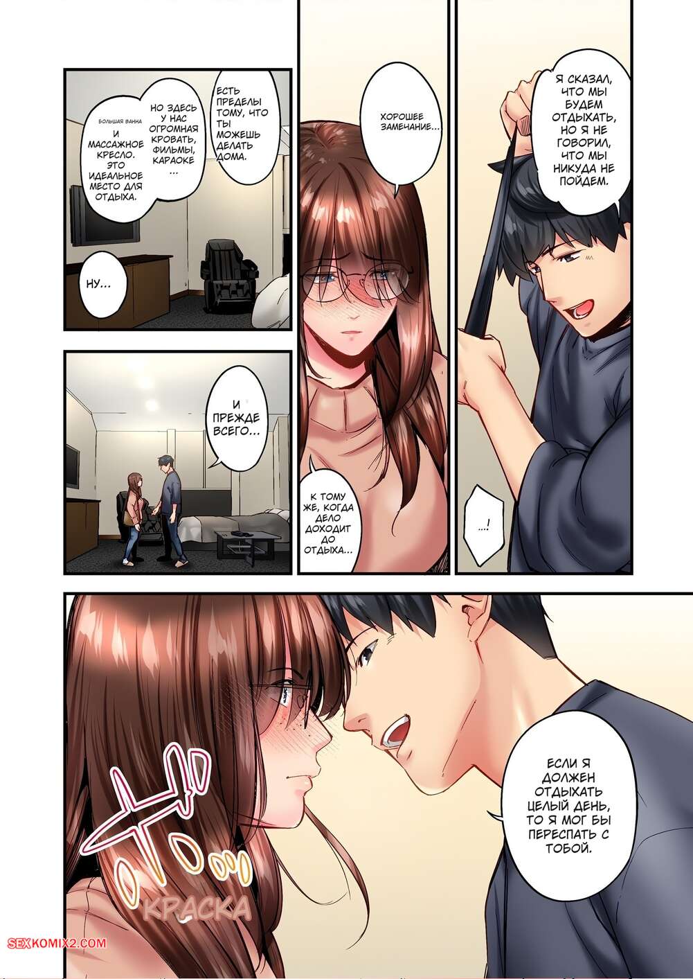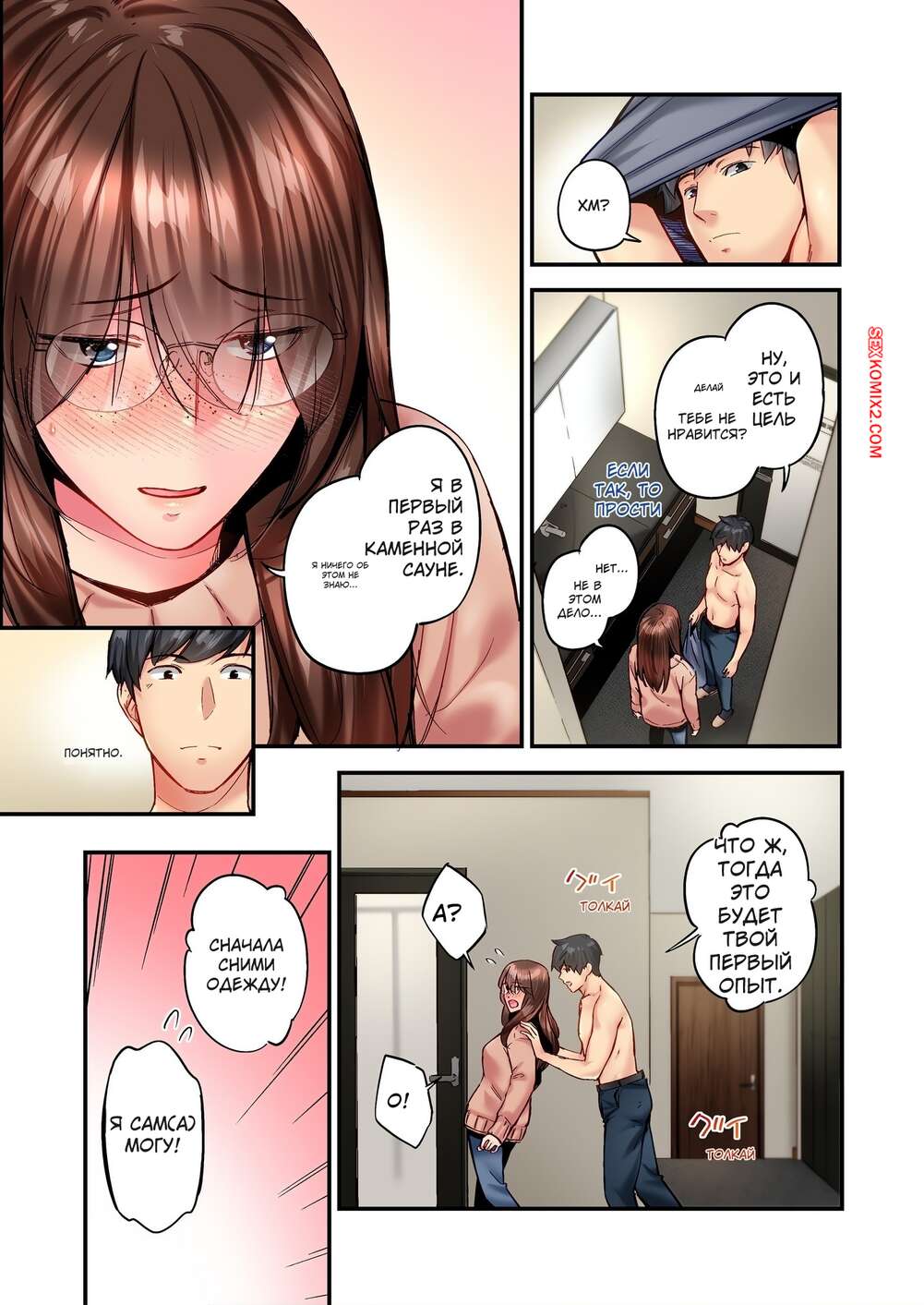 ΠΠΎΡΠ½ΠΎ ΠΊΠΎΠΌΠΈΠΊΡ ΠΡΠΎΡΡΠΎ ΡΠ΅ΠΊΡ. ΠΠ΅Π· ΡΠ΅Π½Π·ΡΡΡ. Π§Π°ΡΡΡ 109 ΠΈ 110 ΠΈ 111 ΠΠ°ΡΠ΅Π½Ρ Ρ Π΄Π΅Π²ΡΡΠΊΠΎΠΉ Π·Π°ΡΠ΅Π»ΠΈΠ»ΠΈΡΡ Π² Π½ΠΎΠΌΠ΅Ρ ΠΎΡΠ΅Π»Ρ, Π³Π΄Π΅ ΡΡΠ°Π·Ρ ΡΠ΅ΡΠΈΠ»ΠΈ ΠΏΠΎΠ²Π΅ΡΠ΅Π»ΠΈΡΡΡΡ. ΠΠ½ΠΈ ΡΡΠ°Π»ΠΈ ΡΠ΅Π»ΠΎΠ²Π°ΡΡΡΡ ΠΈ Π»Π°ΡΠΊΠ°ΡΡ Π΄ΡΡΠ³ Π΄ΡΡΠ³Π°, ΠΏΠΎΡΠ»Π΅ ΡΠ΅Π³ΠΎ ΠΊΡΠ°ΡΠΎΡΠΊΠ° ΡΠ°Π·Π΄Π²ΠΈΠ½ΡΠ»Π° Π½ΠΎΠΆΠΊΠΈ ΠΈ ΠΏΠΎΠ·Π²ΠΎΠ»ΠΈΠ»Π° ΡΡΠ°Ρ