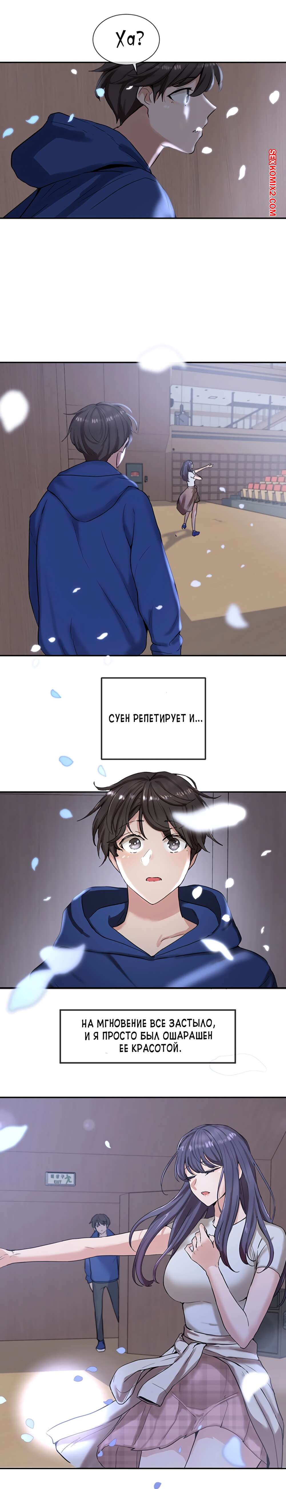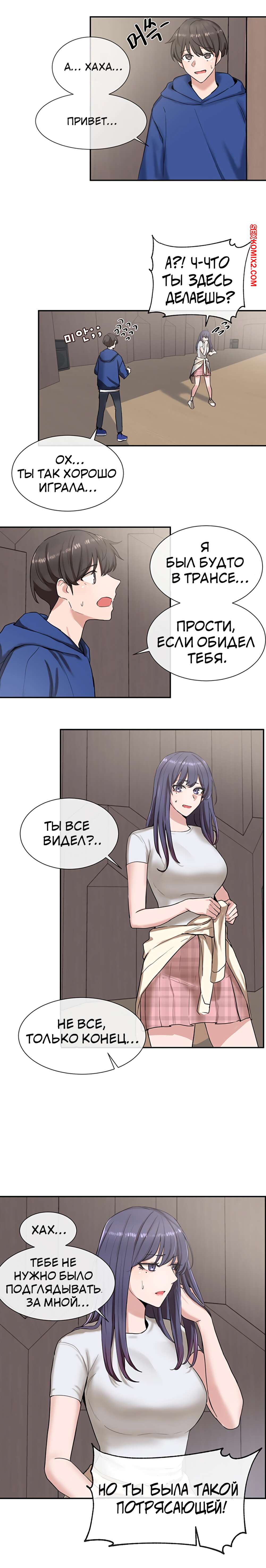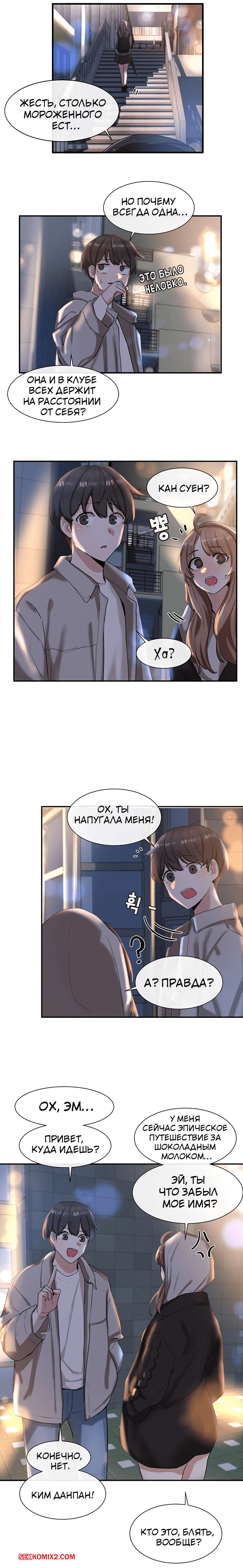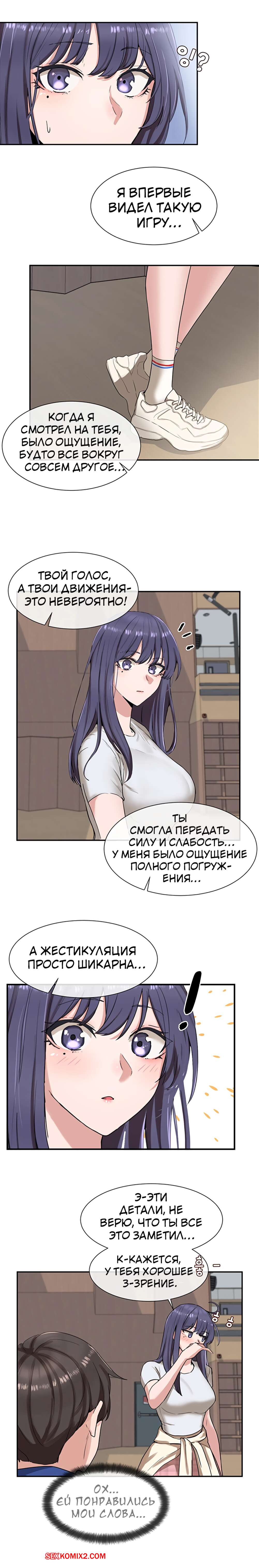 ΠΠΎΡΠ½ΠΎ ΠΊΠΎΠΌΠΈΠΊΡ Π’Π΅Π°ΡΡΠ°Π»ΡΠ½ΡΠΉ ΠΊΠ»ΡΠ±. Π§Π°ΡΡΡ 7 ΠΈ 8 ΠΈ 9. Theater cociety ΠΠΎΠ»ΠΎΠ΄ΠΎΠΉ ΠΏΠ°ΡΠ½ΠΈΡΠΊΠ° ΠΎΡΡΠ°Π»ΡΡ ΠΎΠ΄ΠΈΠ½ Π½Π° ΠΎΠ΄ΠΈΠ½ ΡΠΎ ΡΠ²ΠΎΠ΅ΠΉ ΡΠ΅ΠΊΡΠ°ΠΏΠΈΠ»ΡΠ½ΠΎΠΉ ΡΠΈΡΡΡΡΠΎΠΉ ΠΏΠΎΠ΄ΡΡΠ³ΠΎΠΉ. ΠΠ½Π° Π±ΡΠ»Π° ΠΎΡΠ΅Π½Ρ Π²ΠΎΠ·Π±ΡΠΆΠ΄Π΅Π½Π°, ΠΏΠΎΡΡΠΎΠΌΡ ΡΠ°ΠΌΠ° ΡΡΠ°Π»Π° ΡΠ°Π·Π΄Π΅Π²Π°ΡΡ ΠΏΠ΅ΡΠ΅Π΄ ΠΏΠ°ΡΠ°Π½ΠΎΠΌ, Π° Π·Π°ΡΠ΅ΠΌ ΠΎΡΡΠ°ΡΡΠ²Π°ΡΡ Π΅Π³ΠΎ Π±ΠΎΠ»ΡΡΠΎΠΉ Ρ ΡΠΉ, ΠΏΠΎΡΠ»Π΅ ΡΠ΅Π³ΠΎ ΡΠ°Π·Π΄Π²ΠΈΠ½ΡΠ»Π° Π½ΠΎΠΆΠΊΠΈ, ΡΡΠΎΠ±Ρ ΠΎΠ½ Π΅Π΅ Ρ ΠΎΡΠΎΡΠ΅Π½ΡΠΊΠΎ ΠΎΡΡΠ΅Π±Π°Π».