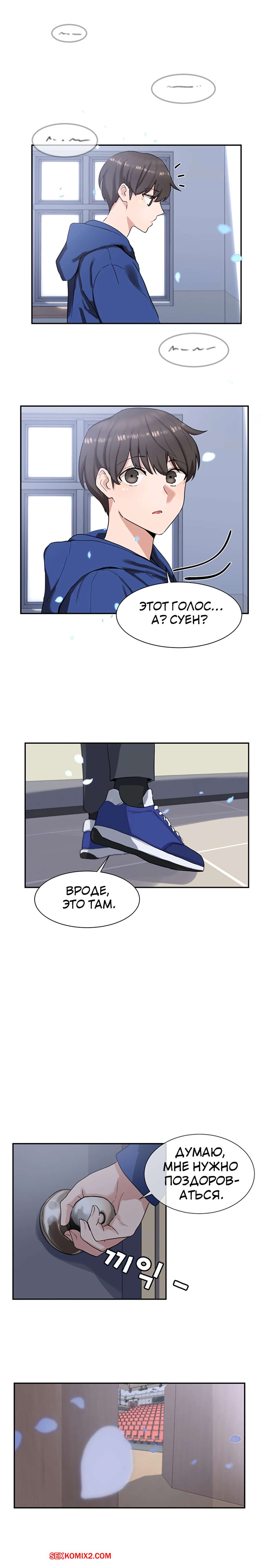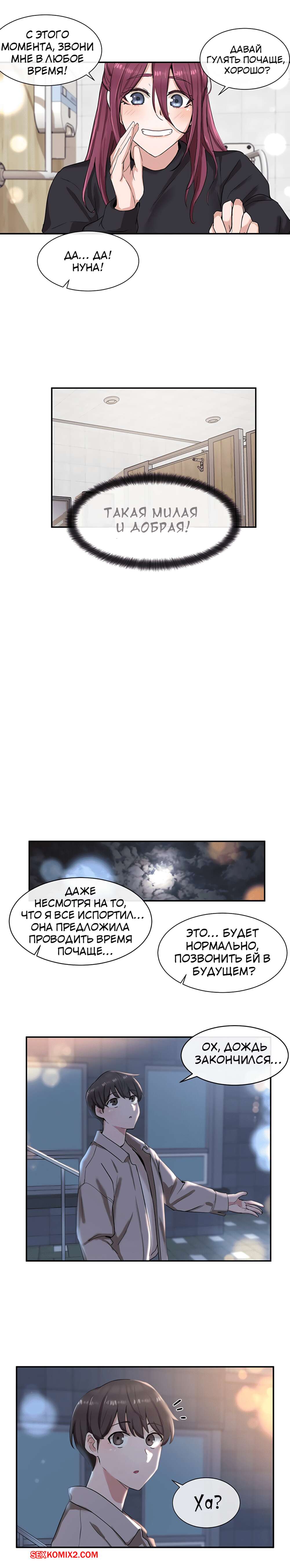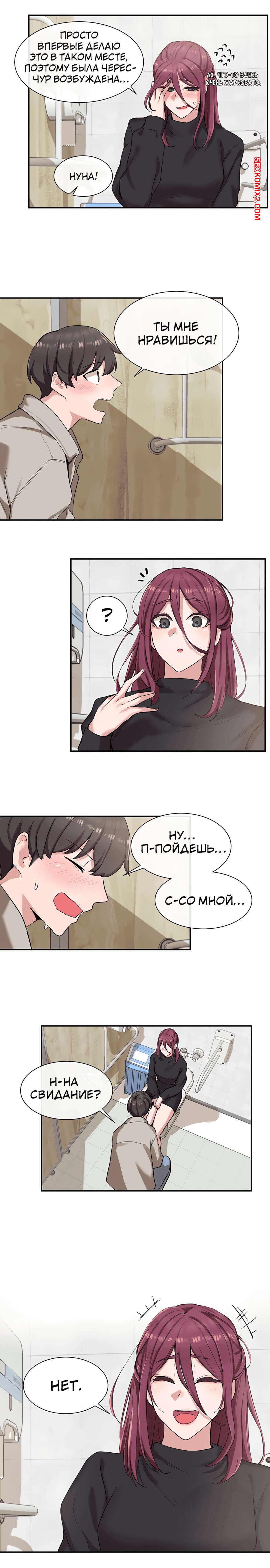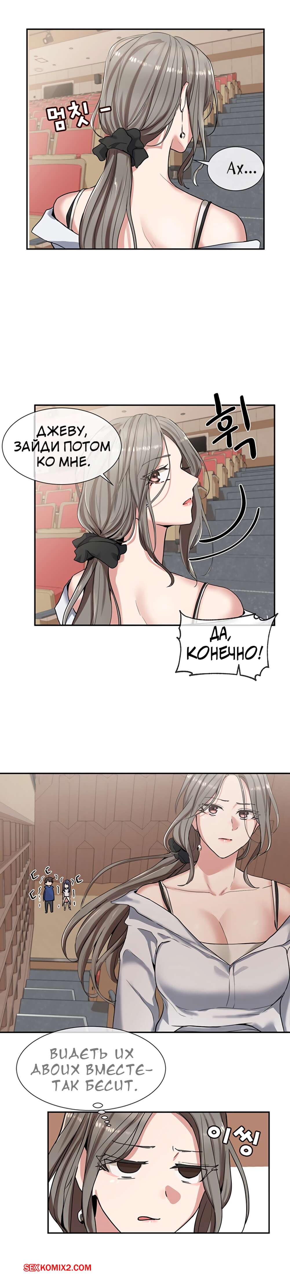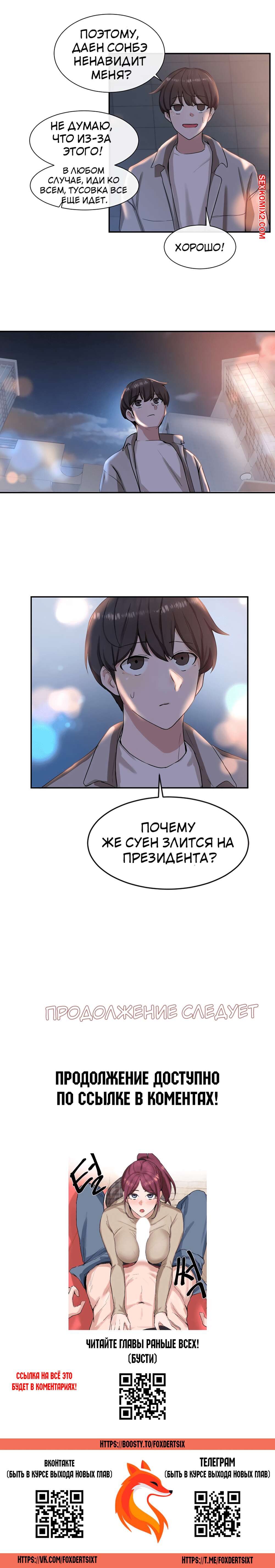 ΠΠΎΡΠ½ΠΎ ΠΊΠΎΠΌΠΈΠΊΡ Π’Π΅Π°ΡΡΠ°Π»ΡΠ½ΡΠΉ ΠΊΠ»ΡΠ±. Π§Π°ΡΡΡ 7 ΠΈ 8 ΠΈ 9. Theater cociety ΠΠΎΠ»ΠΎΠ΄ΠΎΠΉ ΠΏΠ°ΡΠ½ΠΈΡΠΊΠ° ΠΎΡΡΠ°Π»ΡΡ ΠΎΠ΄ΠΈΠ½ Π½Π° ΠΎΠ΄ΠΈΠ½ ΡΠΎ ΡΠ²ΠΎΠ΅ΠΉ ΡΠ΅ΠΊΡΠ°ΠΏΠΈΠ»ΡΠ½ΠΎΠΉ ΡΠΈΡΡΡΡΠΎΠΉ ΠΏΠΎΠ΄ΡΡΠ³ΠΎΠΉ. ΠΠ½Π° Π±ΡΠ»Π° ΠΎΡΠ΅Π½Ρ Π²ΠΎΠ·Π±ΡΠΆΠ΄Π΅Π½Π°, ΠΏΠΎΡΡΠΎΠΌΡ ΡΠ°ΠΌΠ° ΡΡΠ°Π»Π° ΡΠ°Π·Π΄Π΅Π²Π°ΡΡ ΠΏΠ΅ΡΠ΅Π΄ ΠΏΠ°ΡΠ°Π½ΠΎΠΌ, Π° Π·Π°ΡΠ΅ΠΌ ΠΎΡΡΠ°ΡΡΠ²Π°ΡΡ Π΅Π³ΠΎ Π±ΠΎΠ»ΡΡΠΎΠΉ Ρ ΡΠΉ, ΠΏΠΎΡΠ»Π΅ ΡΠ΅Π³ΠΎ ΡΠ°Π·Π΄Π²ΠΈΠ½ΡΠ»Π° Π½ΠΎΠΆΠΊΠΈ, ΡΡΠΎΠ±Ρ ΠΎΠ½ Π΅Π΅ Ρ ΠΎΡΠΎΡΠ΅Π½ΡΠΊΠΎ ΠΎΡΡΠ΅Π±Π°Π».