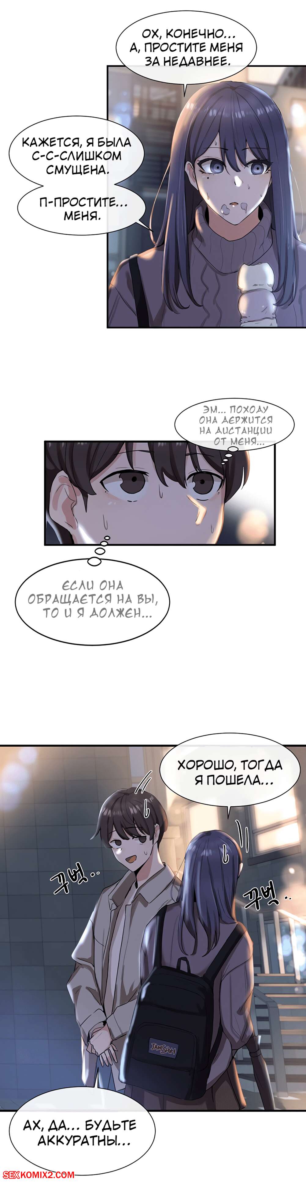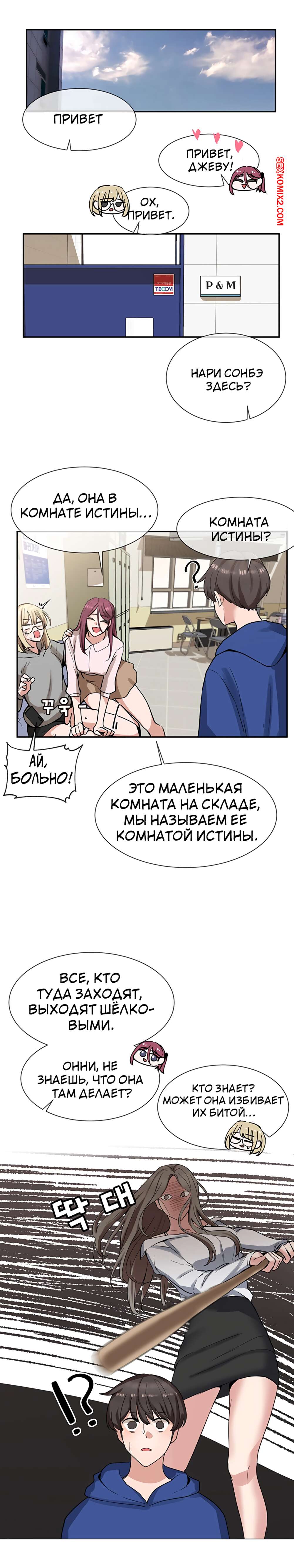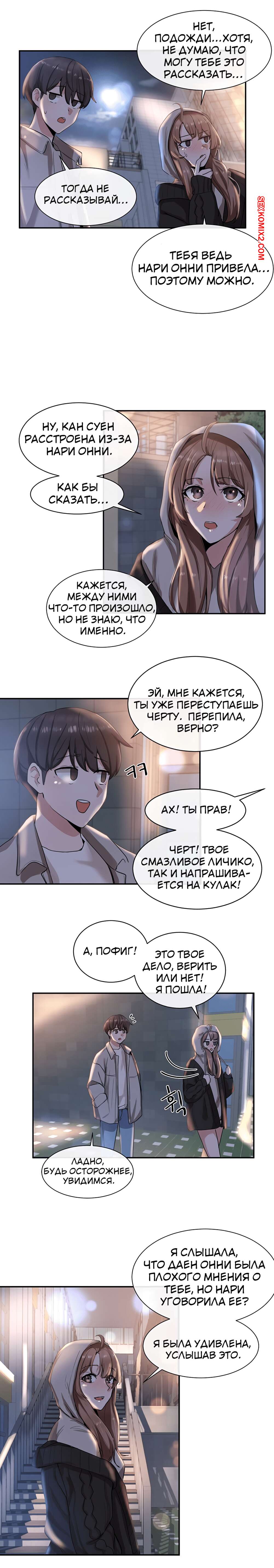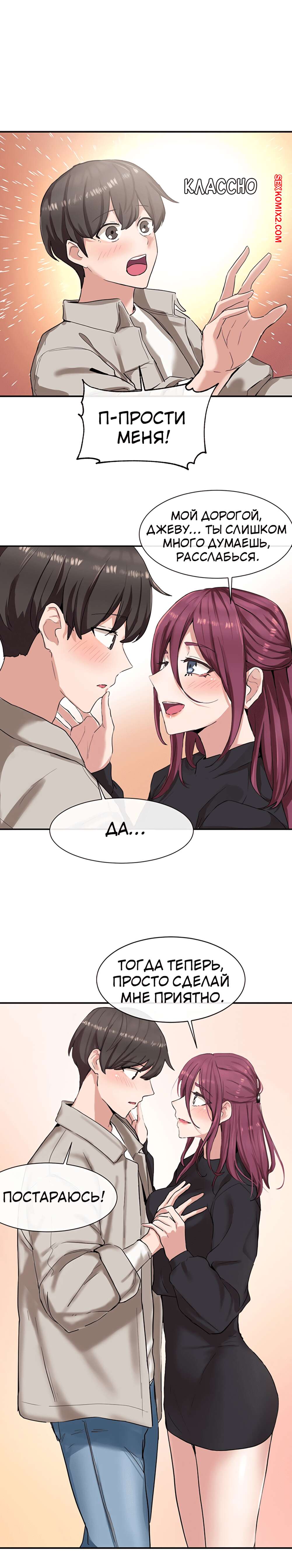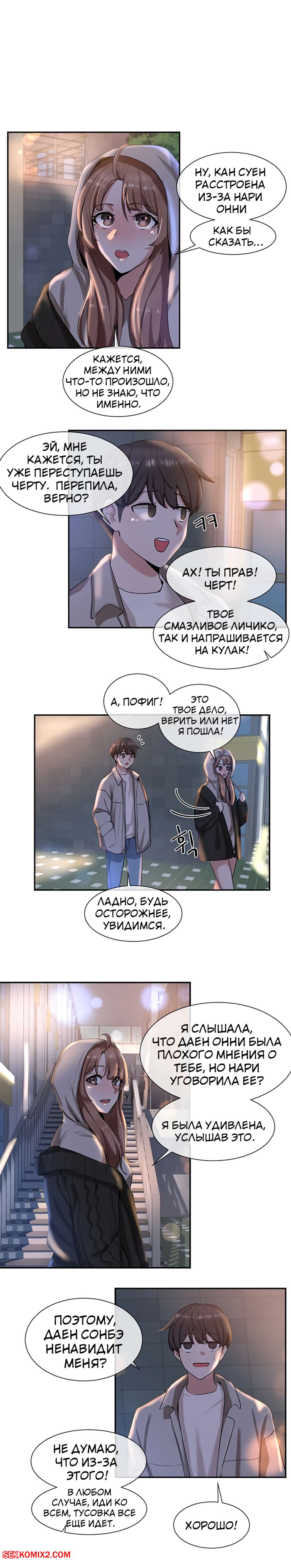 ΠΠΎΡΠ½ΠΎ ΠΊΠΎΠΌΠΈΠΊΡ Π’Π΅Π°ΡΡΠ°Π»ΡΠ½ΡΠΉ ΠΊΠ»ΡΠ±. Π§Π°ΡΡΡ 7 ΠΈ 8 ΠΈ 9. Theater cociety ΠΠΎΠ»ΠΎΠ΄ΠΎΠΉ ΠΏΠ°ΡΠ½ΠΈΡΠΊΠ° ΠΎΡΡΠ°Π»ΡΡ ΠΎΠ΄ΠΈΠ½ Π½Π° ΠΎΠ΄ΠΈΠ½ ΡΠΎ ΡΠ²ΠΎΠ΅ΠΉ ΡΠ΅ΠΊΡΠ°ΠΏΠΈΠ»ΡΠ½ΠΎΠΉ ΡΠΈΡΡΡΡΠΎΠΉ ΠΏΠΎΠ΄ΡΡΠ³ΠΎΠΉ. ΠΠ½Π° Π±ΡΠ»Π° ΠΎΡΠ΅Π½Ρ Π²ΠΎΠ·Π±ΡΠΆΠ΄Π΅Π½Π°, ΠΏΠΎΡΡΠΎΠΌΡ ΡΠ°ΠΌΠ° ΡΡΠ°Π»Π° ΡΠ°Π·Π΄Π΅Π²Π°ΡΡ ΠΏΠ΅ΡΠ΅Π΄ ΠΏΠ°ΡΠ°Π½ΠΎΠΌ, Π° Π·Π°ΡΠ΅ΠΌ ΠΎΡΡΠ°ΡΡΠ²Π°ΡΡ Π΅Π³ΠΎ Π±ΠΎΠ»ΡΡΠΎΠΉ Ρ ΡΠΉ, ΠΏΠΎΡΠ»Π΅ ΡΠ΅Π³ΠΎ ΡΠ°Π·Π΄Π²ΠΈΠ½ΡΠ»Π° Π½ΠΎΠΆΠΊΠΈ, ΡΡΠΎΠ±Ρ ΠΎΠ½ Π΅Π΅ Ρ ΠΎΡΠΎΡΠ΅Π½ΡΠΊΠΎ ΠΎΡΡΠ΅Π±Π°Π».