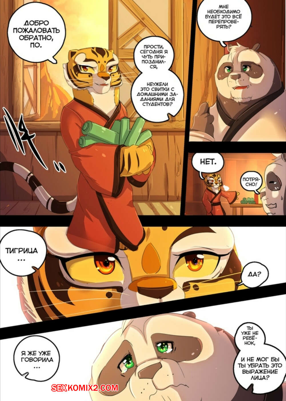 ΠΠΎΡΠ½ΠΎ ΠΊΠΎΠΌΠΈΠΊΡ Π€ΡΡΡΠΈ. ΠΡΠ½Π³ ΡΡ ΠΏΠ°Π½Π΄Π°. ΠΠΈΡΠ°Π½ΠΈΠ΅ ΠΠ°Π½Π΄Π° Ρ Π’ΠΈΠ³ΡΠΈΡΠ΅ΠΉ ΡΠ΅ΡΠΈΠ»ΠΈ ΠΎΡΠ΄ΠΎΡ Π½ΡΡΡ ΠΎΡ ΠΏΠΎΡΡΠΎΡΠ½Π½ΡΡ ΡΡΠ΅Π½ΠΈΡΠΎΠ²ΠΎΠΊ. ΠΡΠ°ΡΠΎΡΠΊΠ° ΡΡΠ°Π»Π° Π»Π°ΡΠΊΠ°ΡΡ Π±ΠΎΠ»ΡΡΠΎΠΉ Ρ ΡΠΉ ΡΠ²ΠΎΠ΅Π³ΠΎ Π΄ΡΡΠΆΠΊΠ°, ΠΏΠΎΡΠ»Π΅ ΡΠ΅Π³ΠΎ Π½Π°ΡΠ°Π»Π° ΠΎΡΡΠ°ΡΡΠ²Π°ΡΡ, Π° Π·Π°ΡΠ΅ΠΌ ΡΠ°Π·Π΄Π²ΠΈΠ½ΡΠ»Π° Π½ΠΎΠΆΠΊΠΈ ΠΈ Π΄Π°Π»Π° ΡΠ΅Π±Ρ ΠΎΡΡΠ΅Π±Π°ΡΡ.