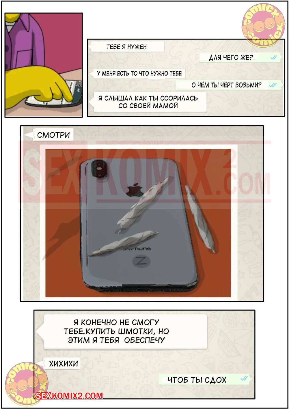 ΠΠΎΡΠ½ΠΎ ΠΊΠΎΠΌΠΈΠΊΡ Π‘ΠΈΠΌΠΏΡΠΎΠ½Ρ. Π§Π°ΡΡΡ 4. ΠΠΌΠ΅ΠΉ. ΠΠΏΠΈΠ·ΠΎΠ΄ 1. Simpsons. Snake. IToonEAXXX ΠΡΠΆΠΈΠΊ ΠΏΠΎΠ·Π²ΠΎΠ½ΠΈΠ» Π³ΠΎΡΡΡΠ΅ΠΉ ΠΌΠΎΠ»ΠΎΠ΄ΠΎΠΉ ΠΊΡΠ°ΡΠΎΡΠΊΠ΅ ΠΈ ΠΏΡΠ΅Π΄Π»ΠΎΠΆΠΈΠ» Π΅ΠΉ Π²ΡΡΡΠ΅ΡΠΈΡΡΡΡ Π½ΠΎΡΡΡ Π² ΠΌΠΎΡΠ΅Π»Π΅. ΠΠΎΠ³Π΄Π° Π΄Π΅Π²ΡΡΠΊΠ° ΠΏΡΠΈΠ΅Ρ Π°Π»Π°, ΠΌΡΠΆΠΈΠΊ ΡΠΆΠ΅ ΠΆΠ΄Π°Π» Π΅Π΅ Π³ΠΎΠ»ΡΠΉ ΠΈ ΡΡΠ°Π·Ρ Π΄Π°Π» Π΅ΠΉ ΠΎΡΠ²Π΅Π΄Π°ΡΡ ΡΠ²ΠΎΠΉ ΡΠ»Π΅Π½ Π½Π° Π²ΠΊΡΡ ΠΈ Ρ ΠΎΡΠΎΡΠ΅Π½ΡΠΊΠΎ Π²ΡΠ΅Π±Π°Π» ΠΊΡΠ°ΡΠΎΡΠΊΡ.