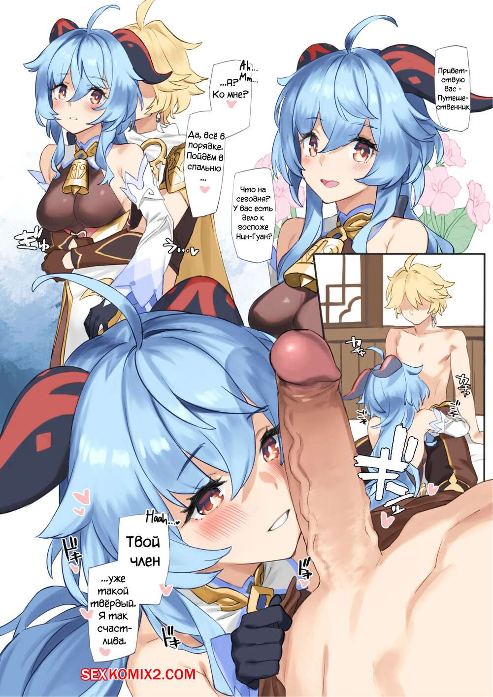 Порно комикс Genshin Impact. Заискивание перед Гань Юй. В цвете. Без цензуры Горячая сисястая красотка разделась перед парнем и стала сосать его большой и дрочить ножками, а затем она раздвинула ножки и дала ему себя хорошенько выебать.