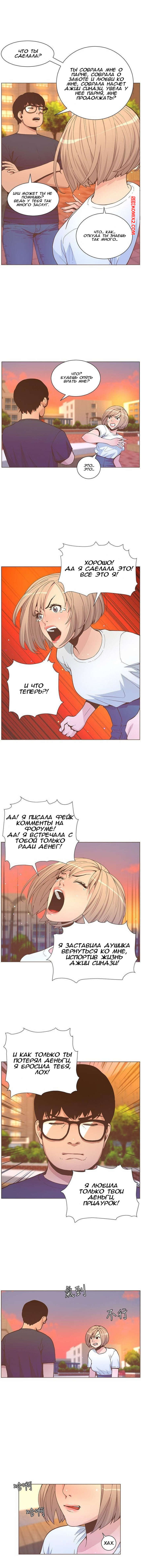 Бля, я так рад за всех героев особенно за Душика и Джию они сыграли свадьбу и живут вместе, Джу Хек и Джи Мин тоже супер ребята, а как я рад что Чан Су послал нахуй Джи Юн Ли. Эта сука того заслужила и Господи пусть это будет финал без сиквелов и приквелов и других квелов. Модераторы спасибо вам за то что выкладывали эту мангу, переводчику низкий поклон за шутки и перевод, и приклоню колено перед автором и художником сия произведения искусства